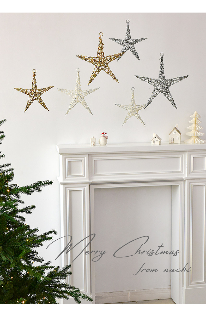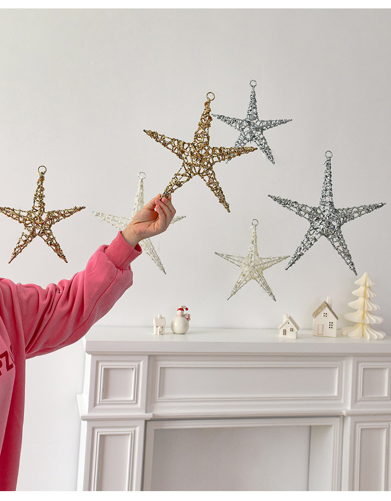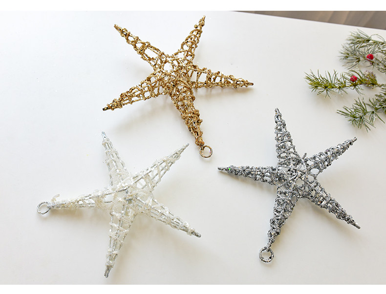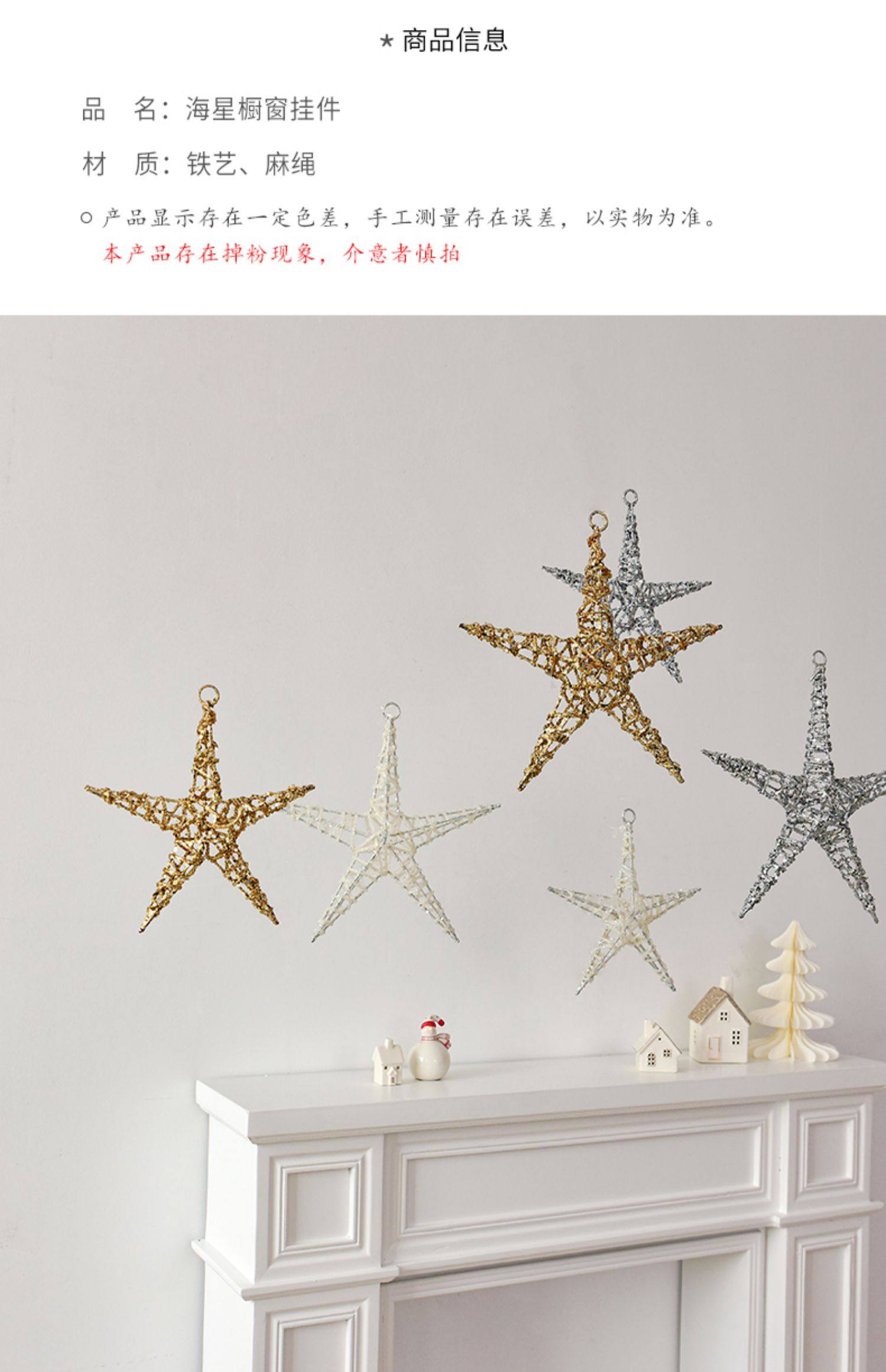 圣诞海星装饰闪粉五星铁艺五角星橱窗吊顶店铺美陈装饰星星