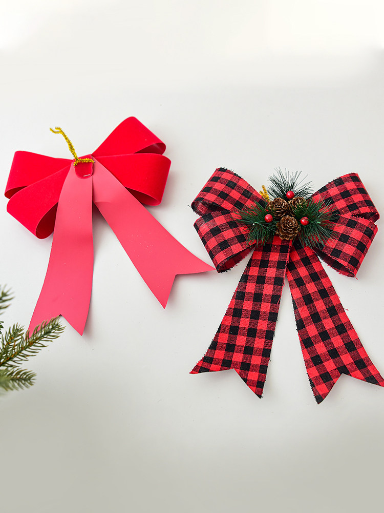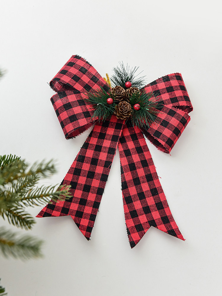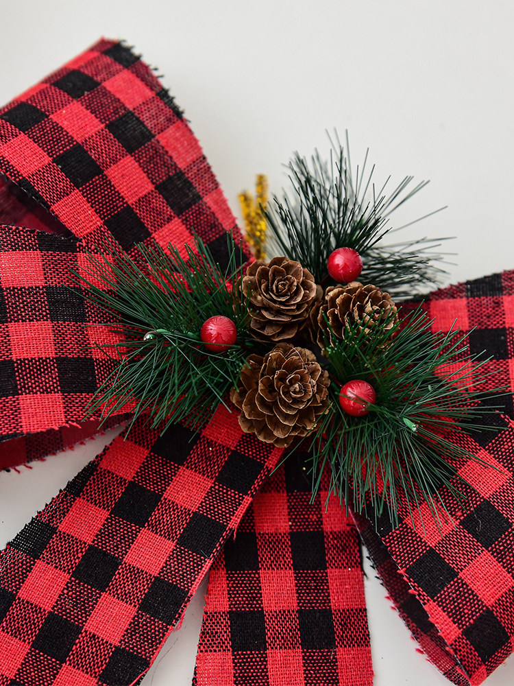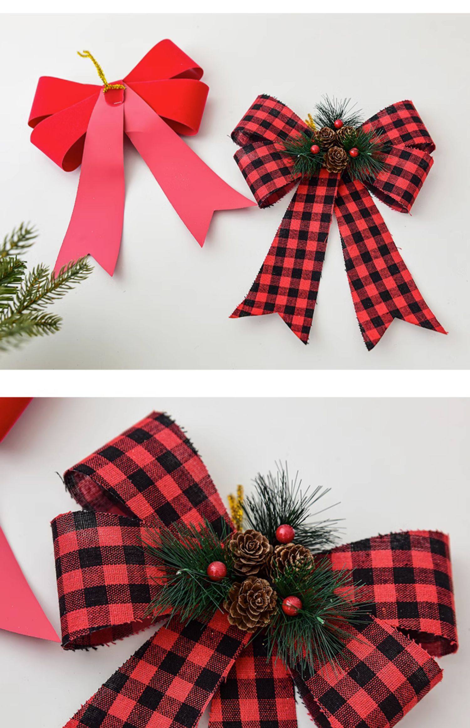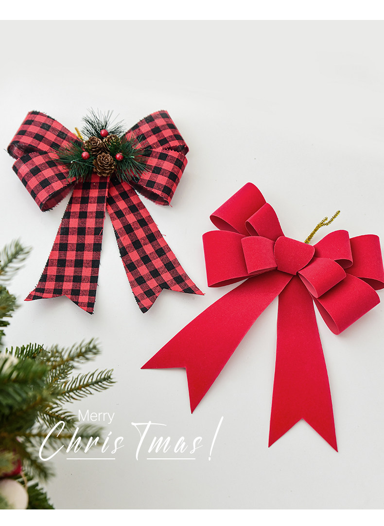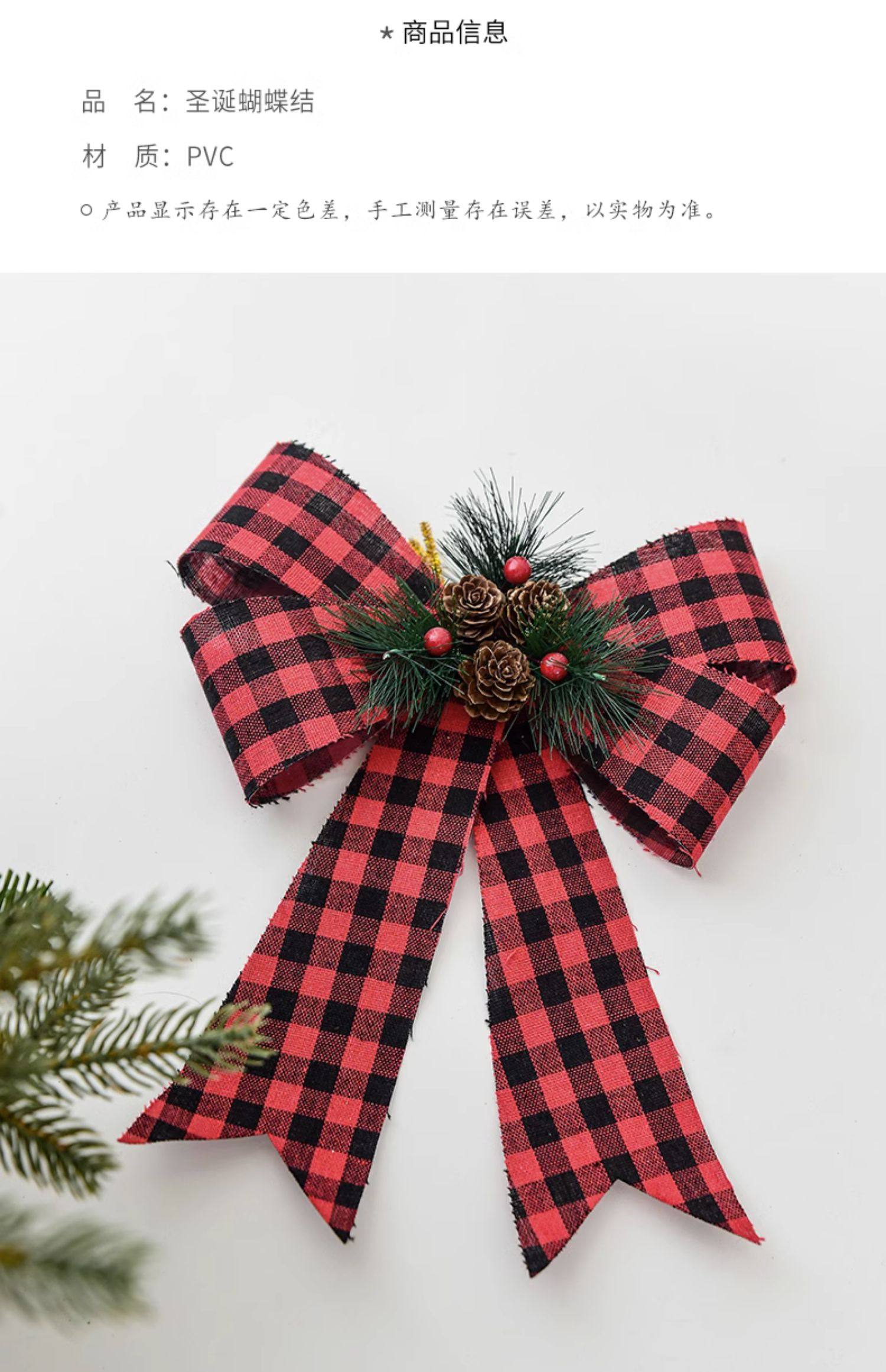 圣诞大蝴蝶结30cm圣诞红黑格纹立体蝴蝶结圣诞树装饰蝴蝶结