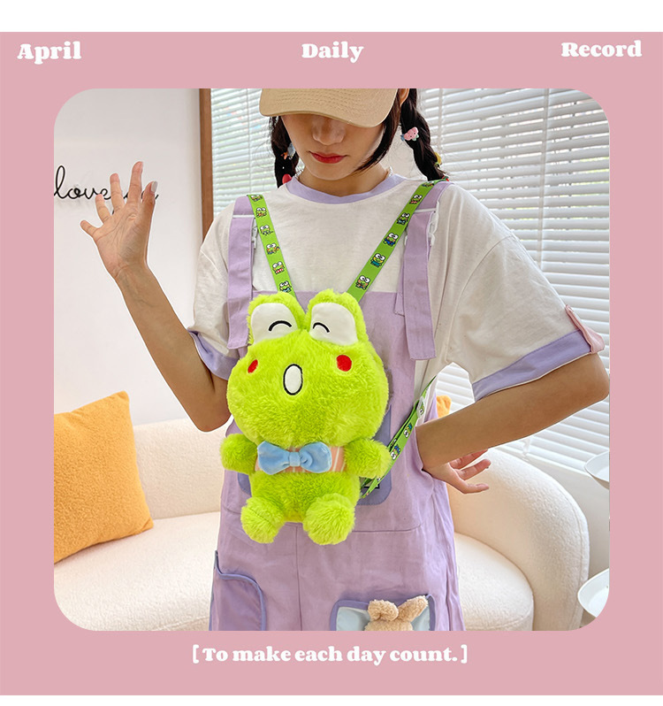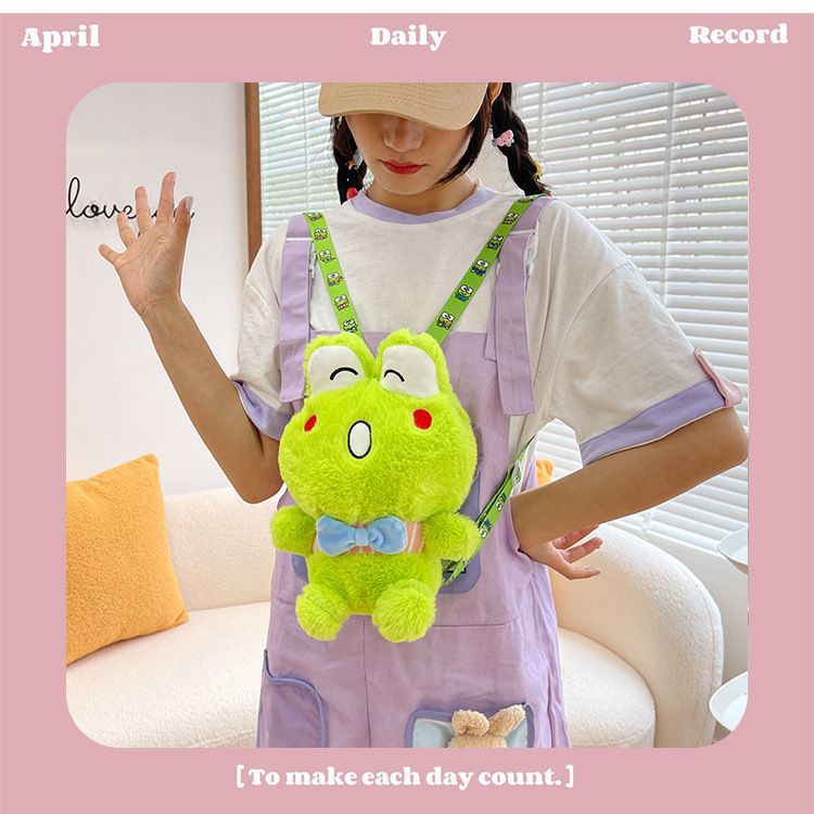 2023儿童包时尚卡通童趣玩偶包韩版ins可爱搞怪毛绒微笑蛙双肩包