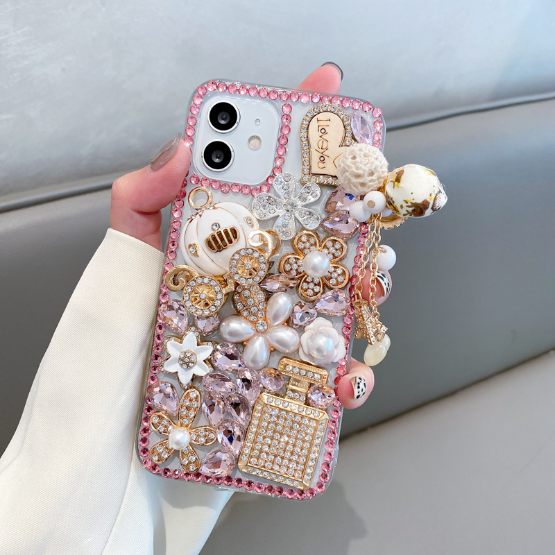 满钻南瓜车适用华为mate40pro手机壳香水瓶水钻p50女款nova9防摔