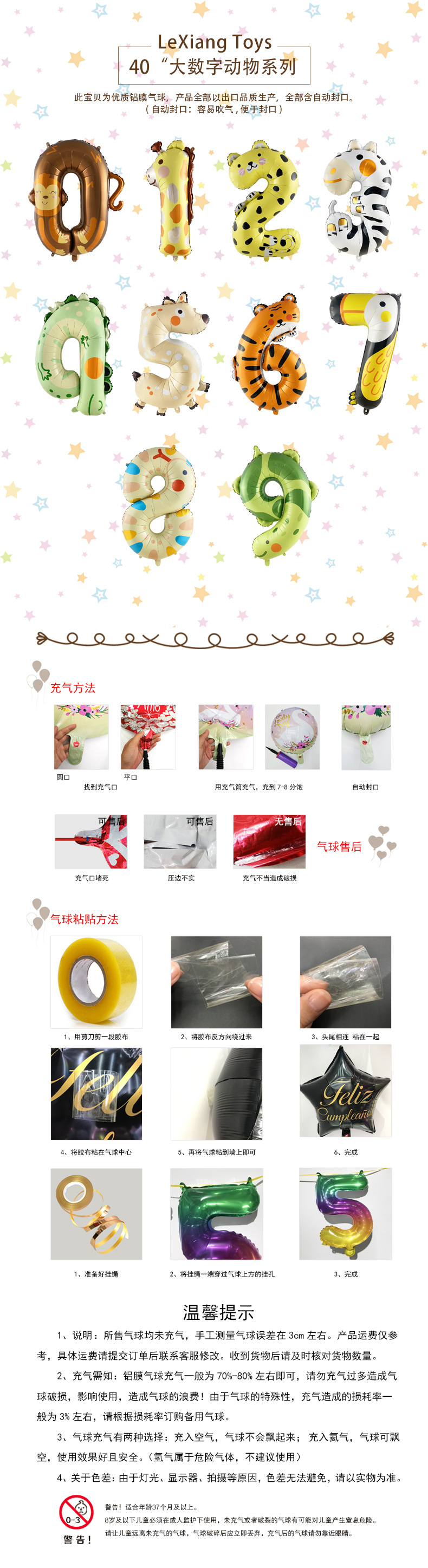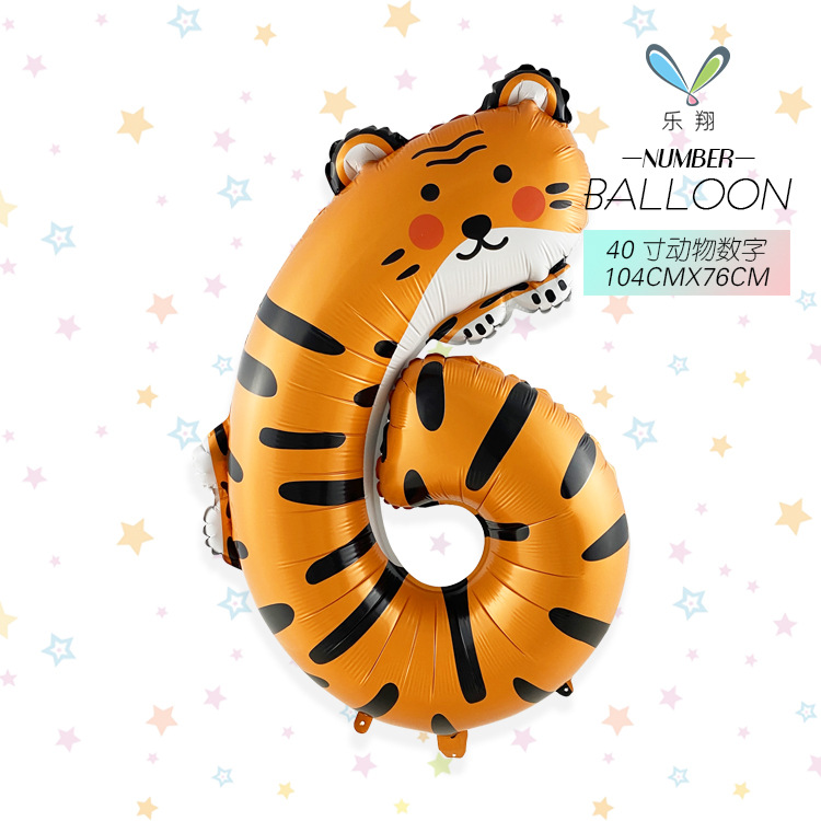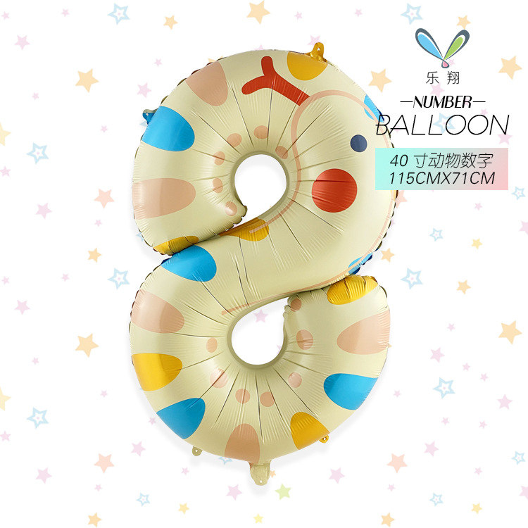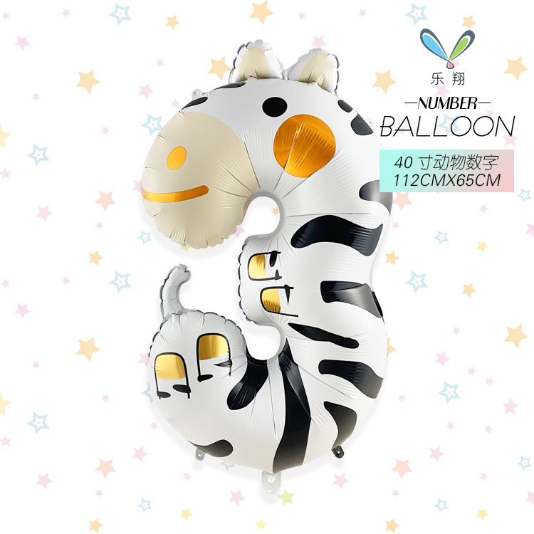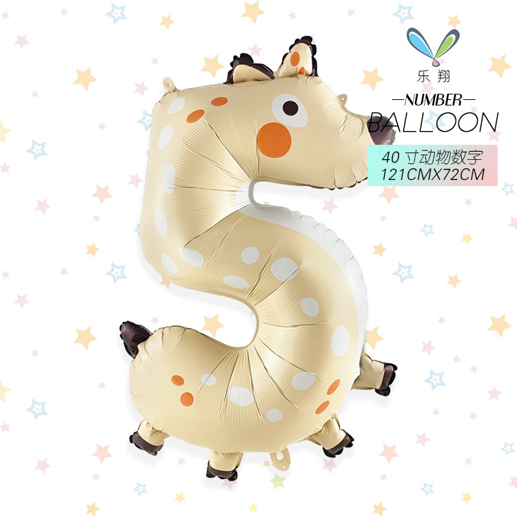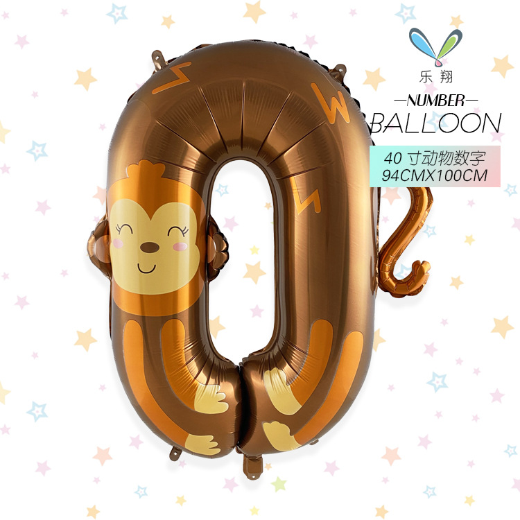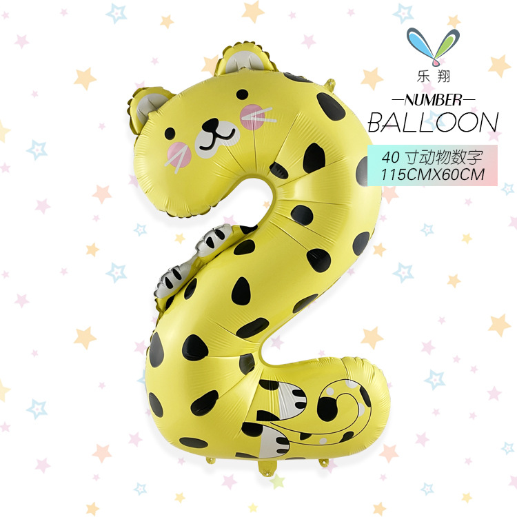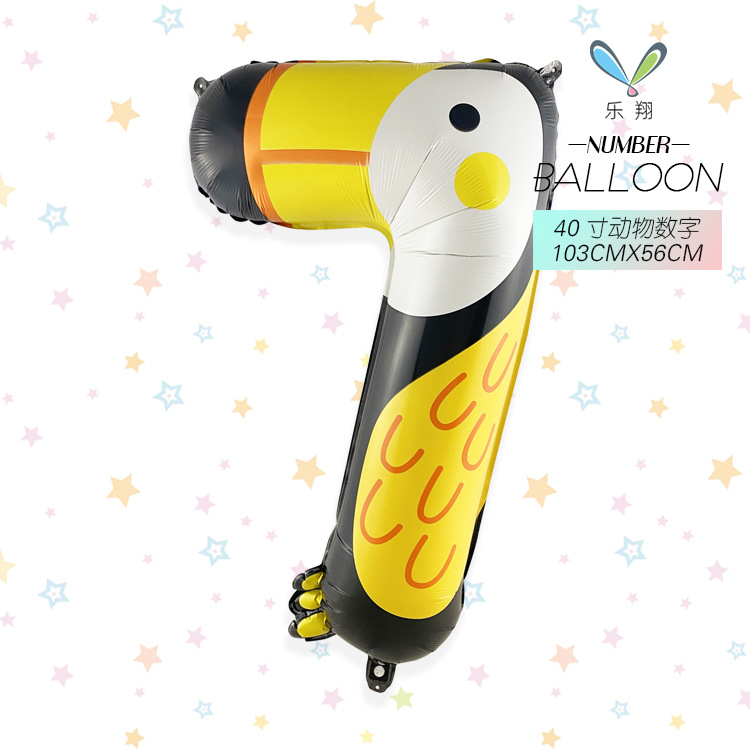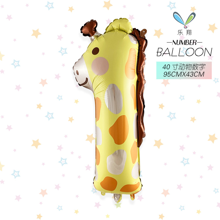 跨境 新款40寸大数字动物铝膜气球 儿童周岁生日派对装饰气球道具
