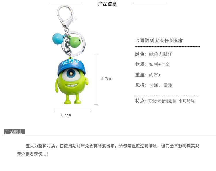 发光发声怪兽大学大眼仔钥匙扣可爱卡通带帽三眼怪包包挂件小礼品