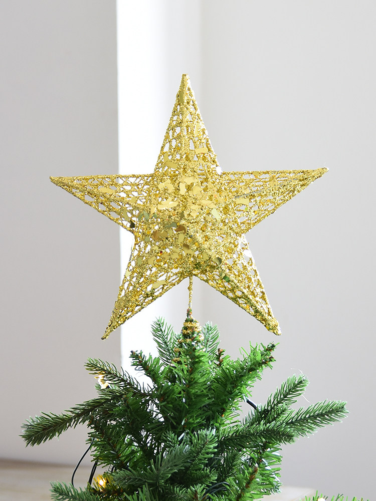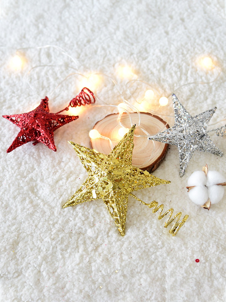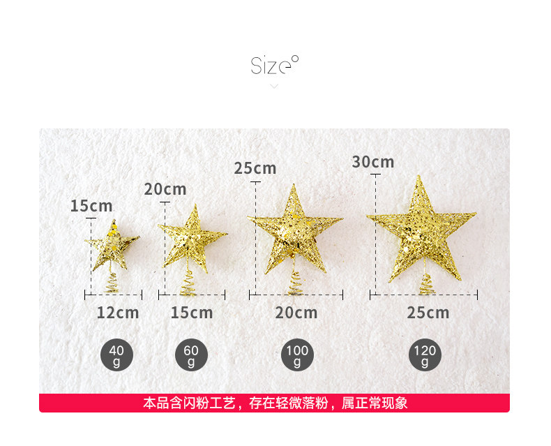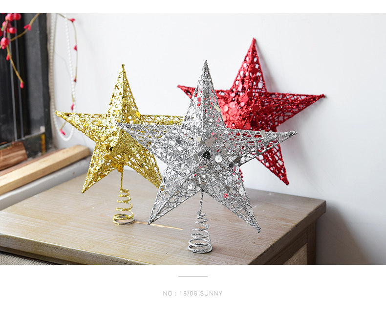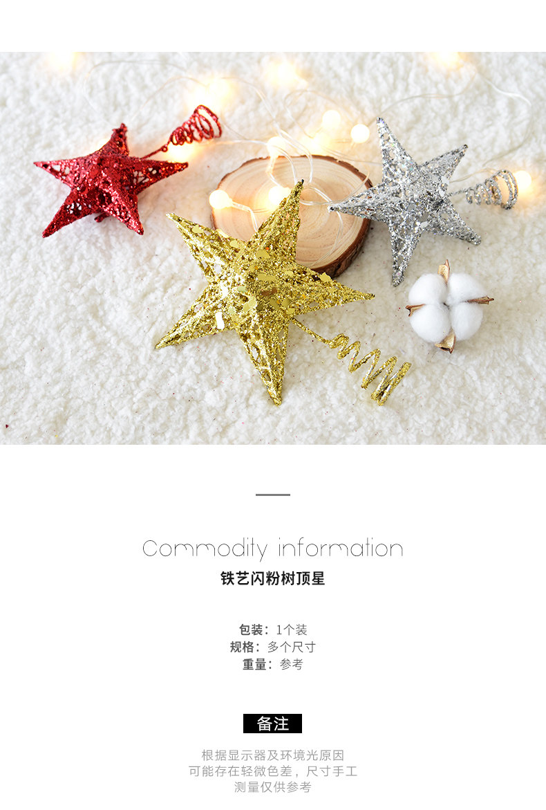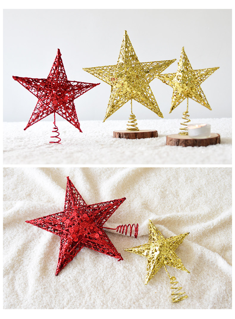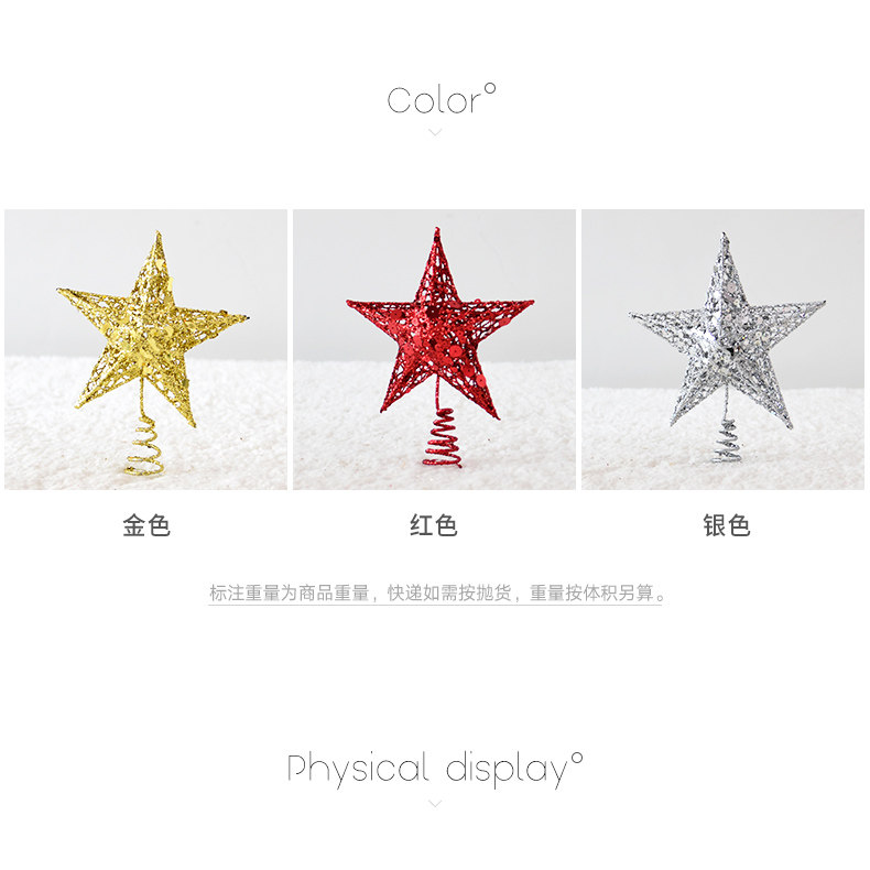 铁艺闪粉圣诞树星星顶装饰弹簧式树顶星五角星圣诞节装饰品