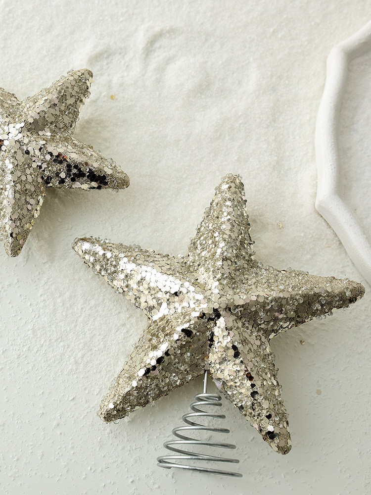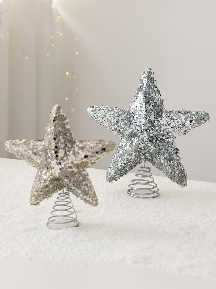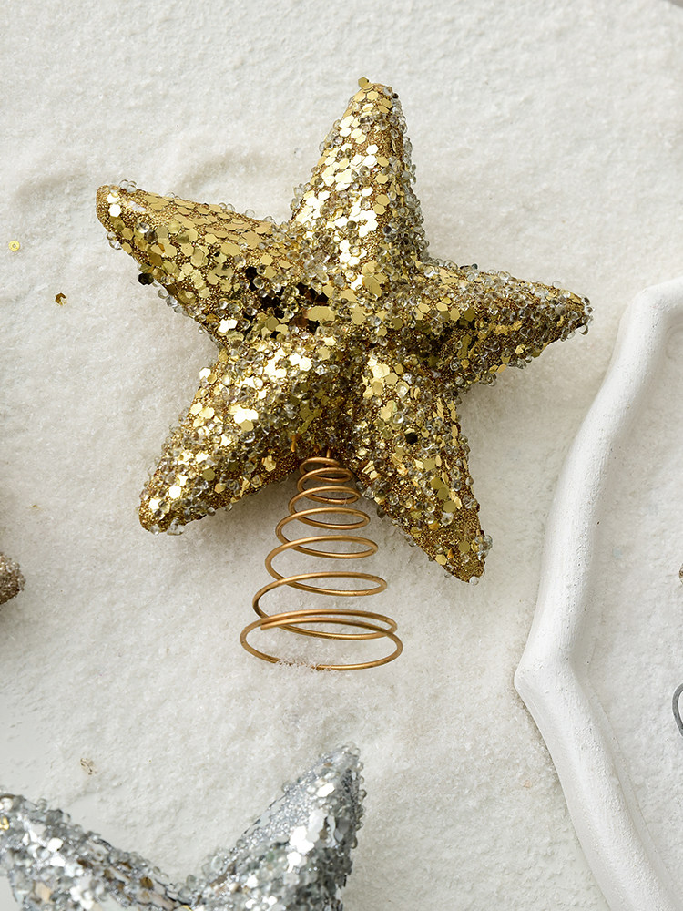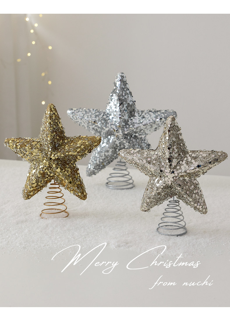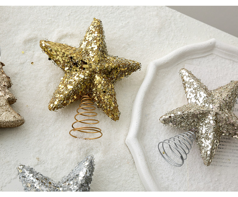 闪粉圣诞树星星顶部装饰弹簧式树顶星五角星圣诞节装饰品圣诞装饰