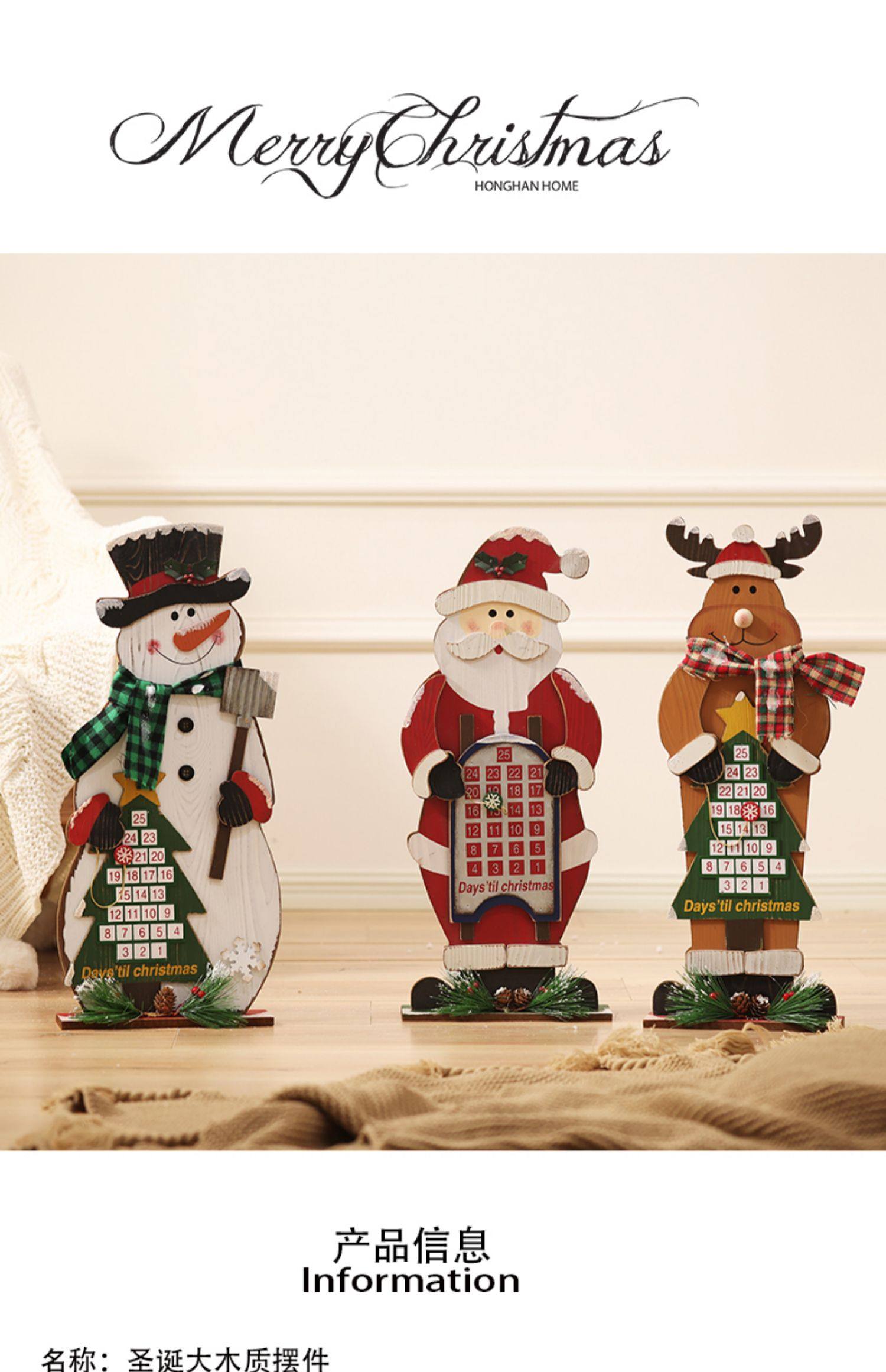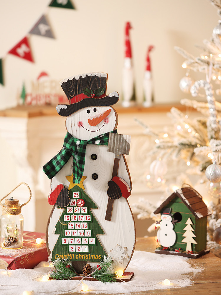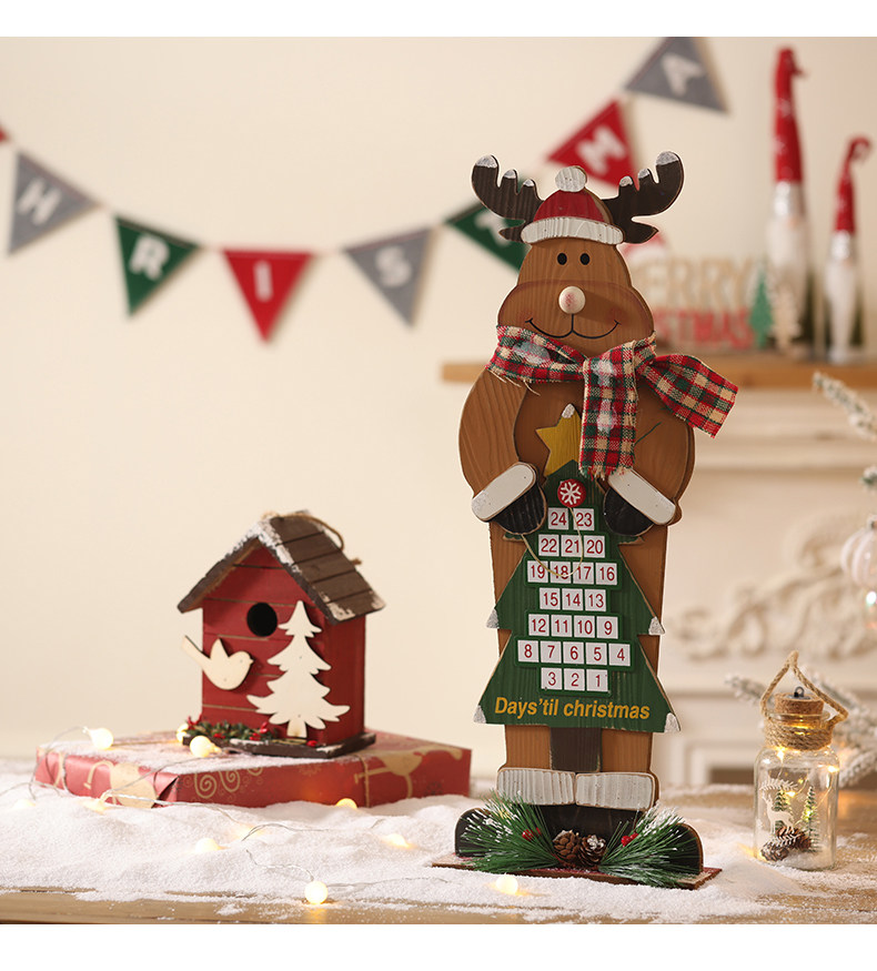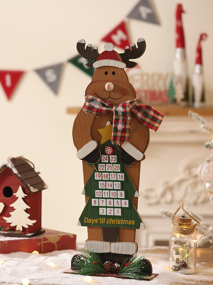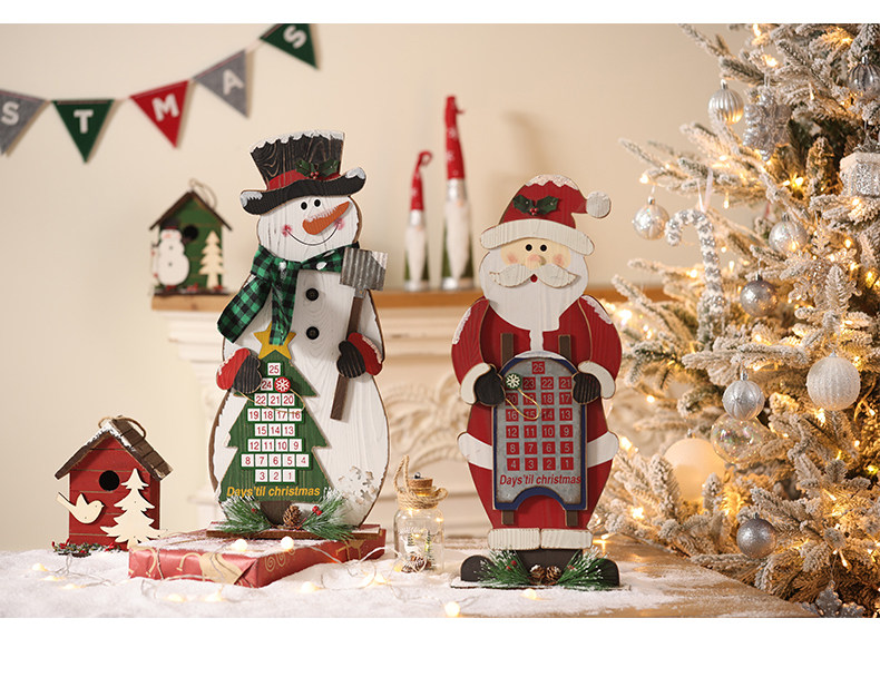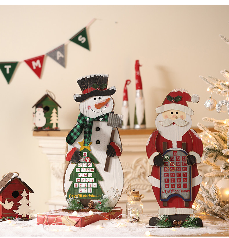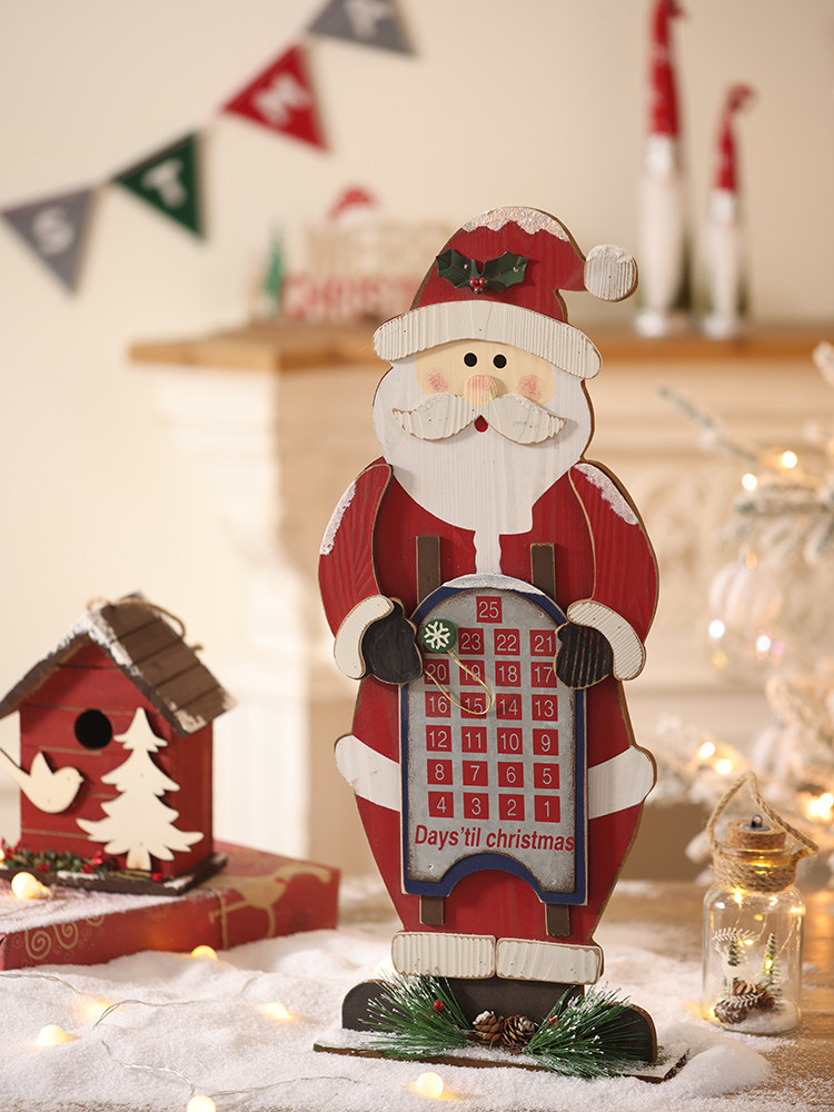 圣诞日历木质摆件圣诞老人雪人麋鹿圣诞节装饰品橱窗场景布置道具