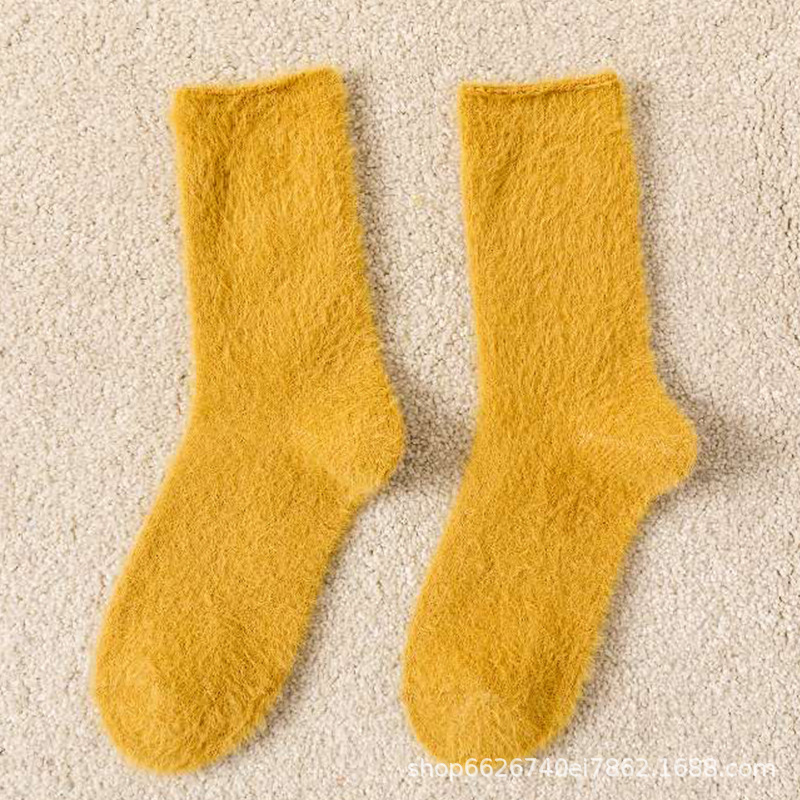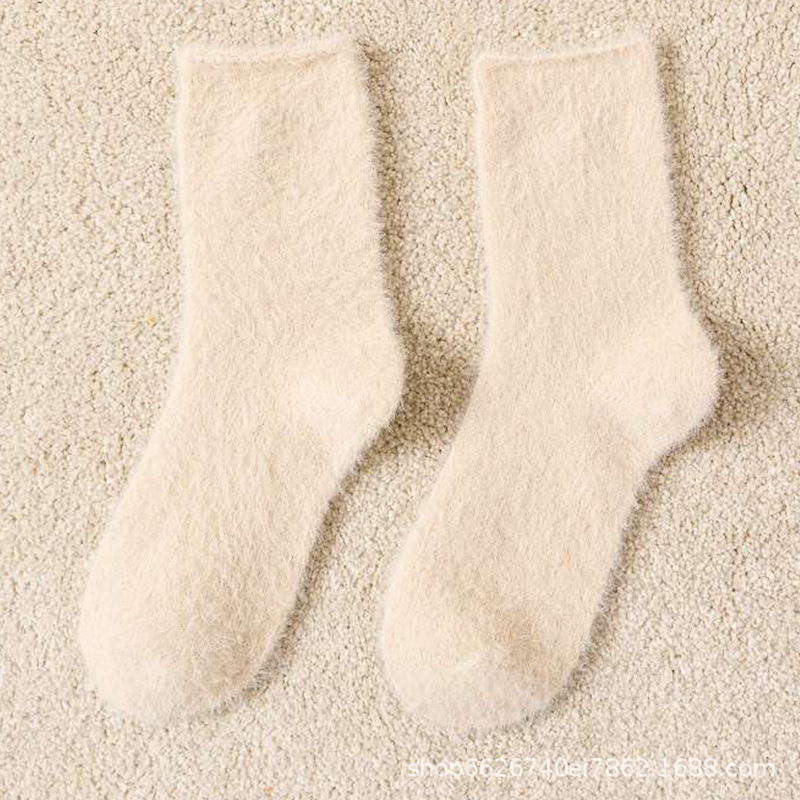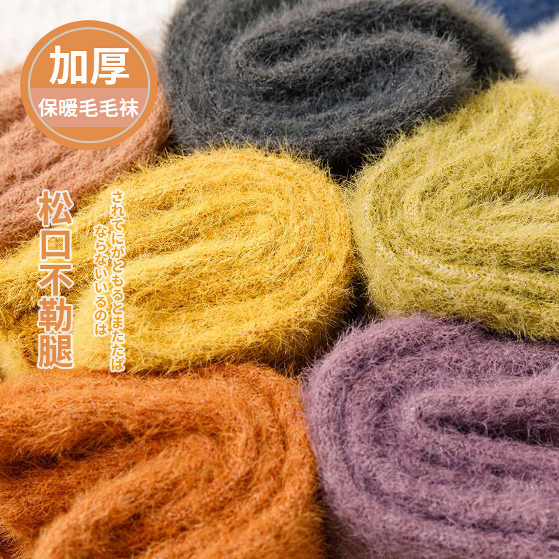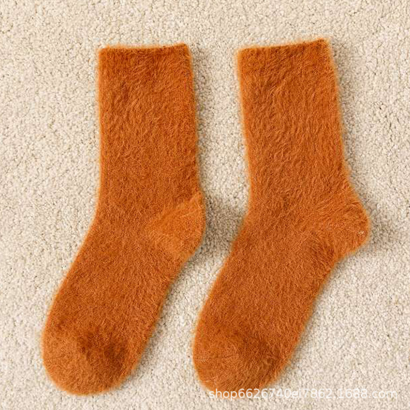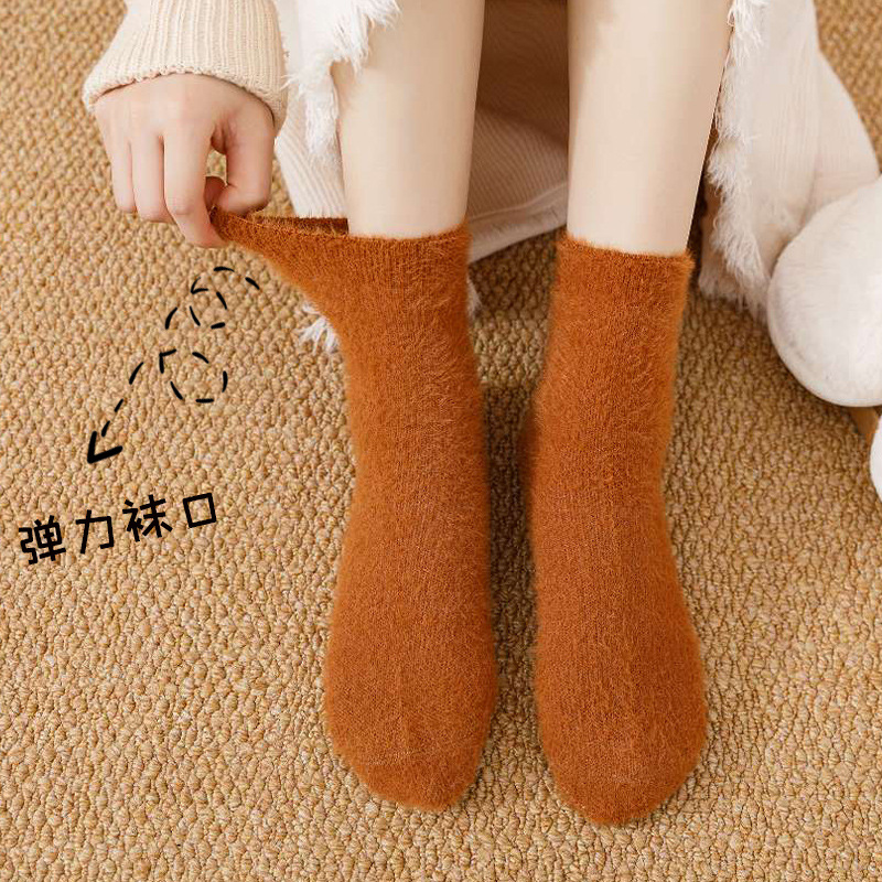 水貂绒袜子女中筒冬季加绒加厚保暖睡眠袜可爱毛绒地板毛巾月子袜