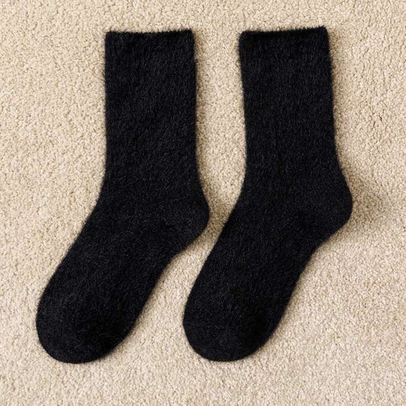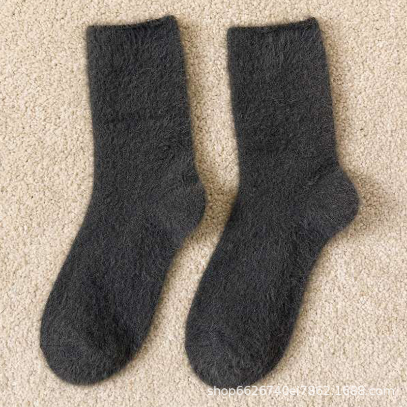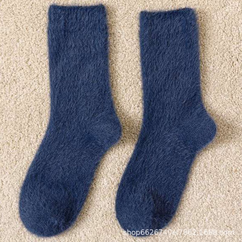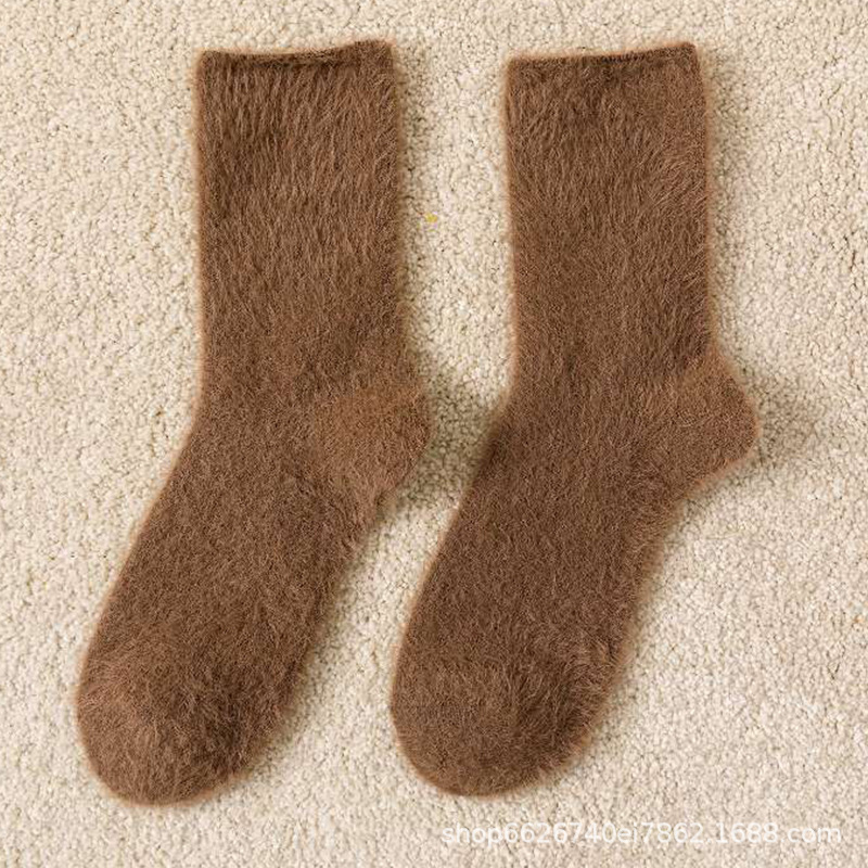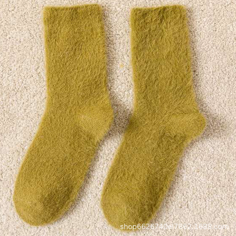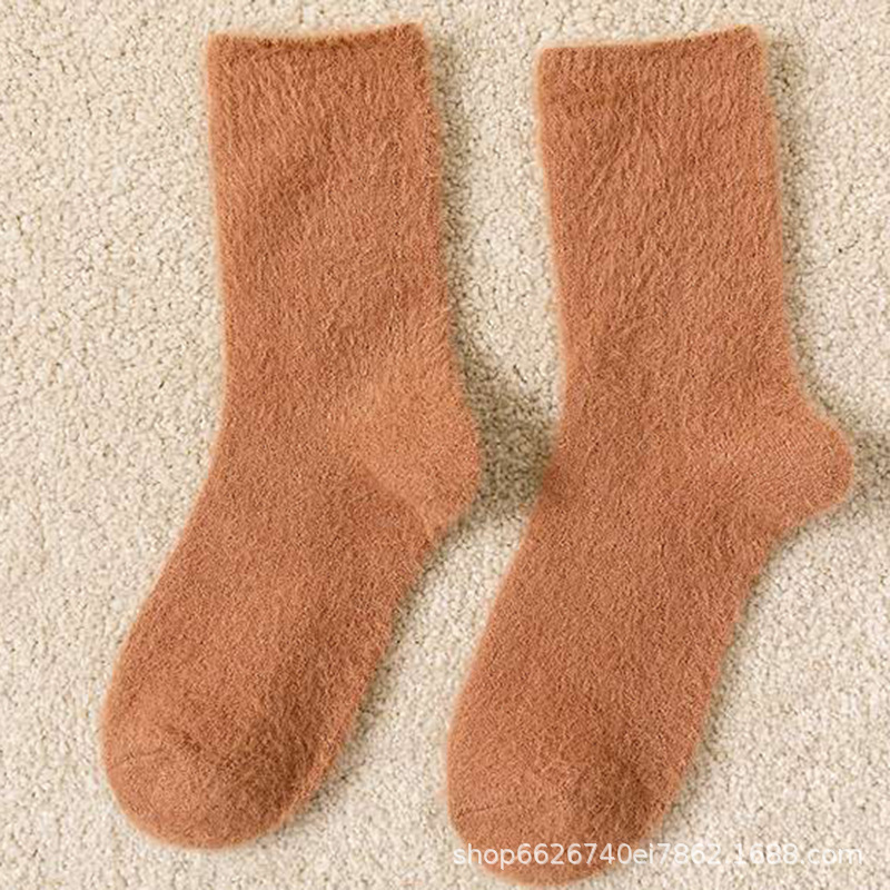 水貂绒袜子女中筒冬季加绒加厚保暖睡眠袜可爱毛绒地板毛巾月子袜