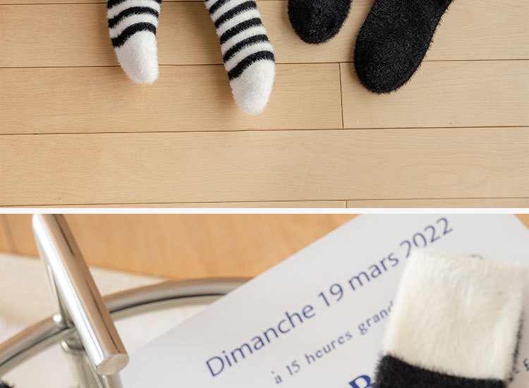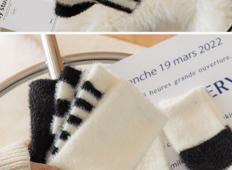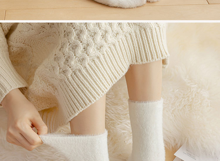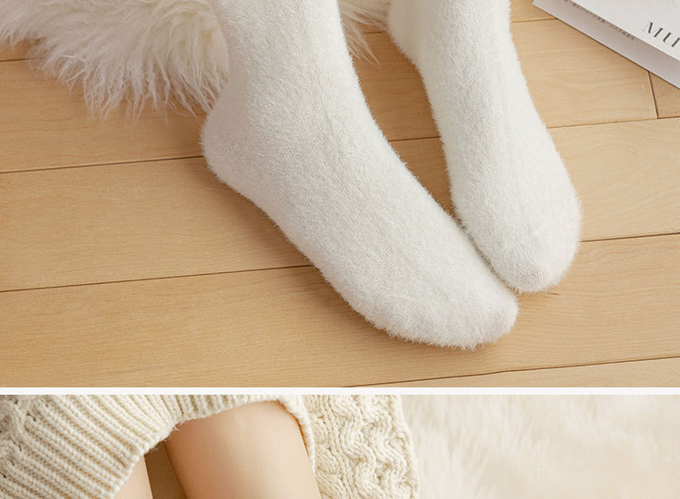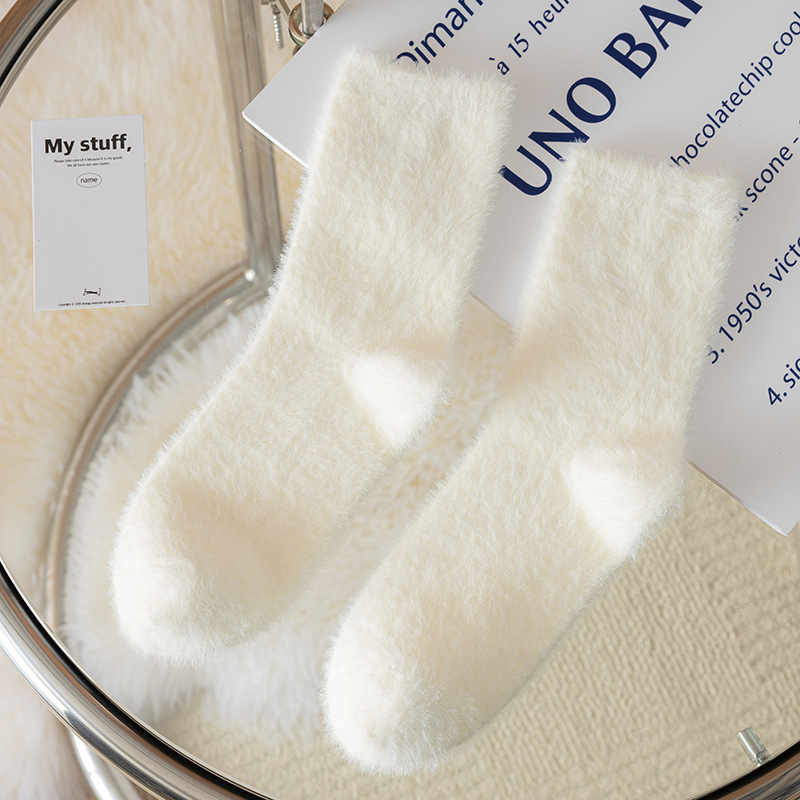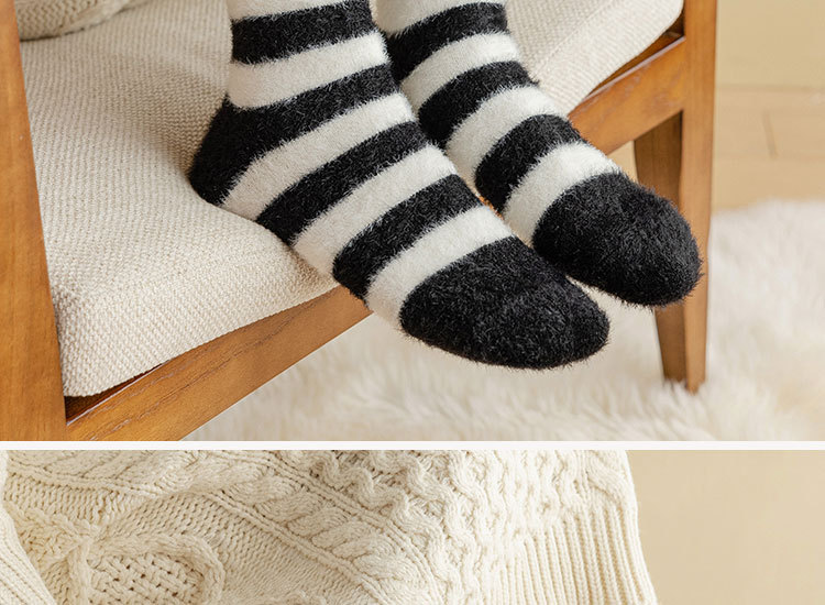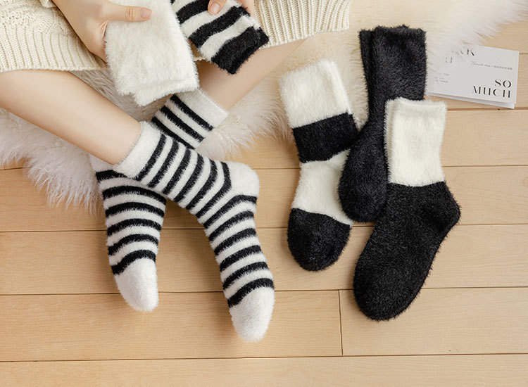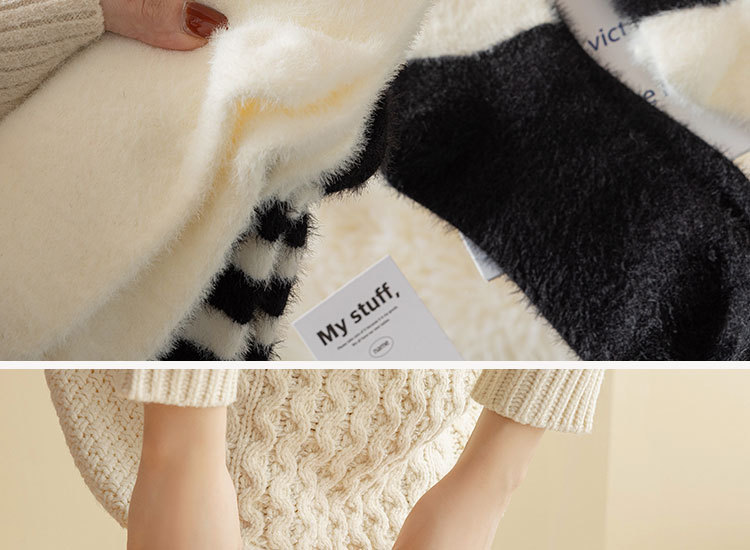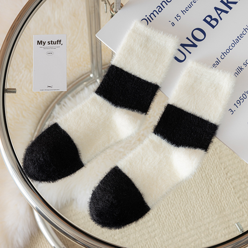黑白貂绒袜子女加厚冬季中筒袜子抗寒不掉毛保暖居家睡眠月子袜