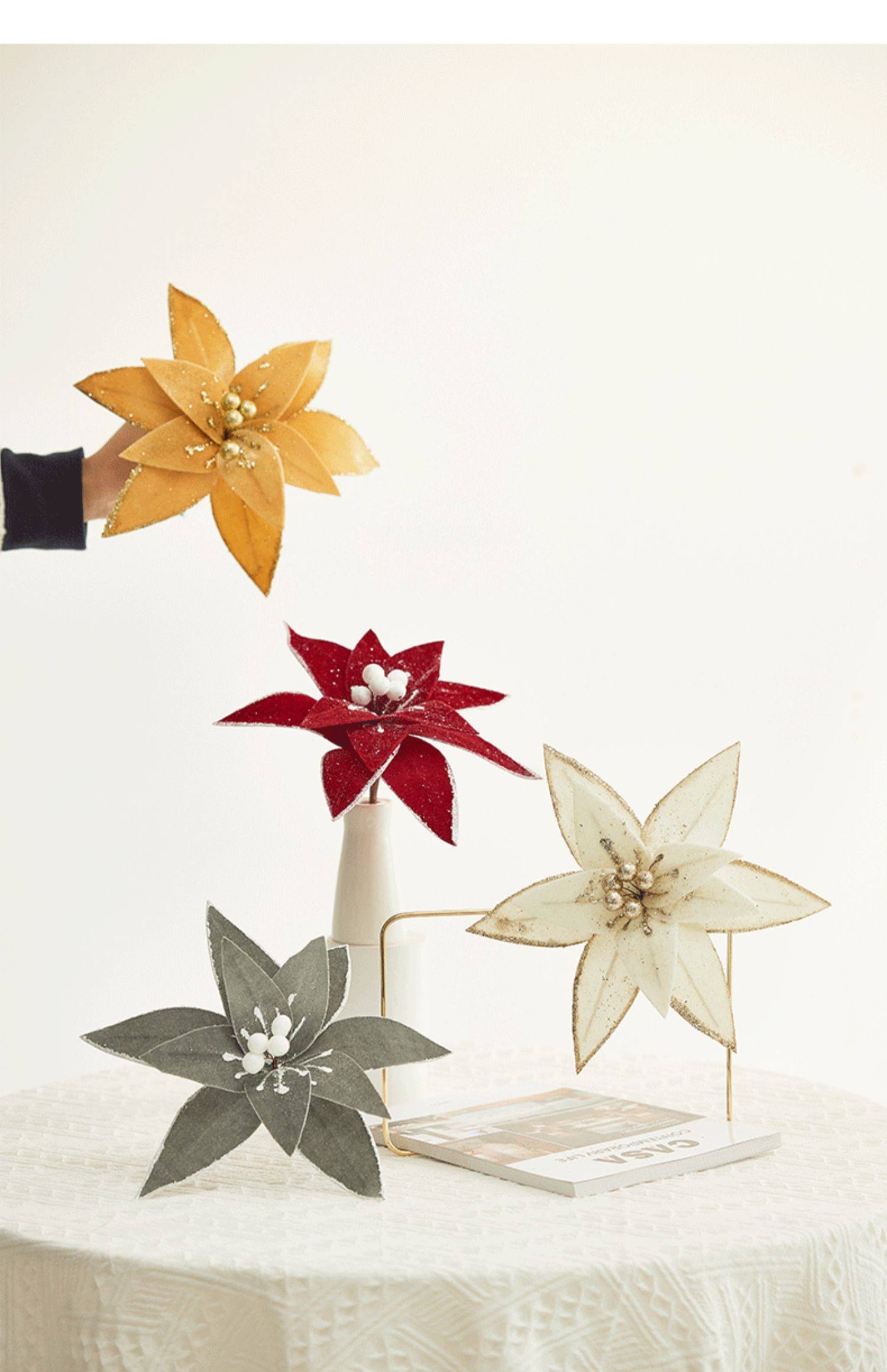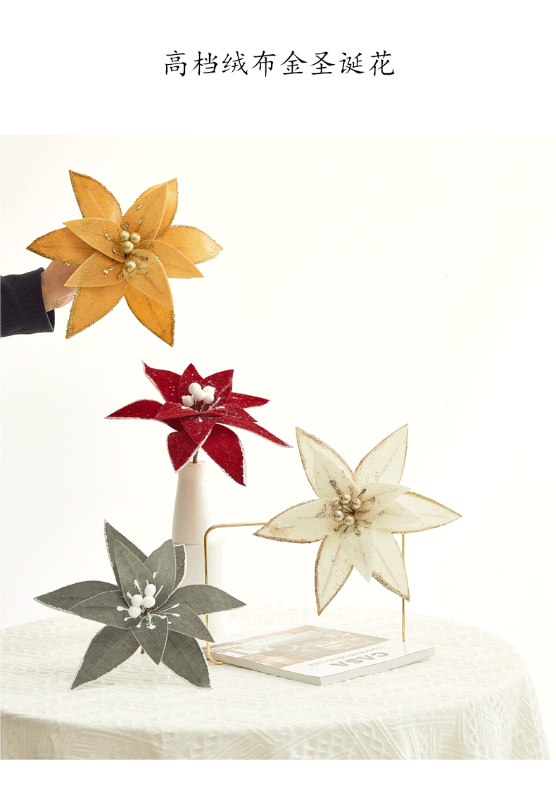 圣诞节装饰仿真花场景布置道具金色银色红色25cm插花花店diy材料