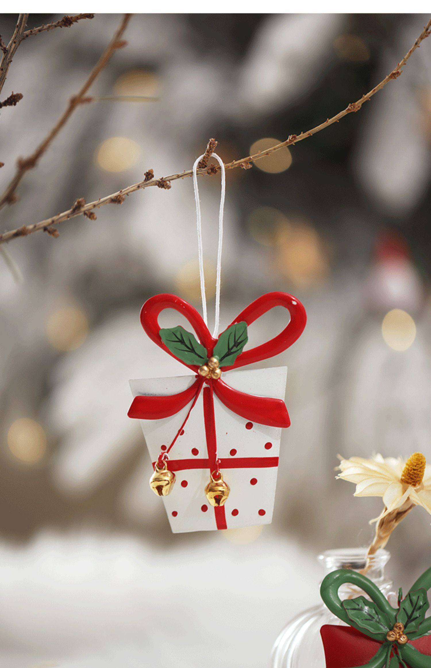 圣诞树装饰挂件铁艺礼包小吊饰挂饰北欧圣诞场景氛围拍摄道具