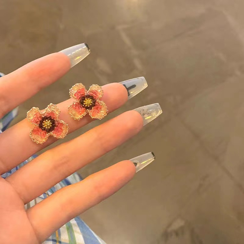 复古小众设计山茶花高级气质耳环轻奢精致茶系独特轻奢网红风耳饰