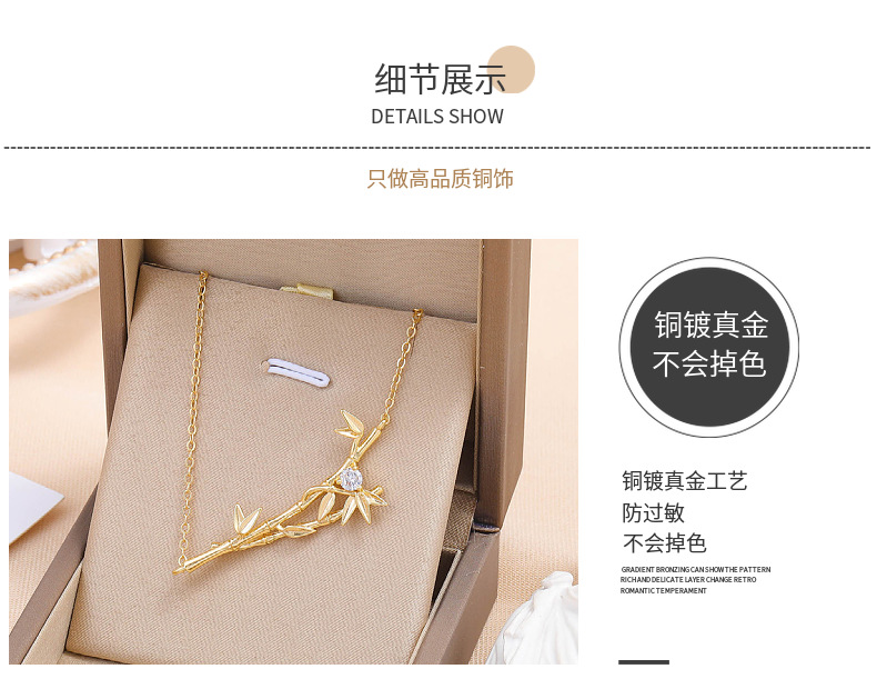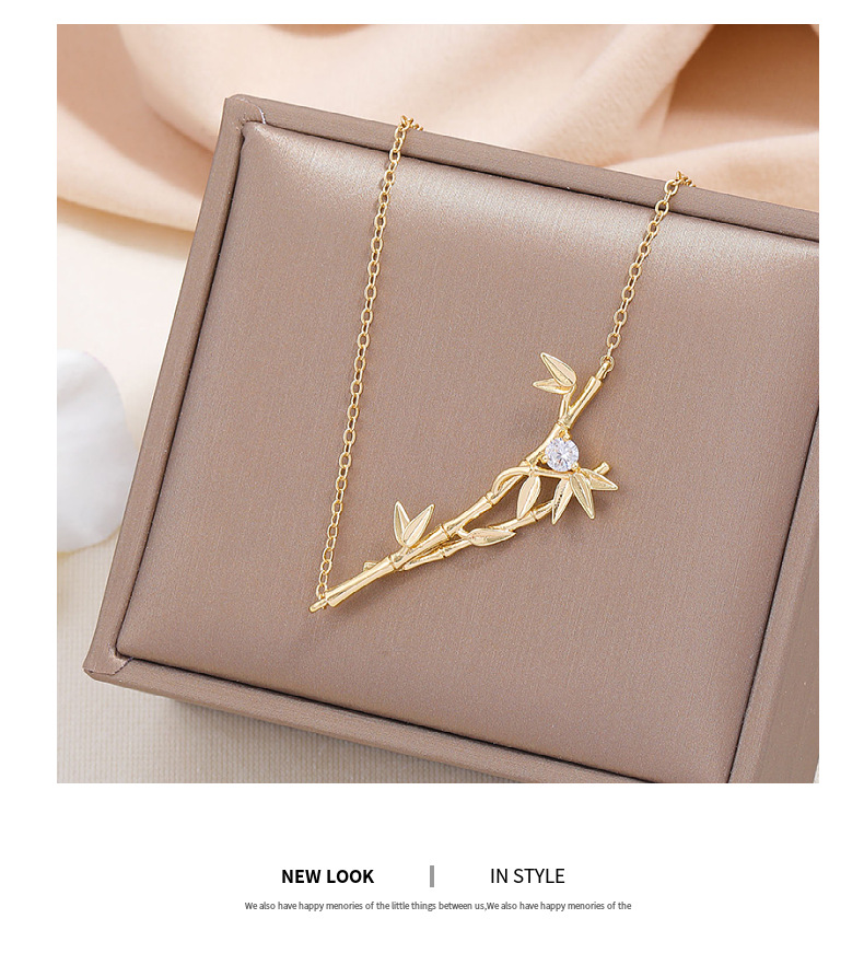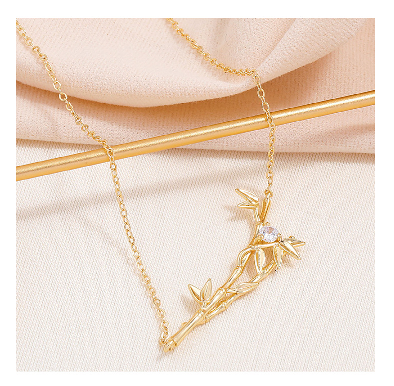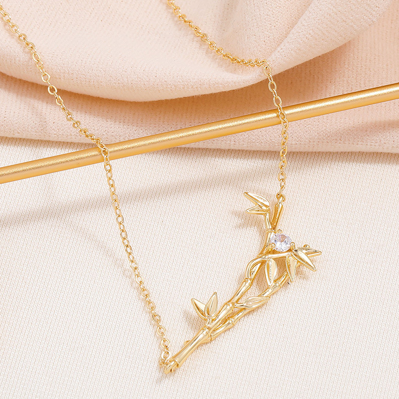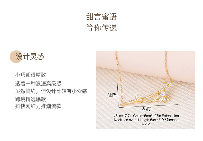 新款轻奢锁骨链生日礼物镀银竹节项链高级设计感小众竹子颈链女