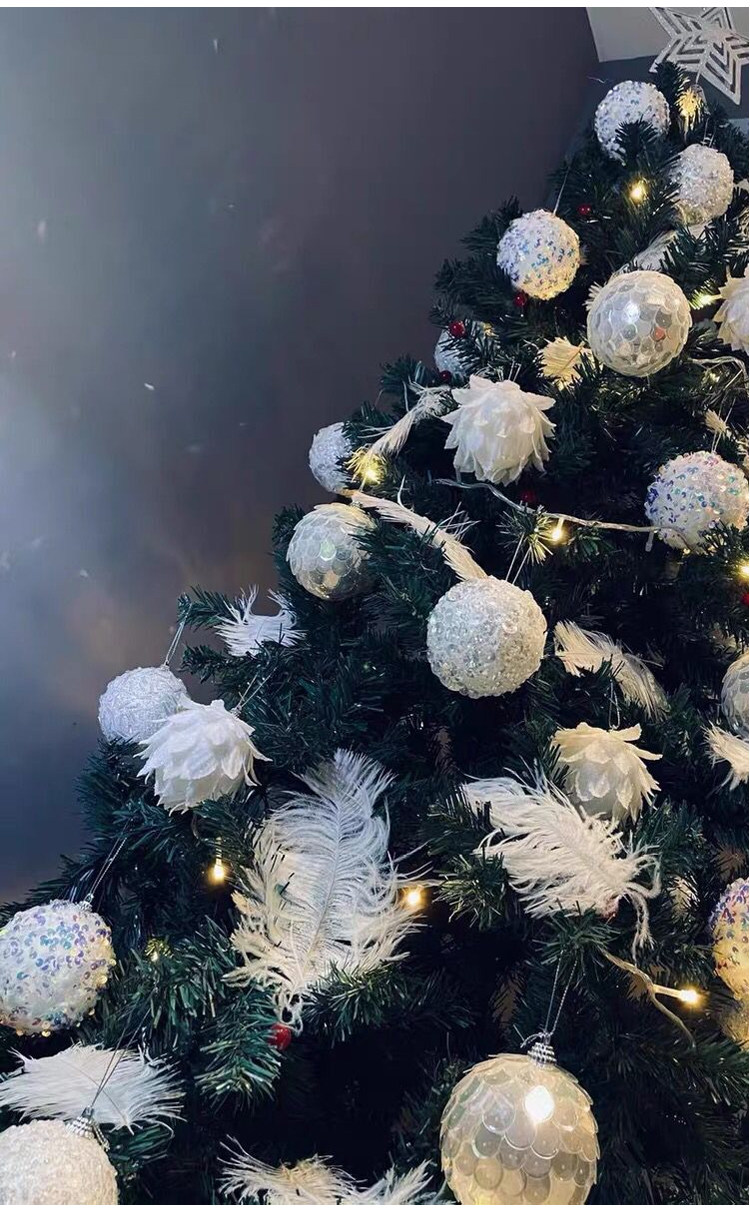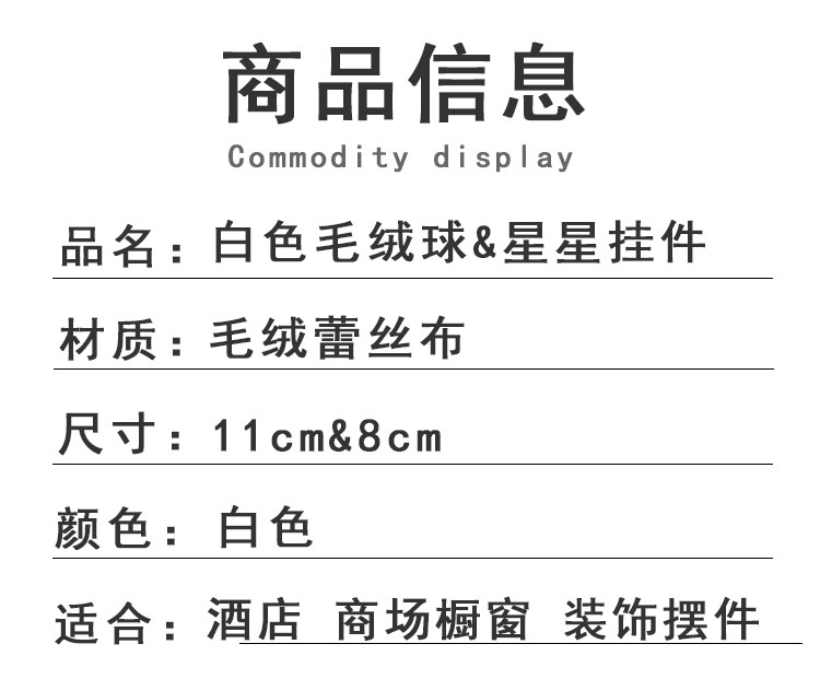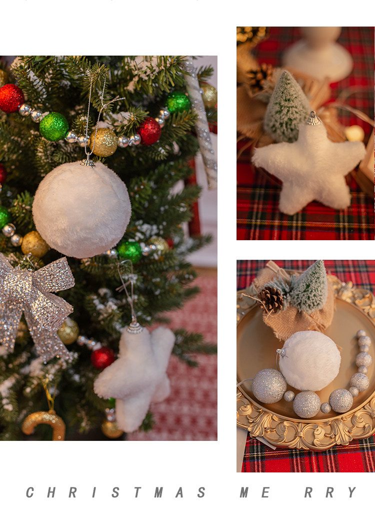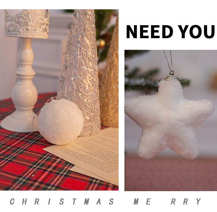 外贸出口圣诞节装饰品白色毛绒布艺星星挂件圣诞树吊饰橱窗装扮物