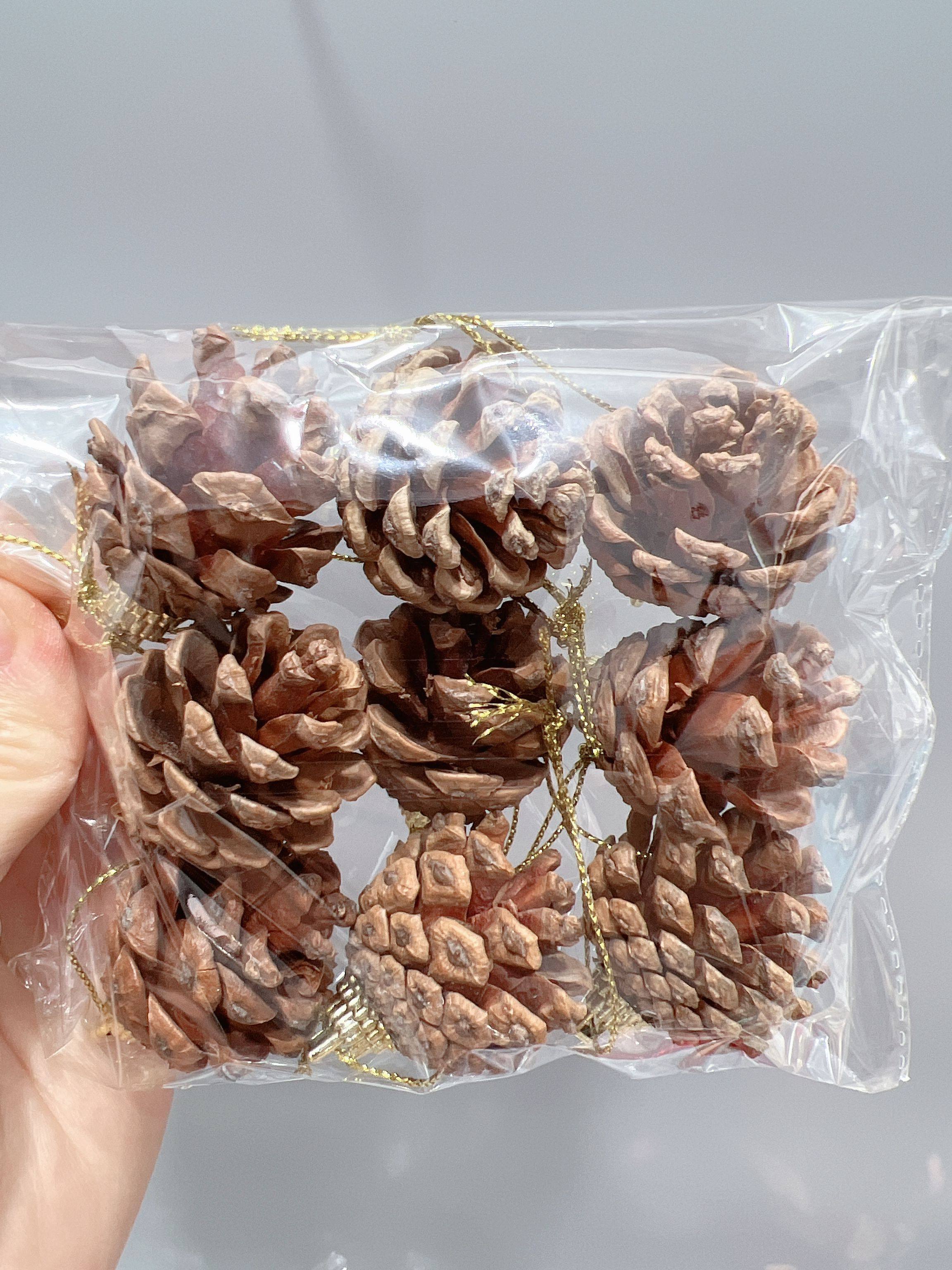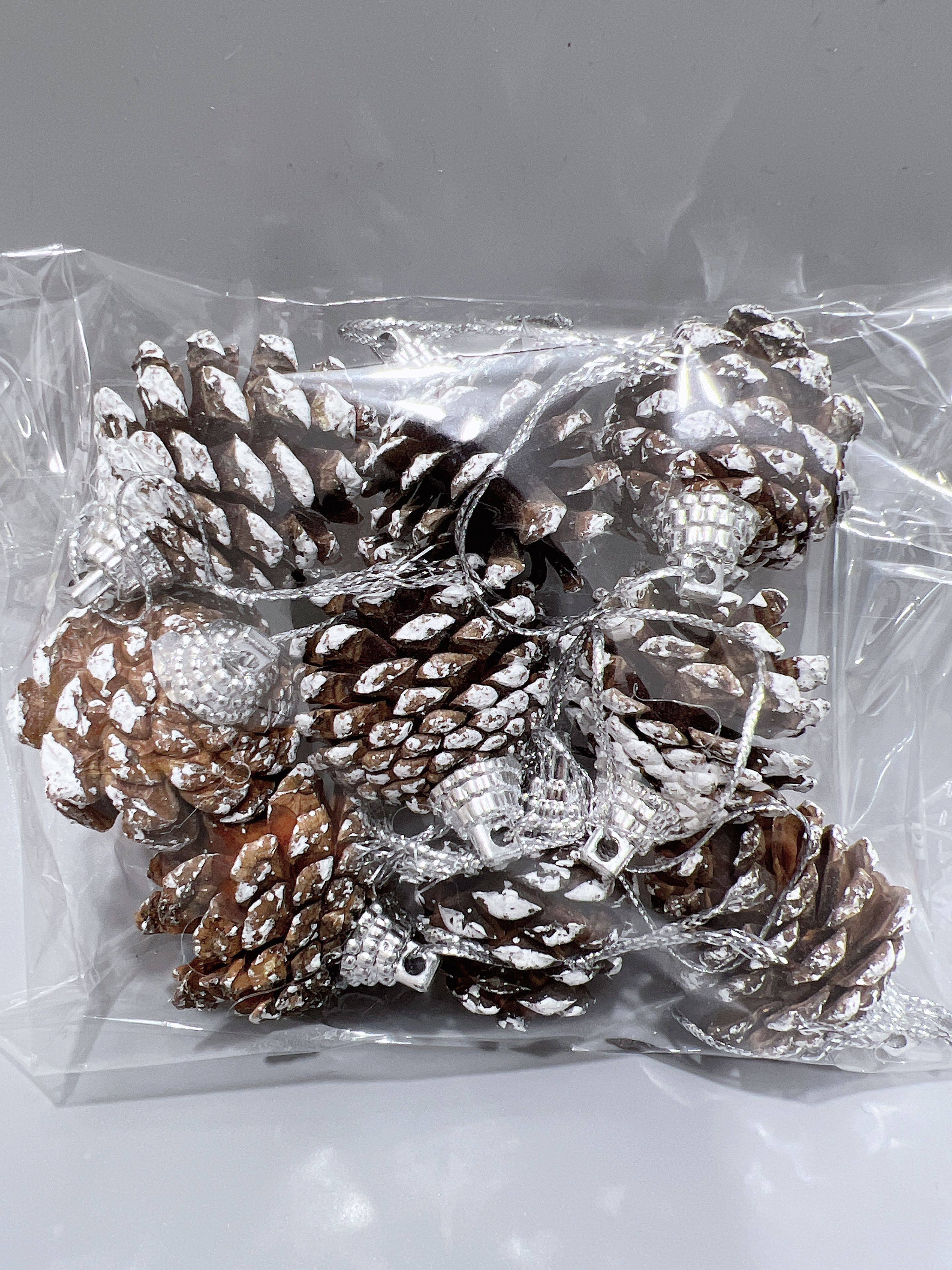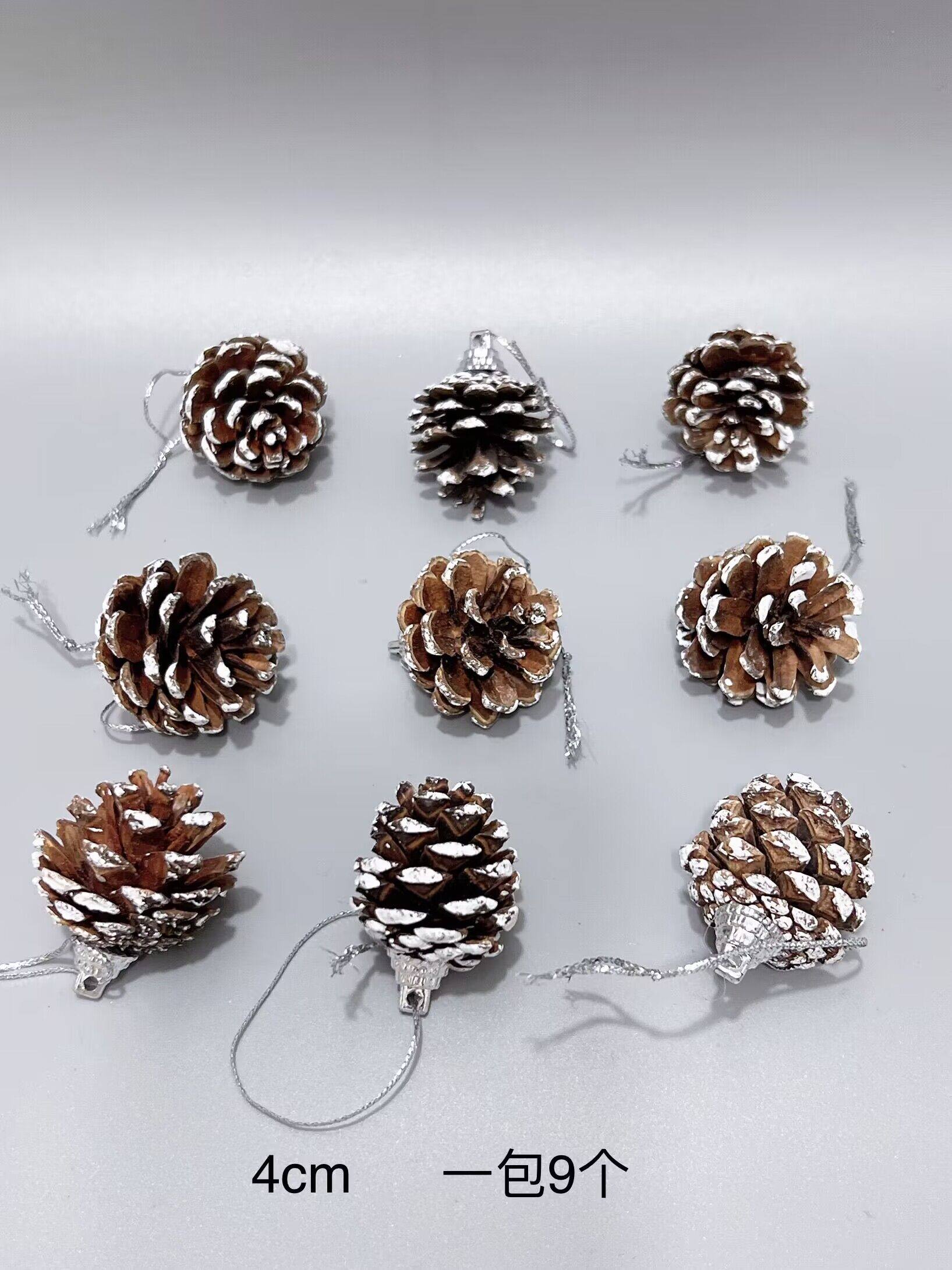 外贸出口圣诞节装饰品圣诞树挂件白色真松果吊饰节日装扮橱窗展示
