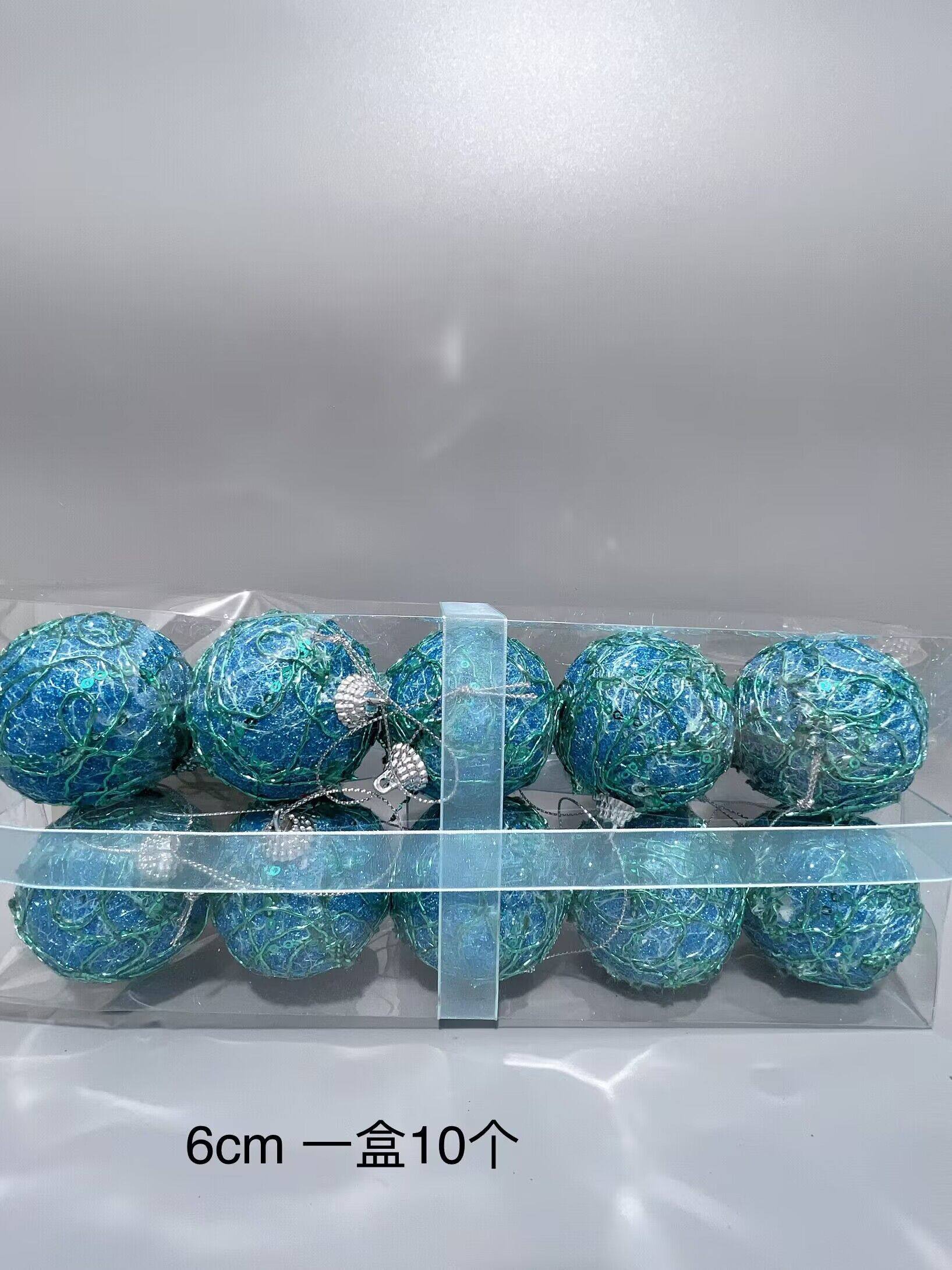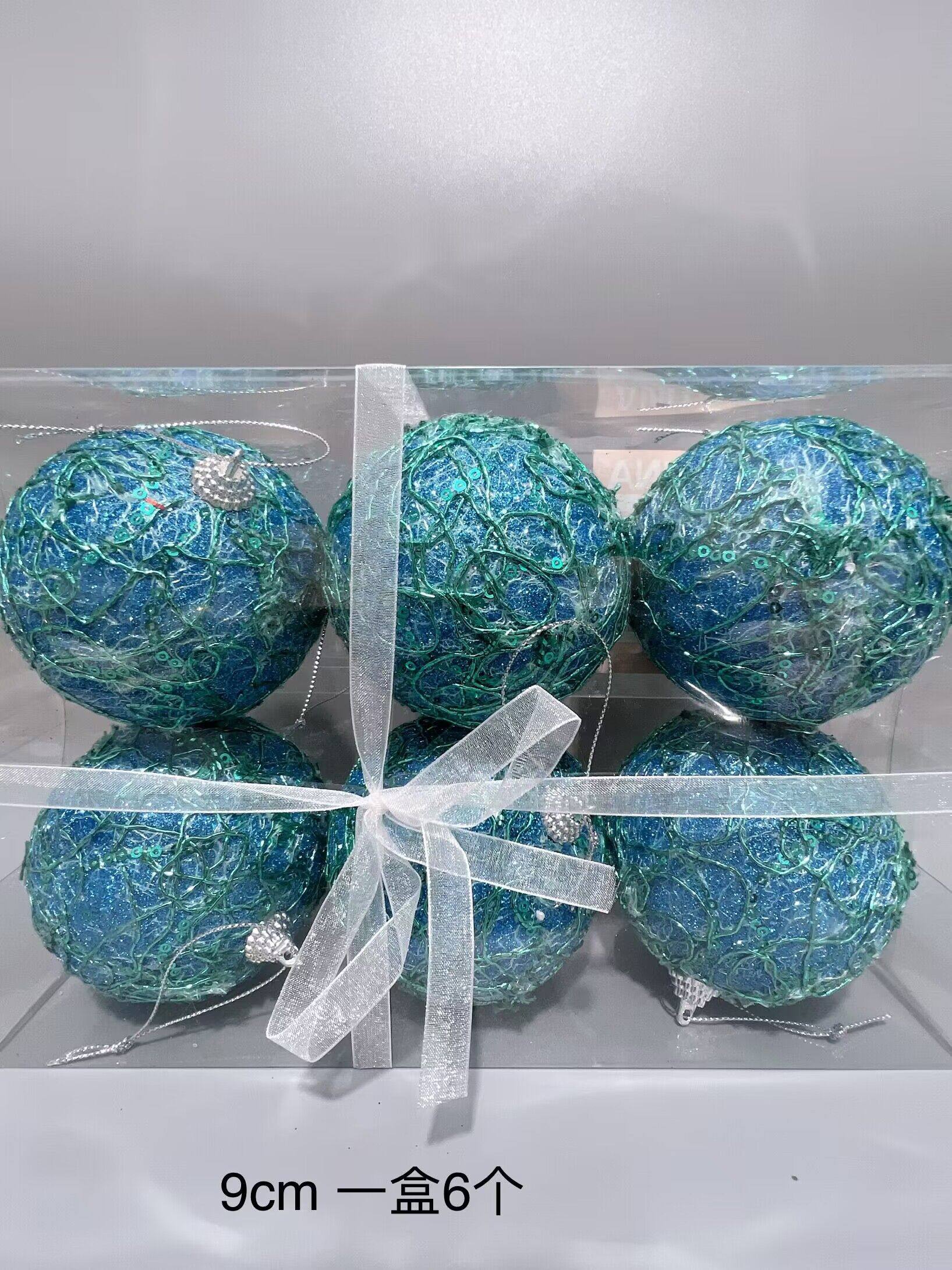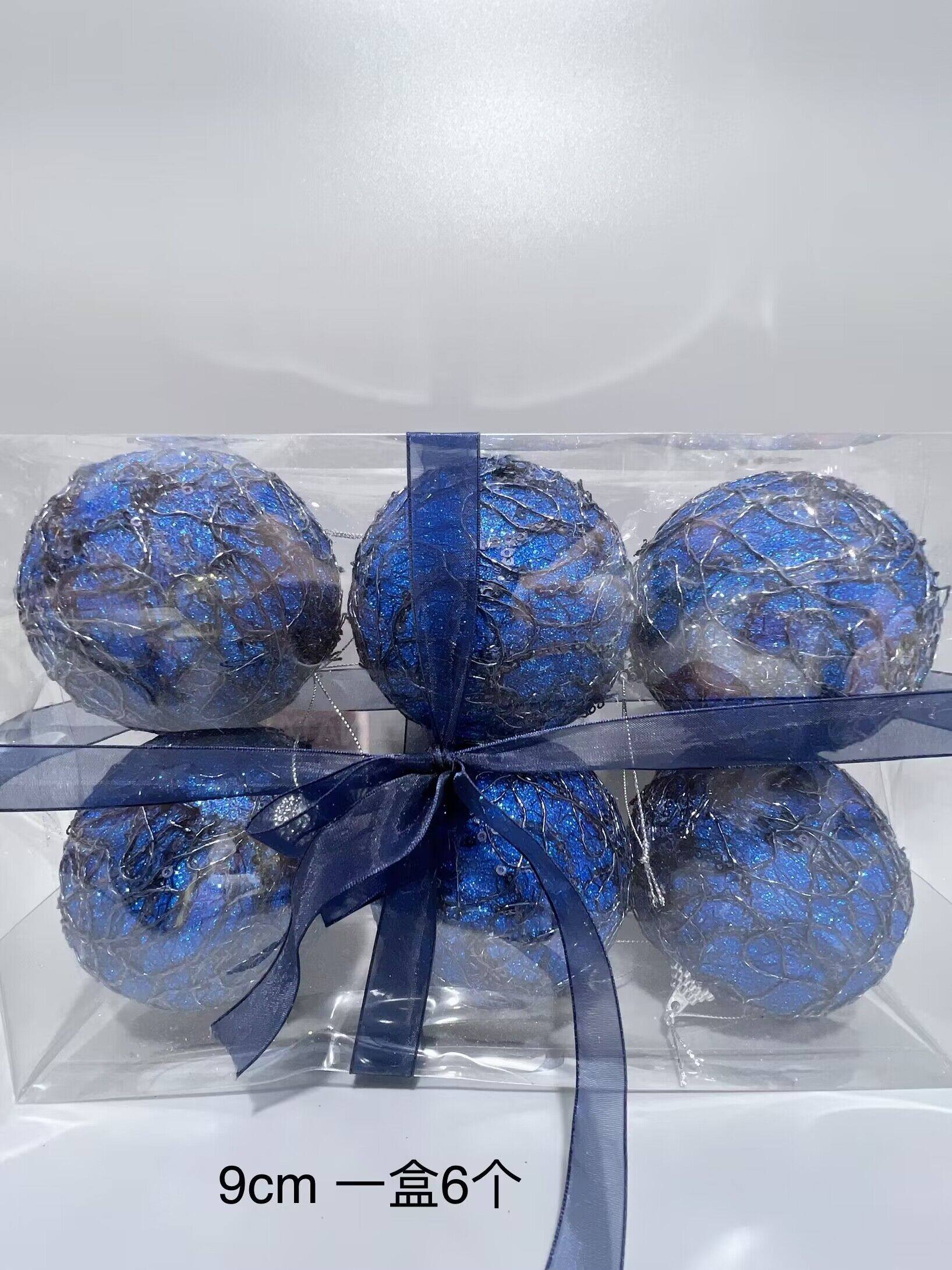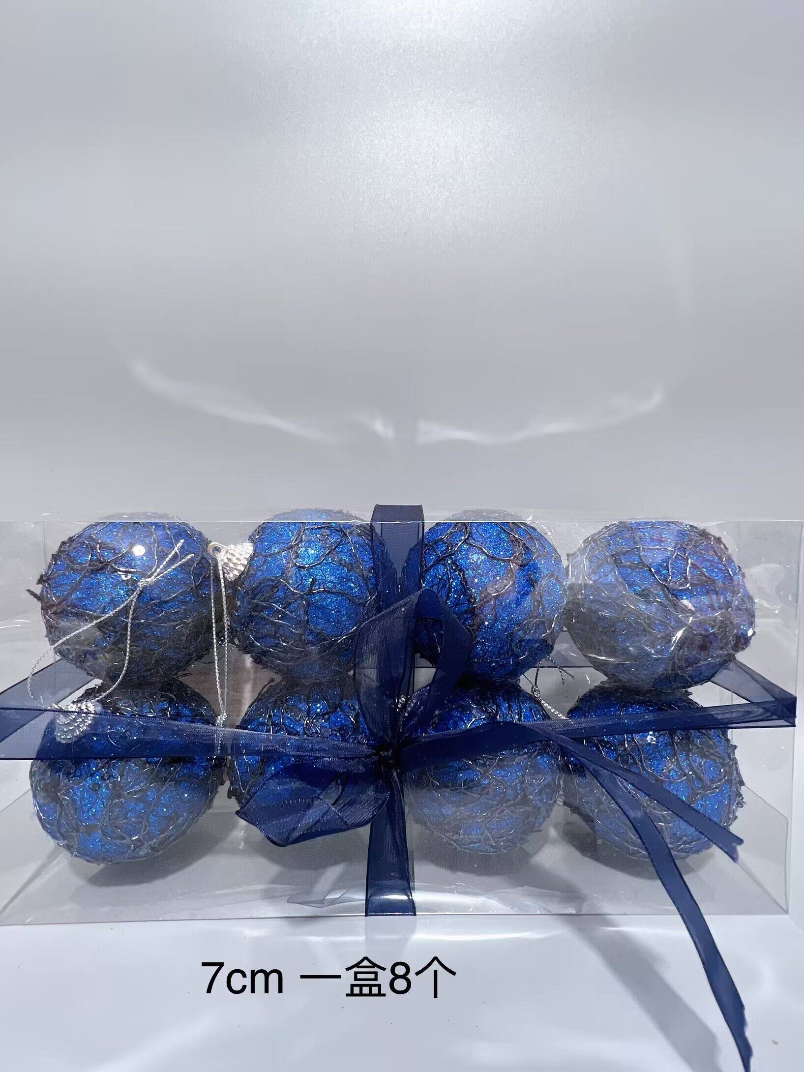 外贸出口圣诞节装饰品蓝色绞丝圣诞球挂件橱窗布置节日装扮9cm6cm