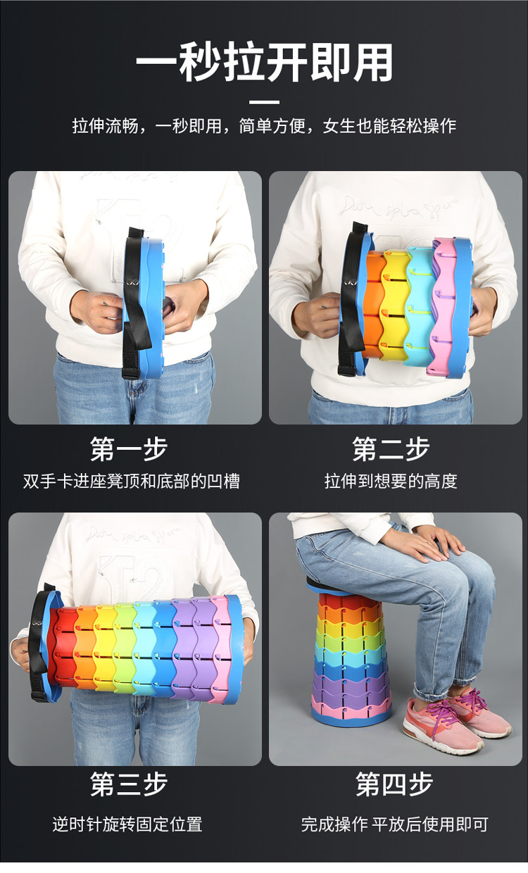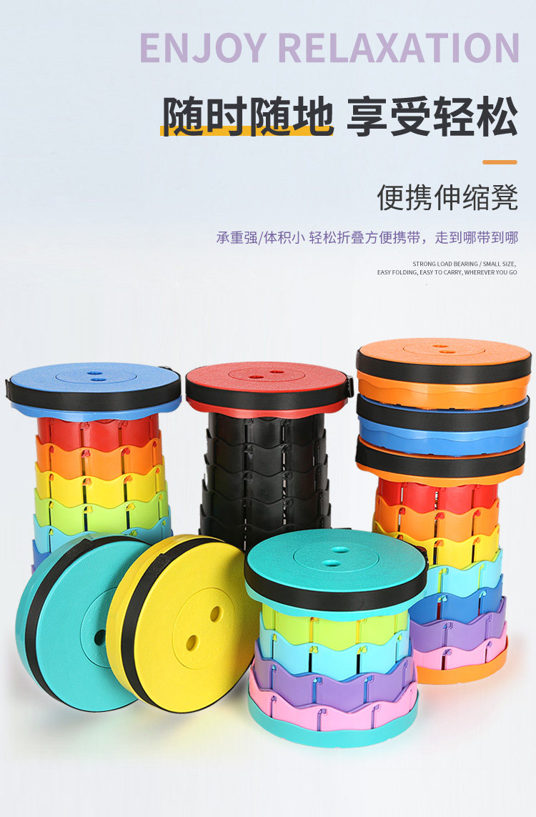 便携折叠小凳子椅子彩虹塑料伸缩可调节板凳钓鱼凳