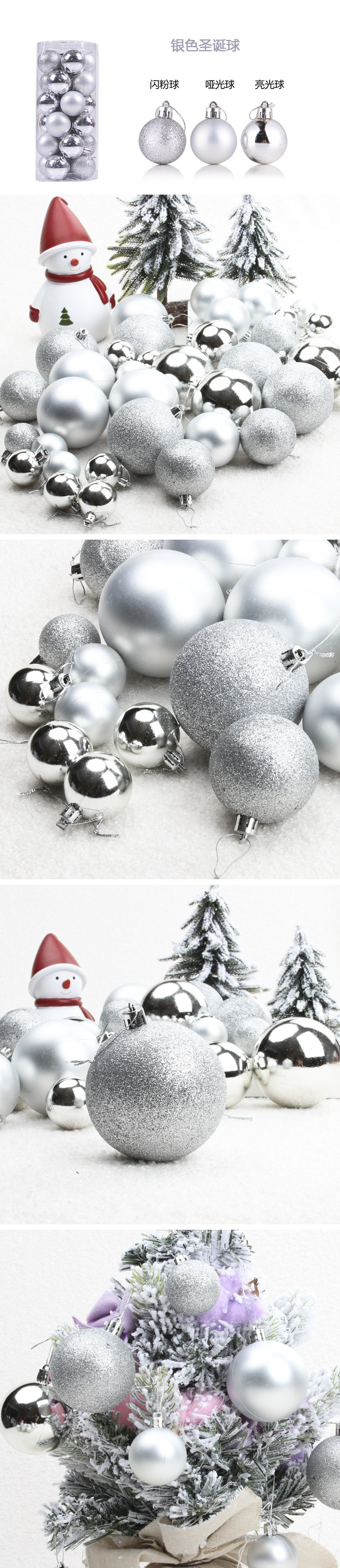 圣诞季 闪亮银色亮光球闪粉哑光圣诞球 圣诞树装饰挂球圣诞节装扮