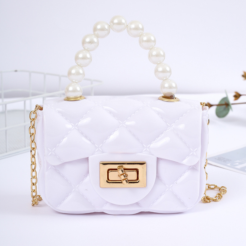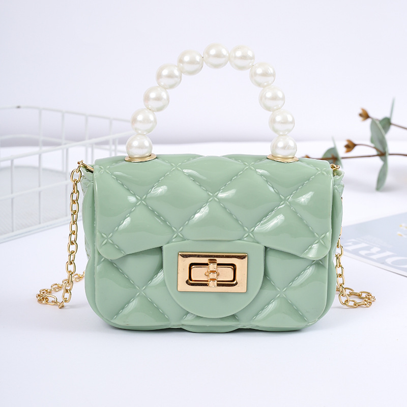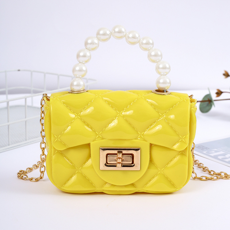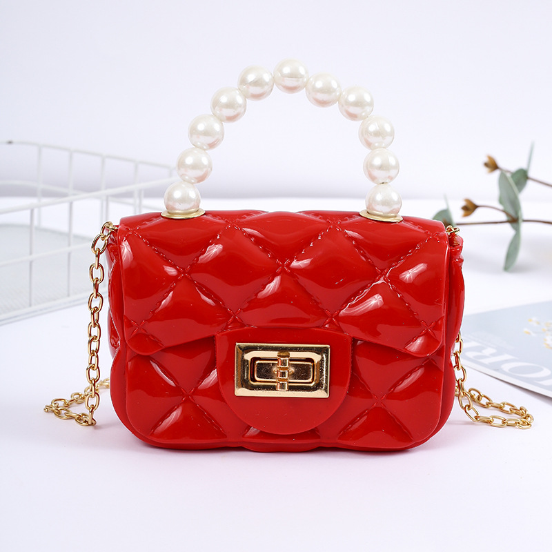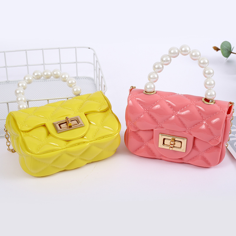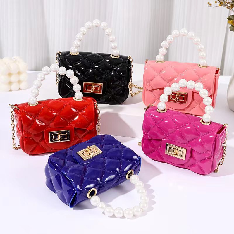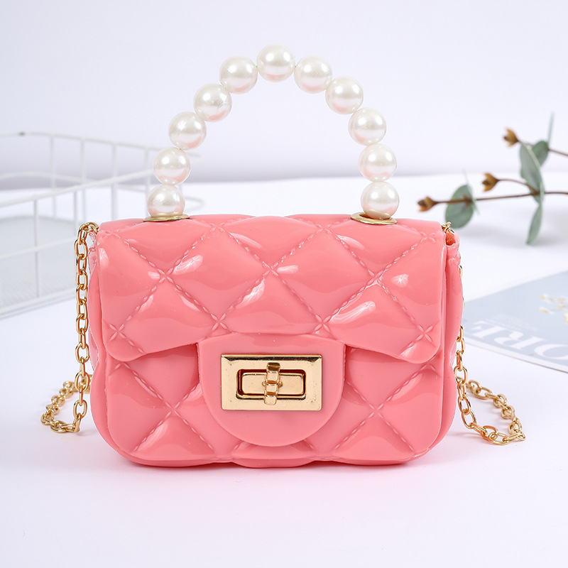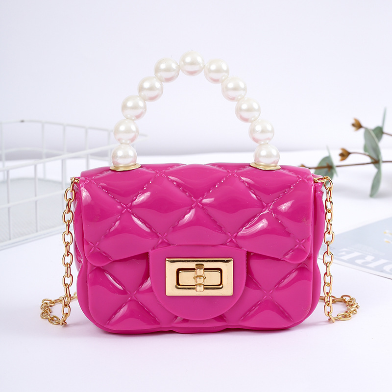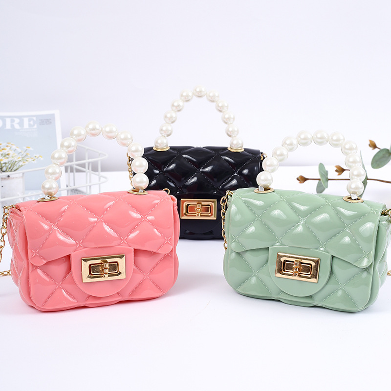 糖果色东南亚外贸单肩斜挎链条零钱小包珍珠手提包女孩菱格果冻包