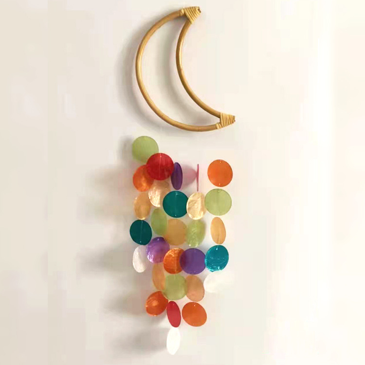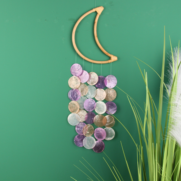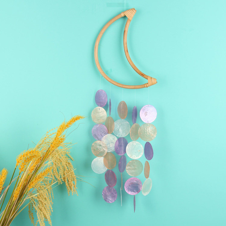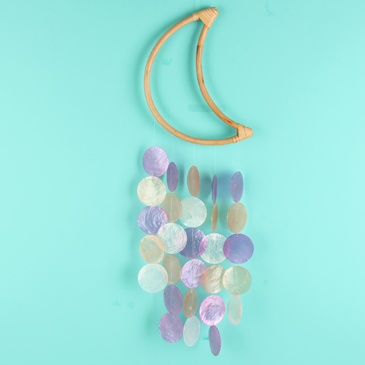 创意时尚木圈贝壳家居挂饰风铃窗台阳台装饰简约镜贝网红民宿挂件