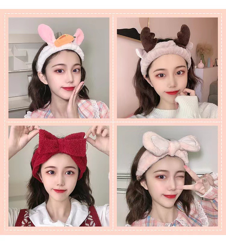 女洗脸发带发箍头饰可爱兔耳朵蝴蝶结洗漱化妆束发带头带发饰批发