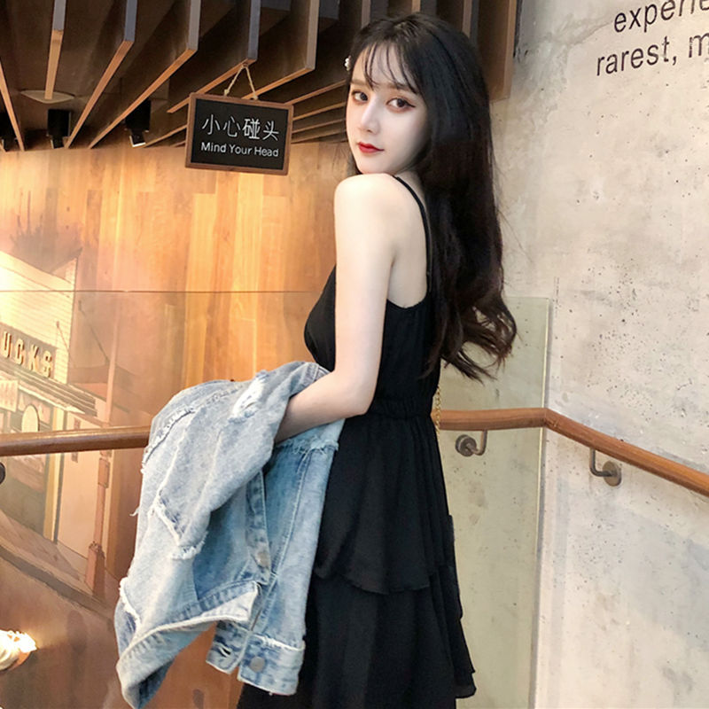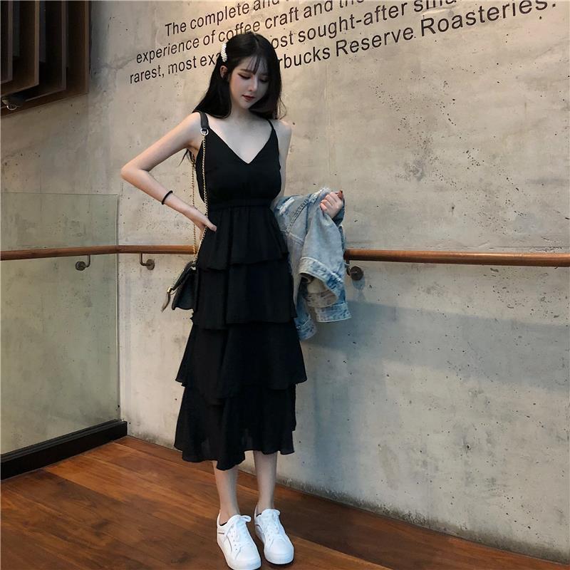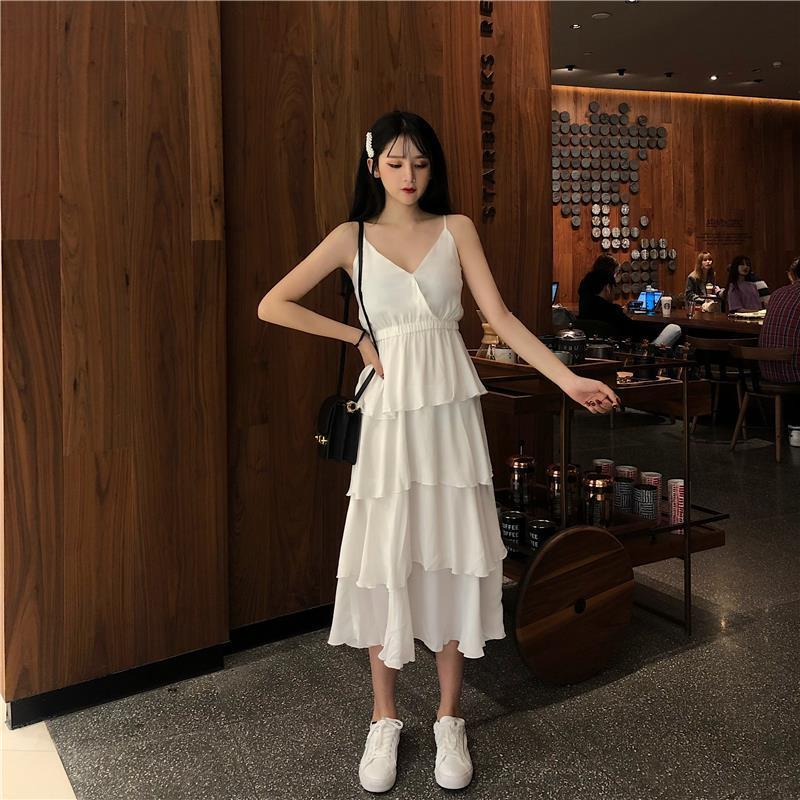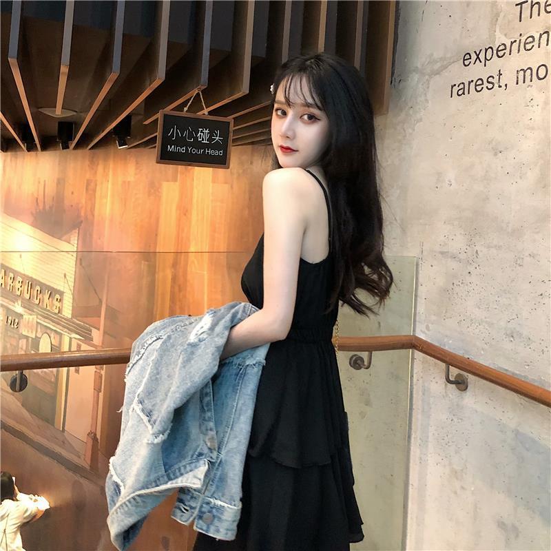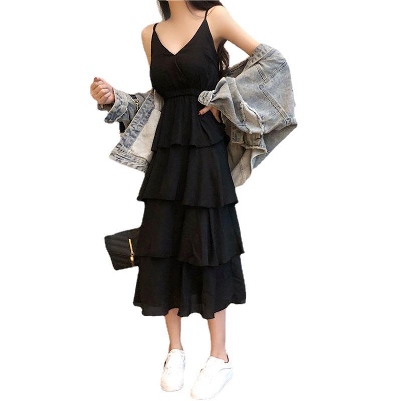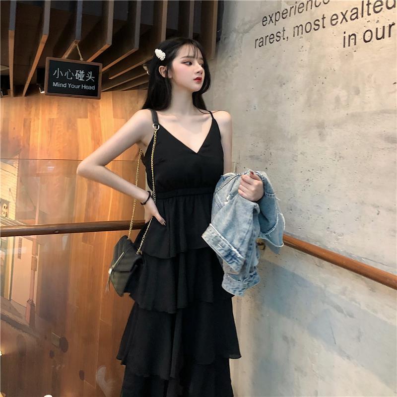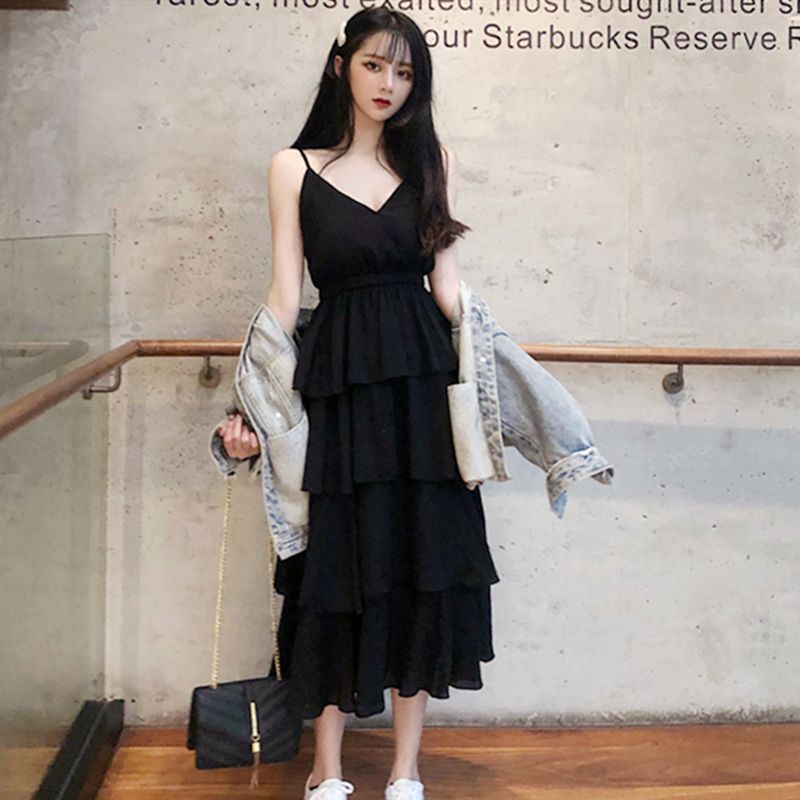 很仙的法国小众连衣裙女夏季2023新款韩版高腰中长款吊带裙蛋糕裙