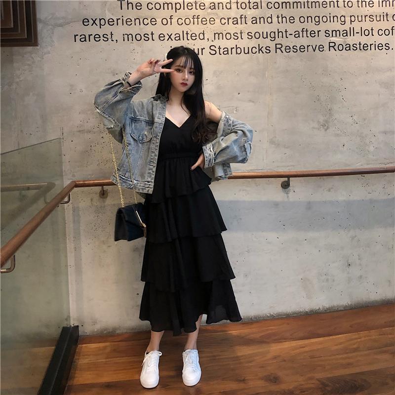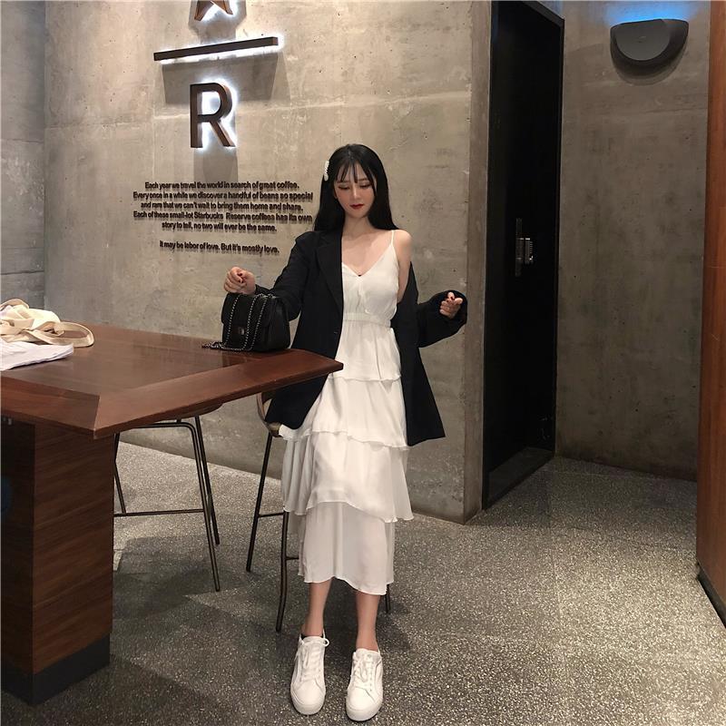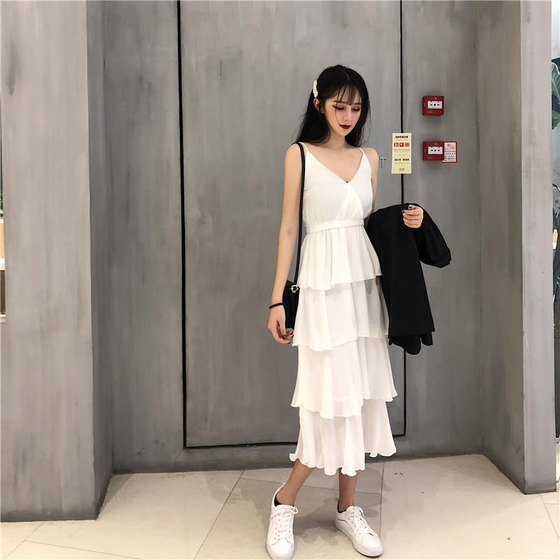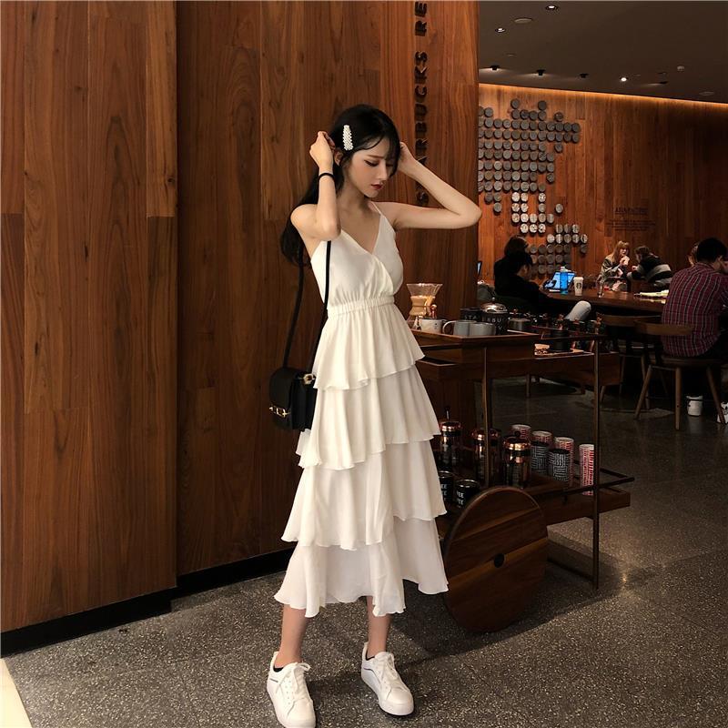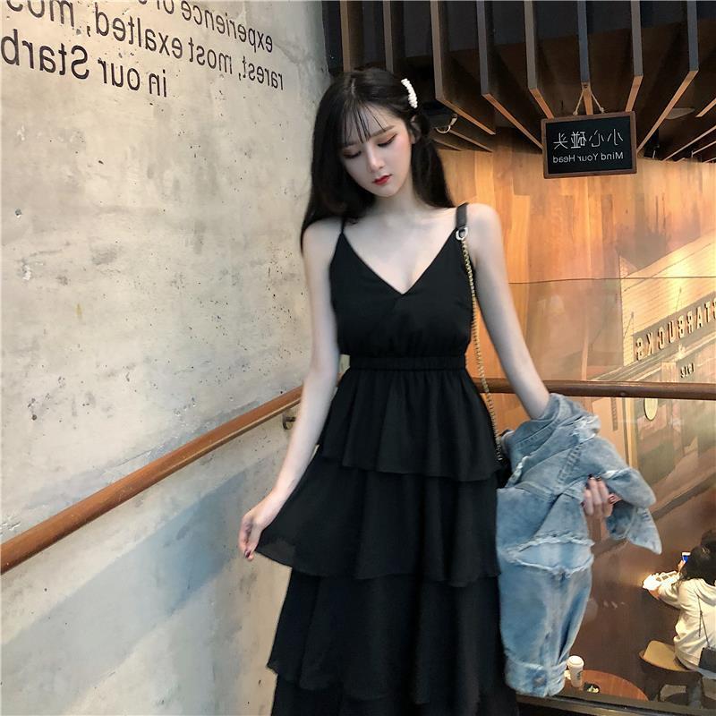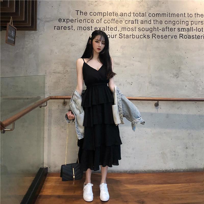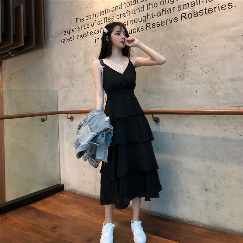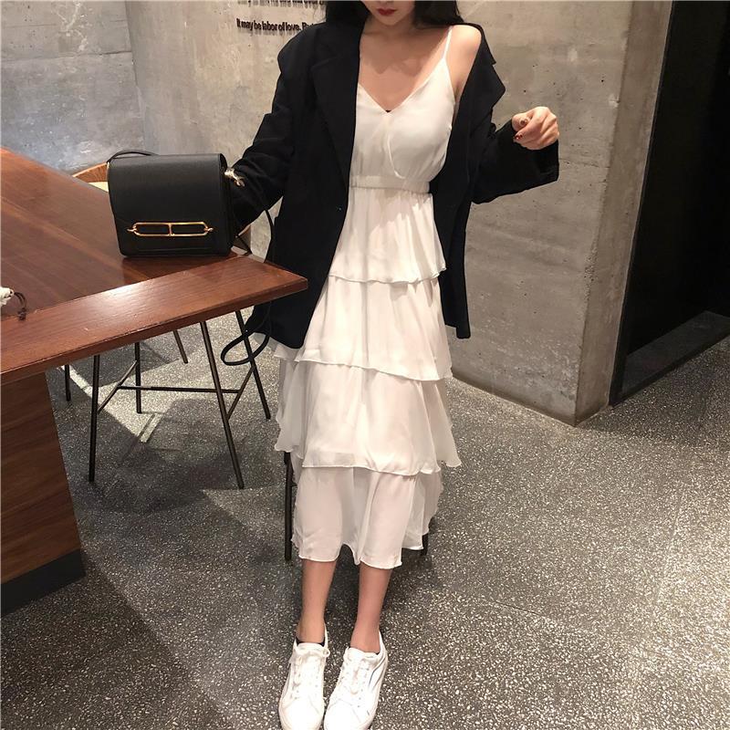 很仙的法国小众连衣裙女夏季2023新款韩版高腰中长款吊带裙蛋糕裙