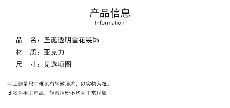圣诞雪花片圣诞树装饰亚克力透明雪花片橱窗吊顶装饰挂件亚克力
