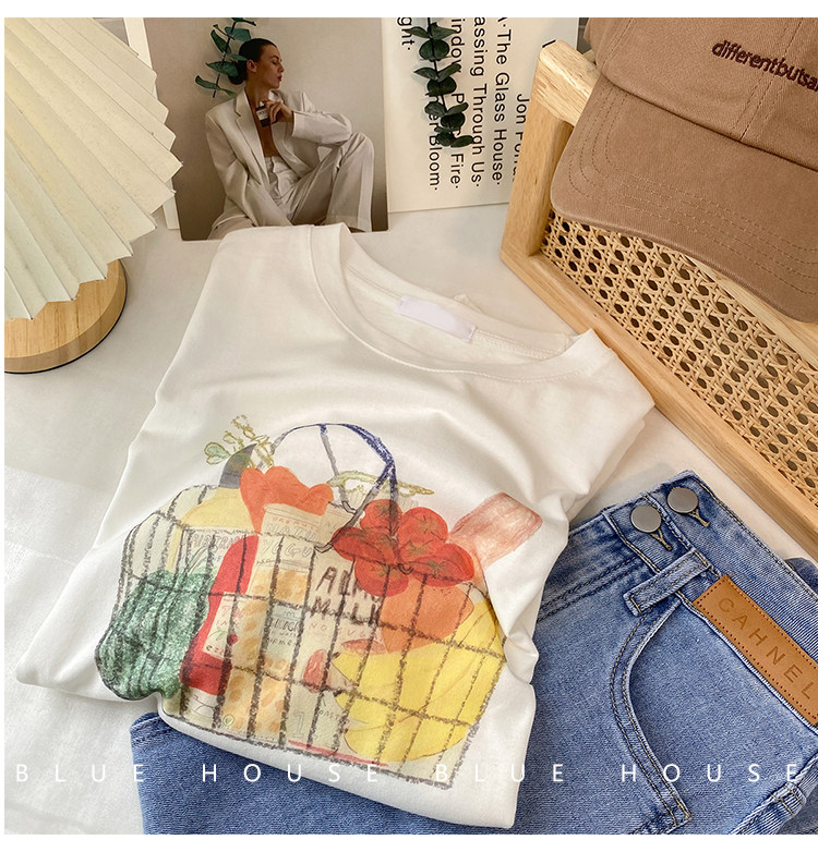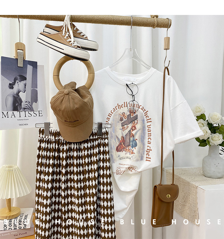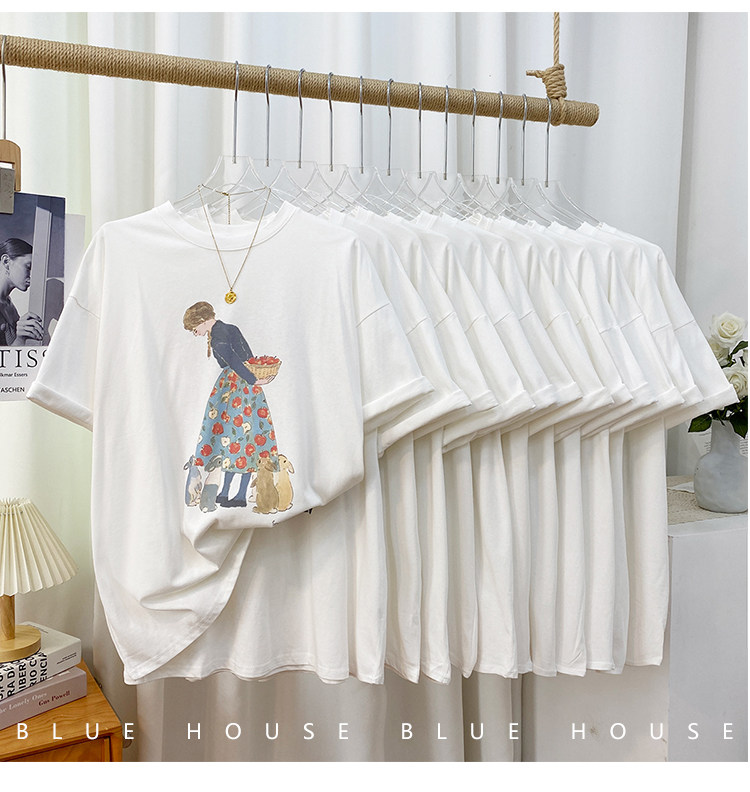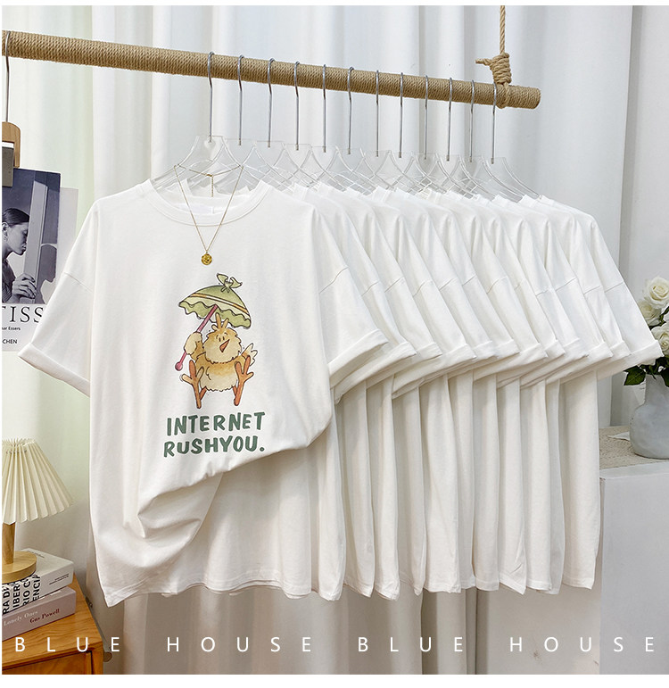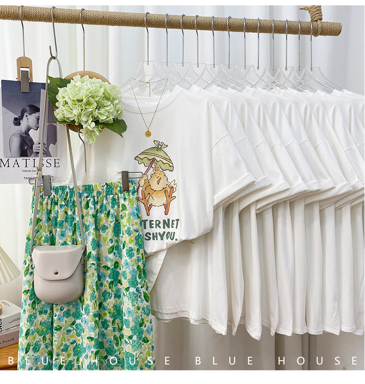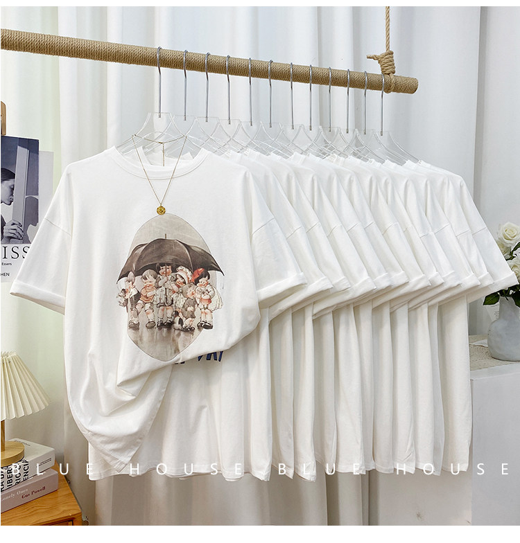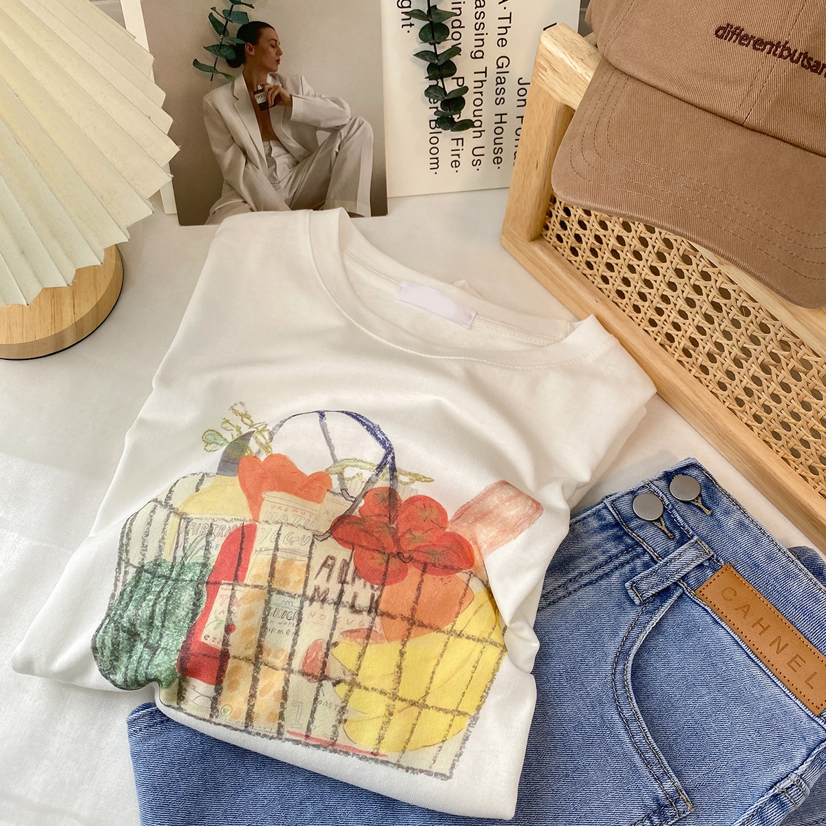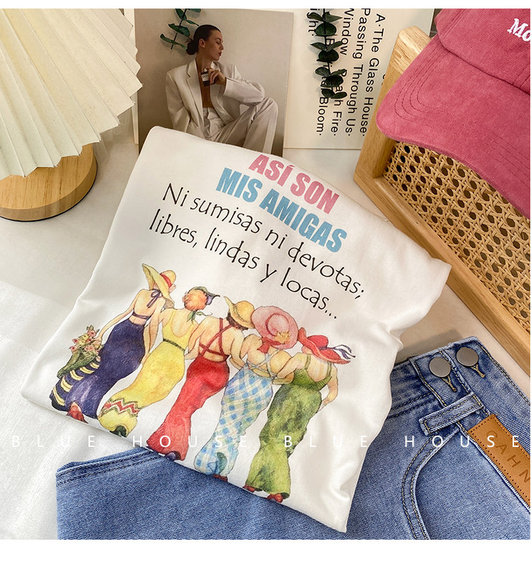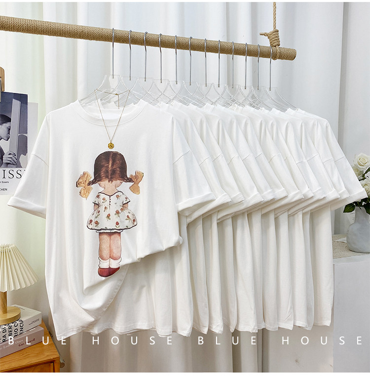 2023新款美式重磅服装印花白色短袖T恤打底衫女夏季宽松大版衣服
