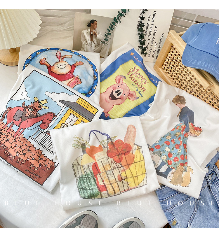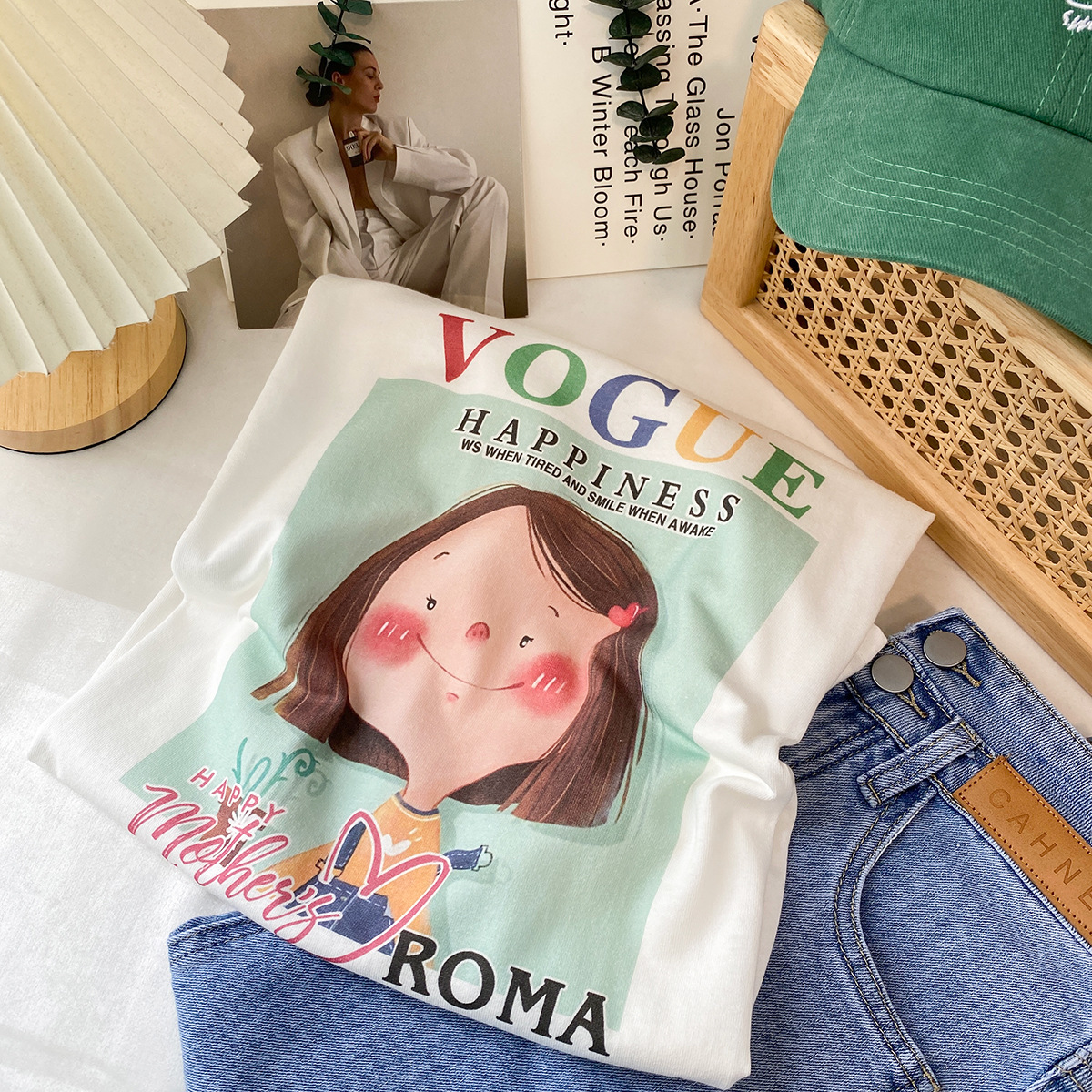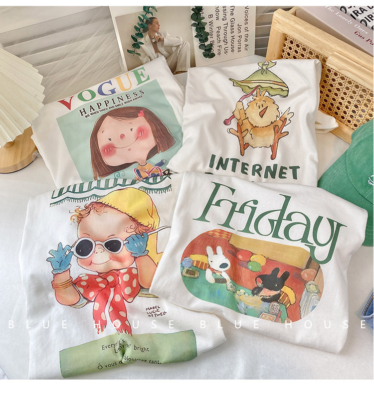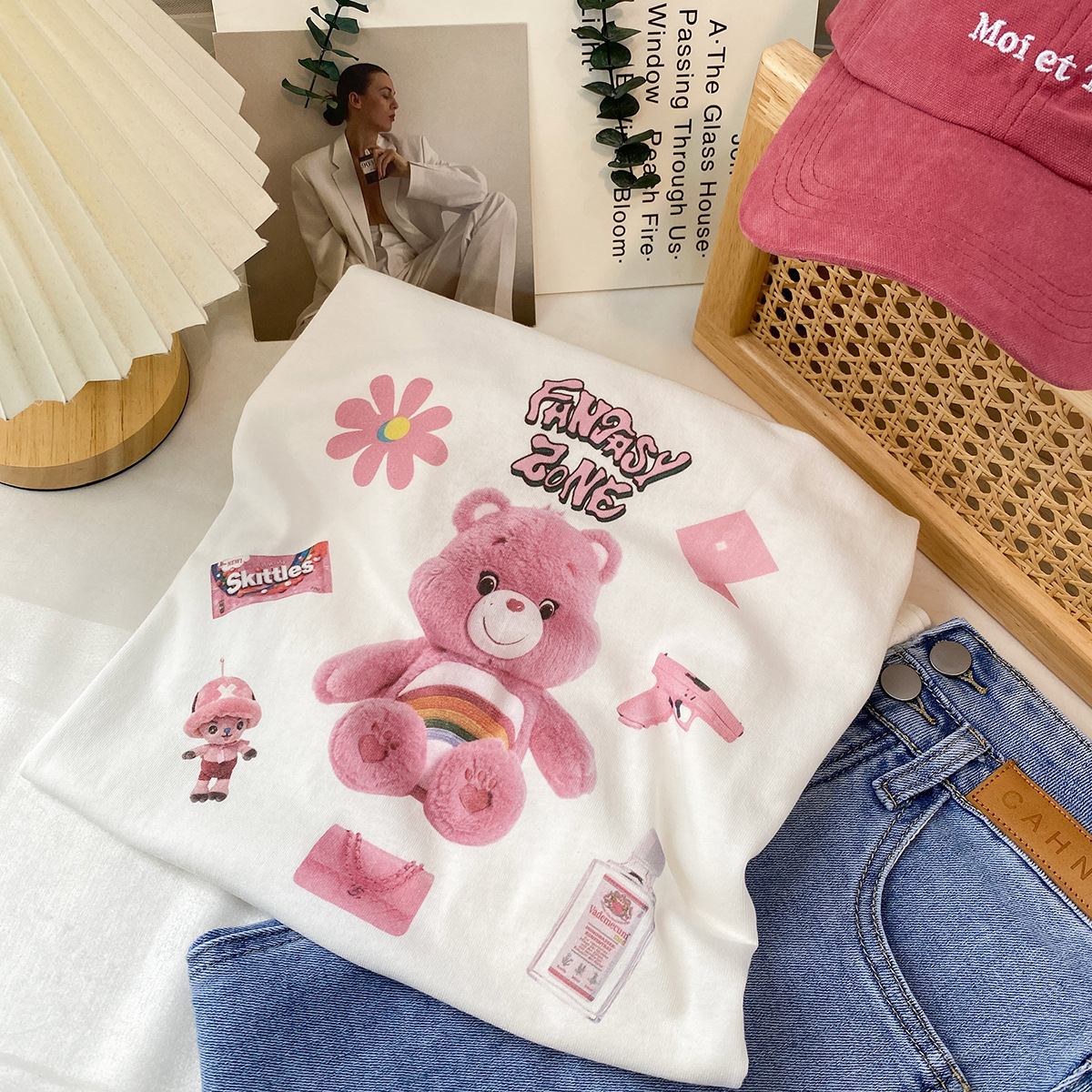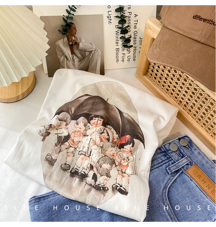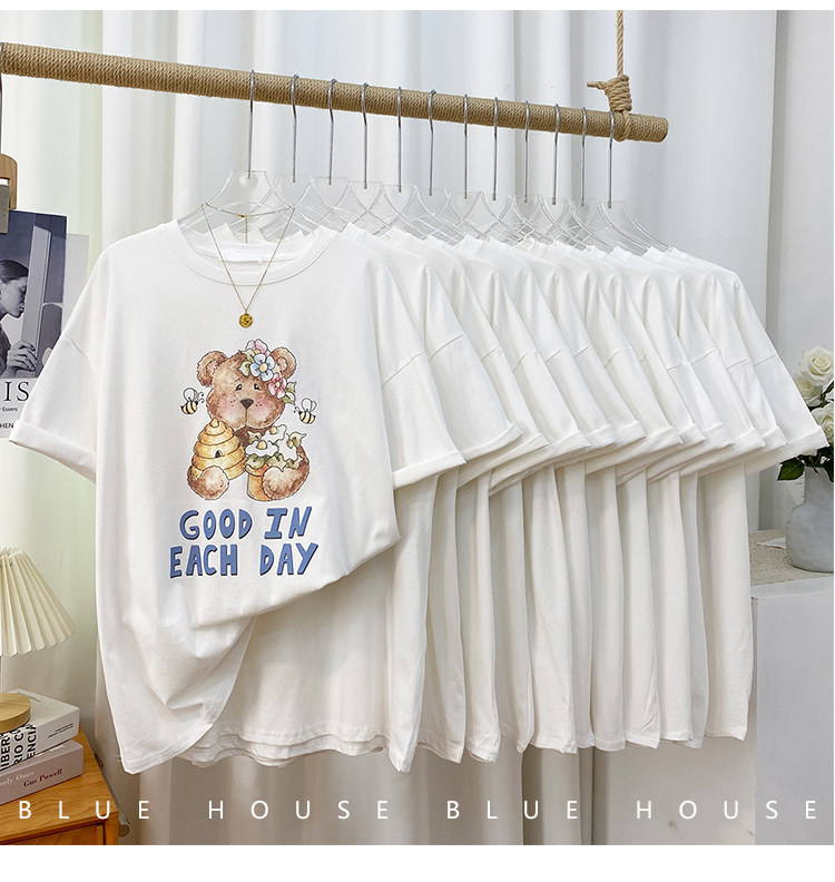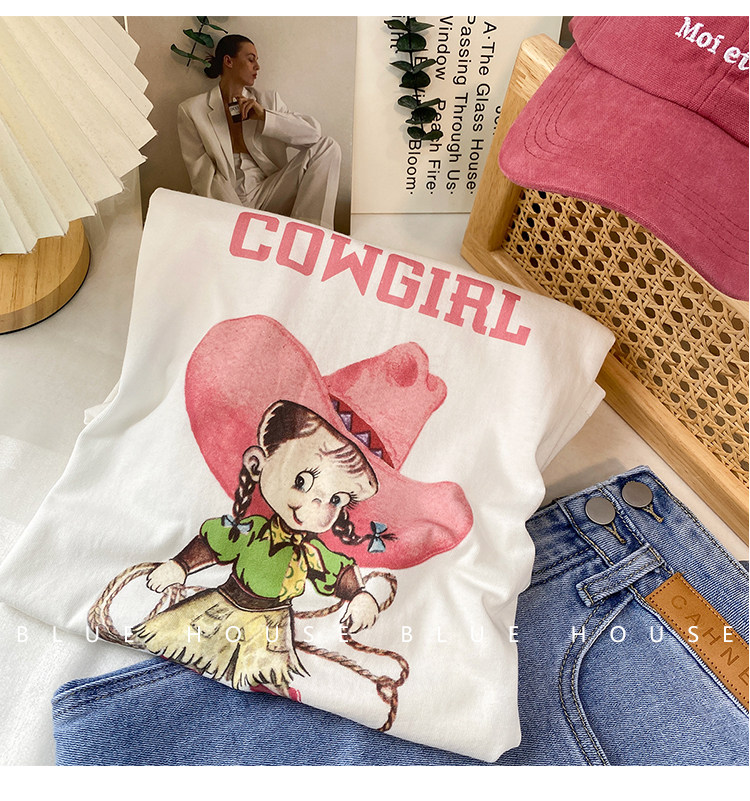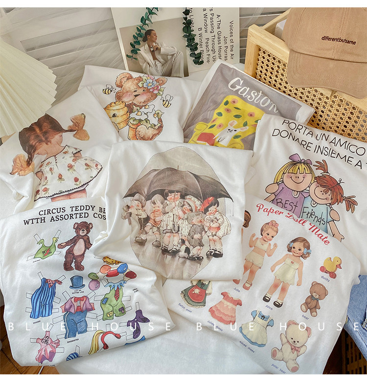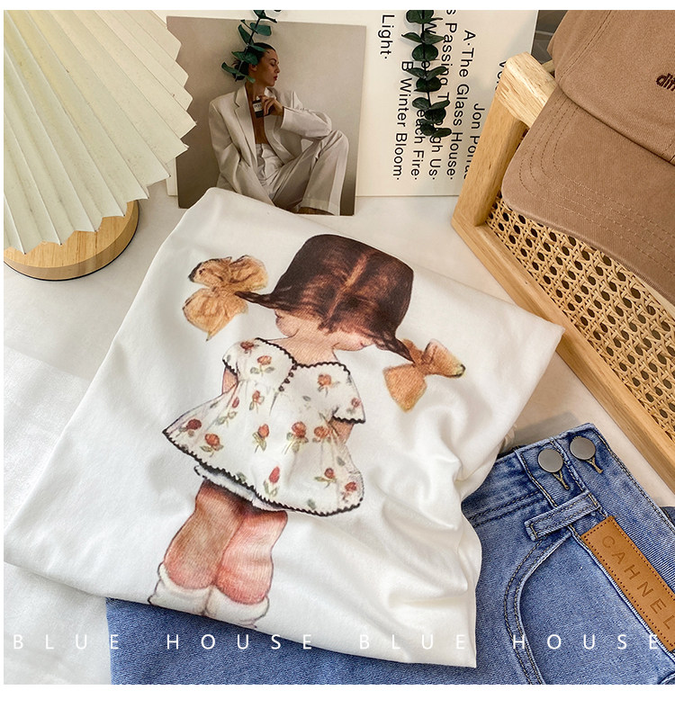 2023新款美式重磅服装印花白色短袖T恤打底衫女夏季宽松大版衣服