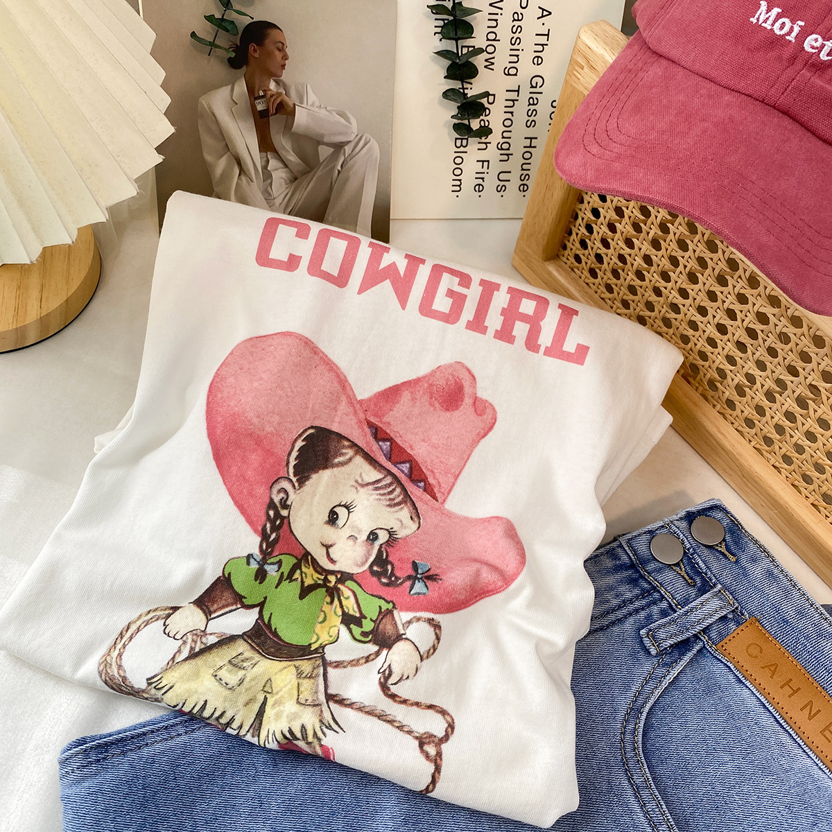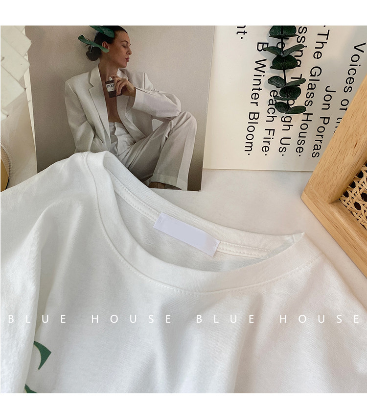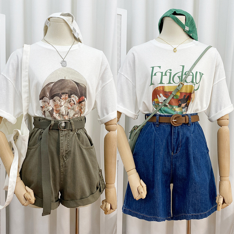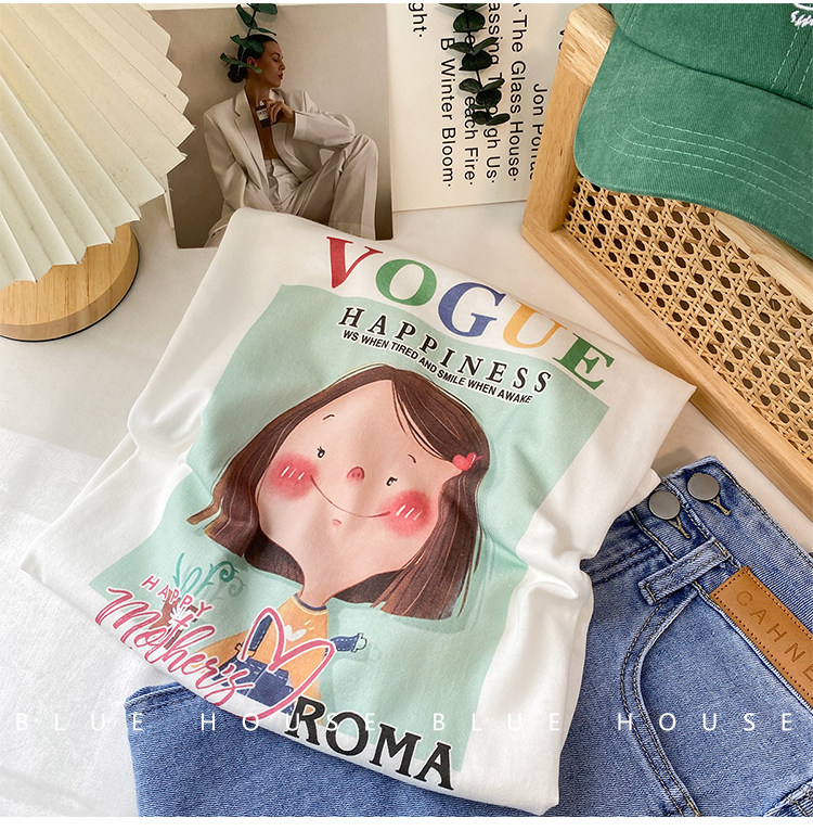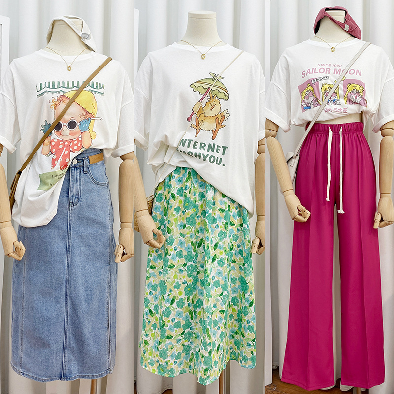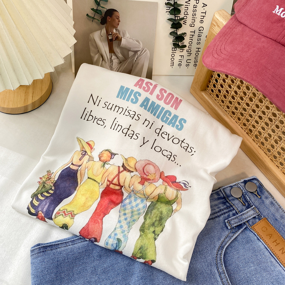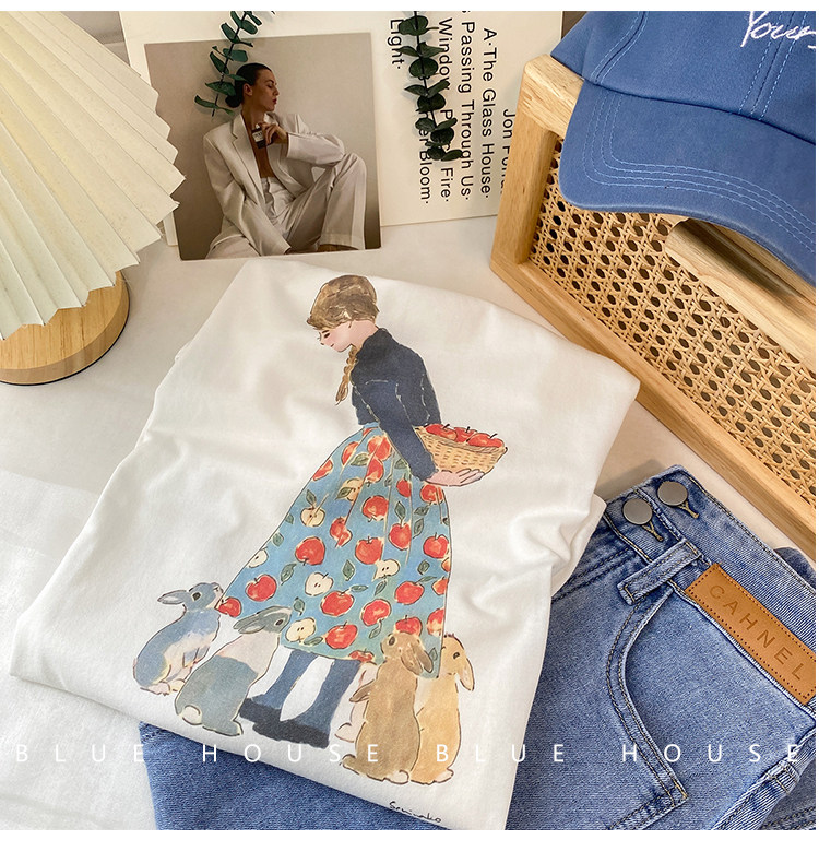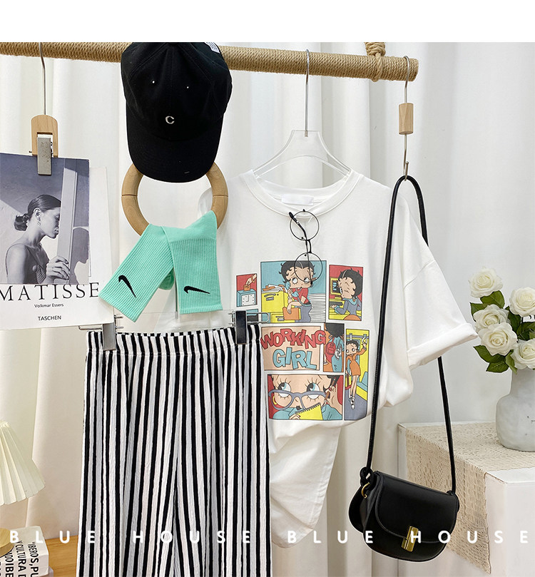 2023新款美式重磅服装印花白色短袖T恤打底衫女夏季宽松大版衣服