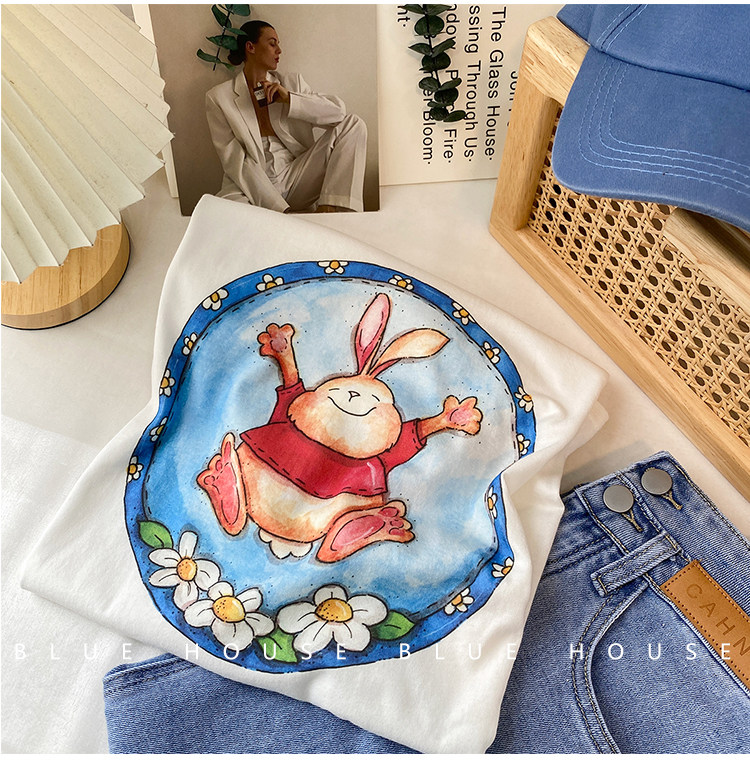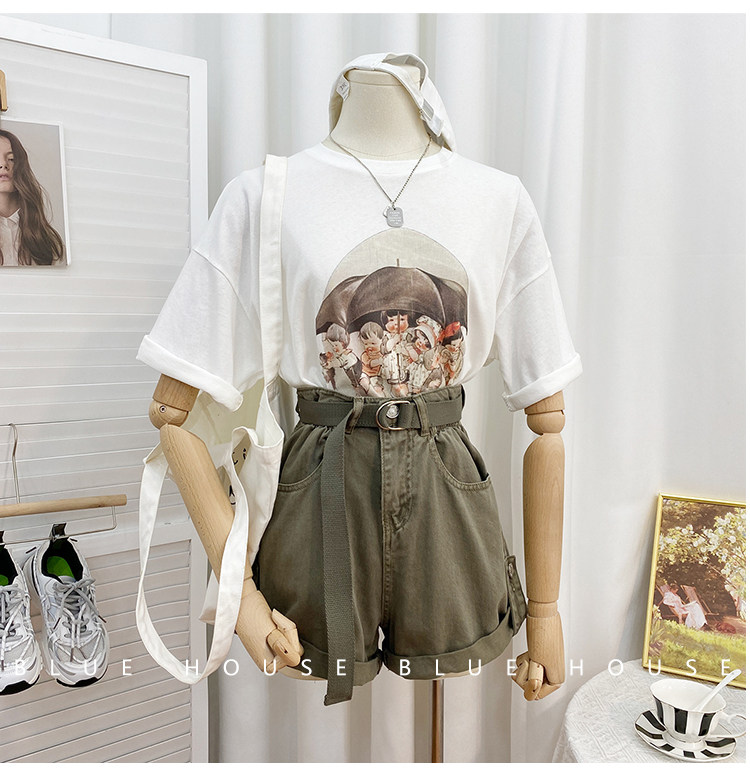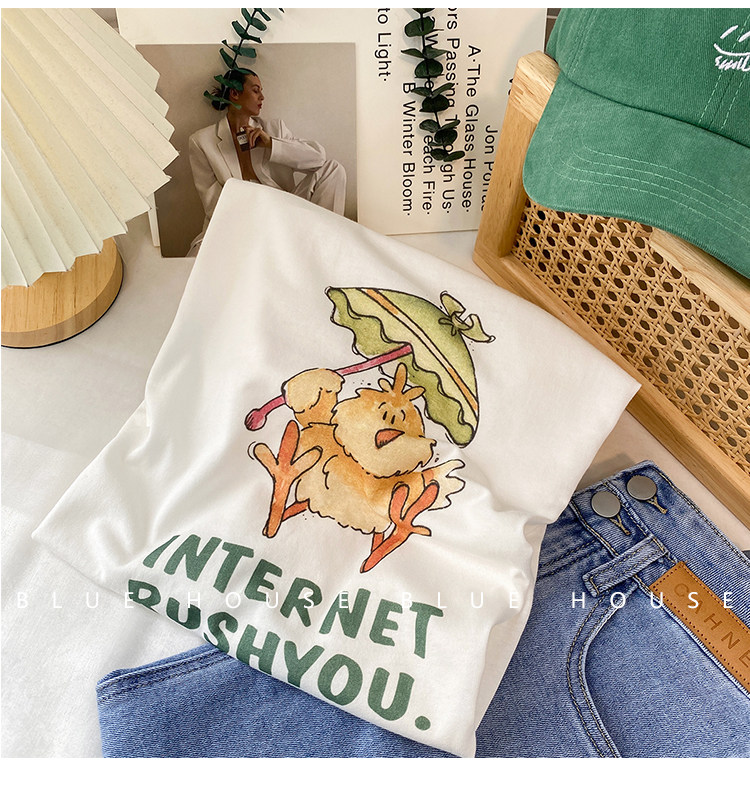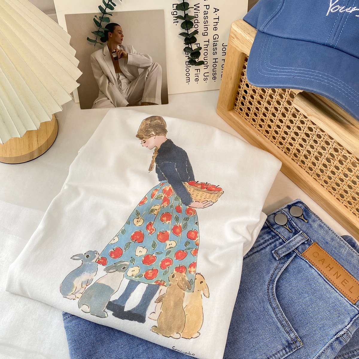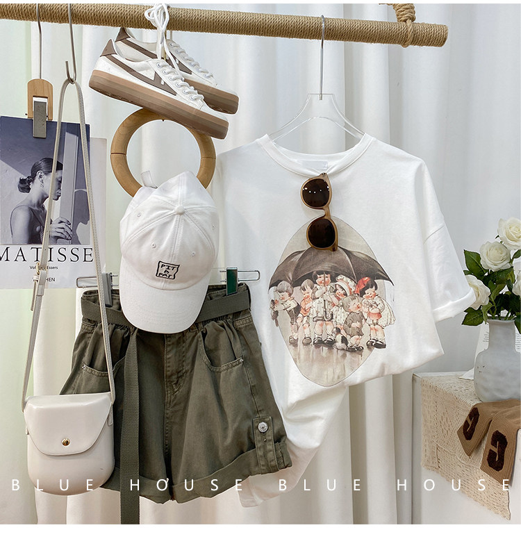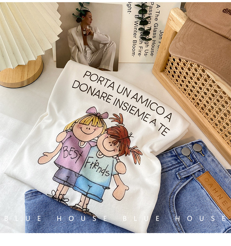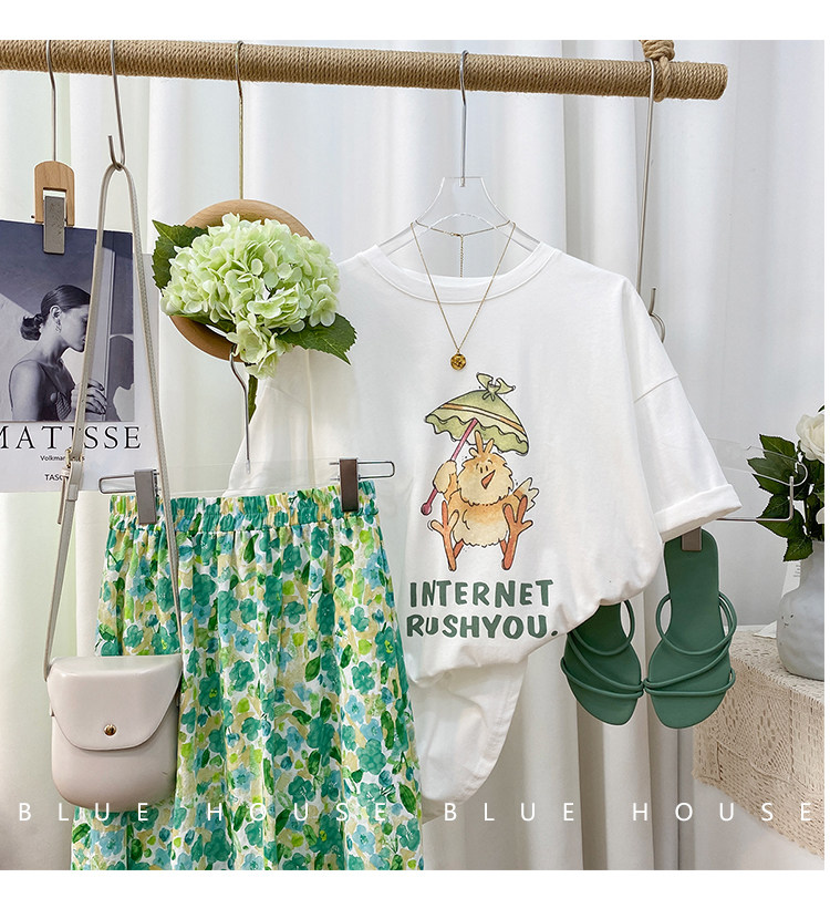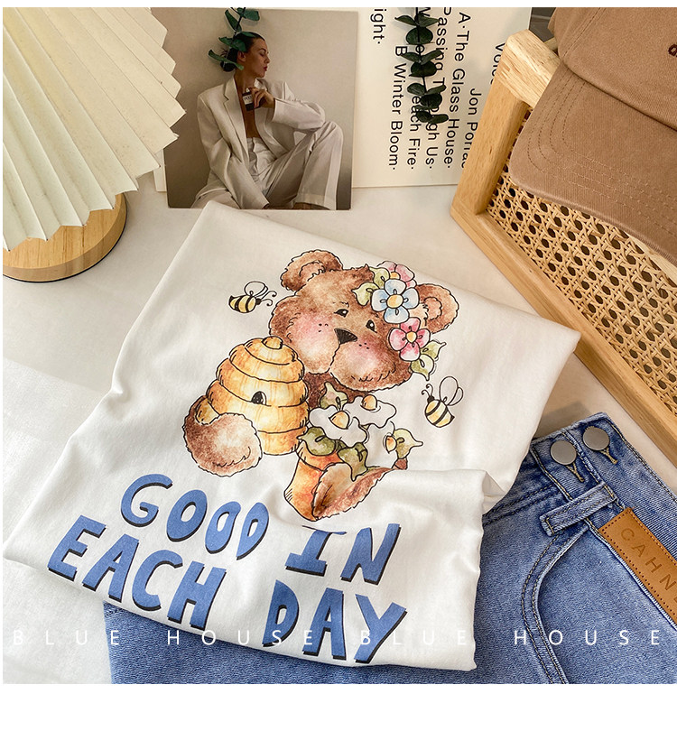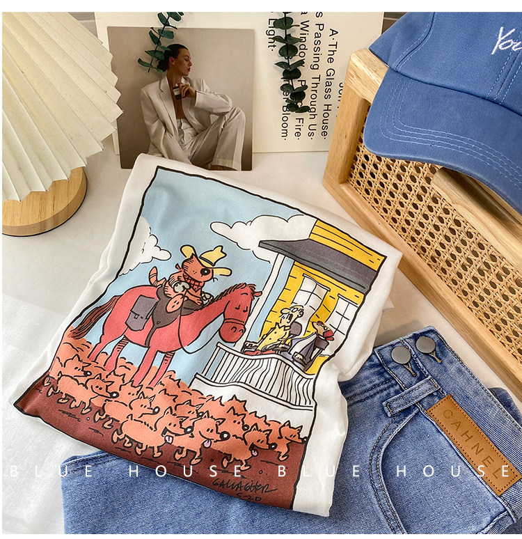 2023新款美式重磅服装印花白色短袖T恤打底衫女夏季宽松大版衣服