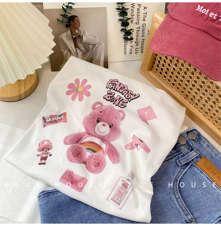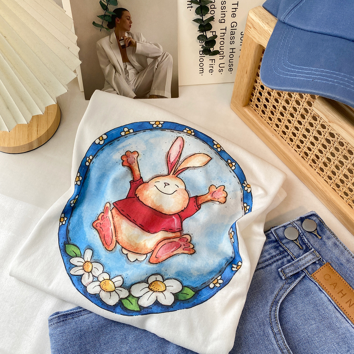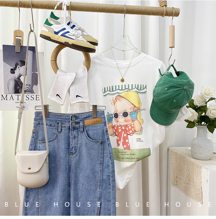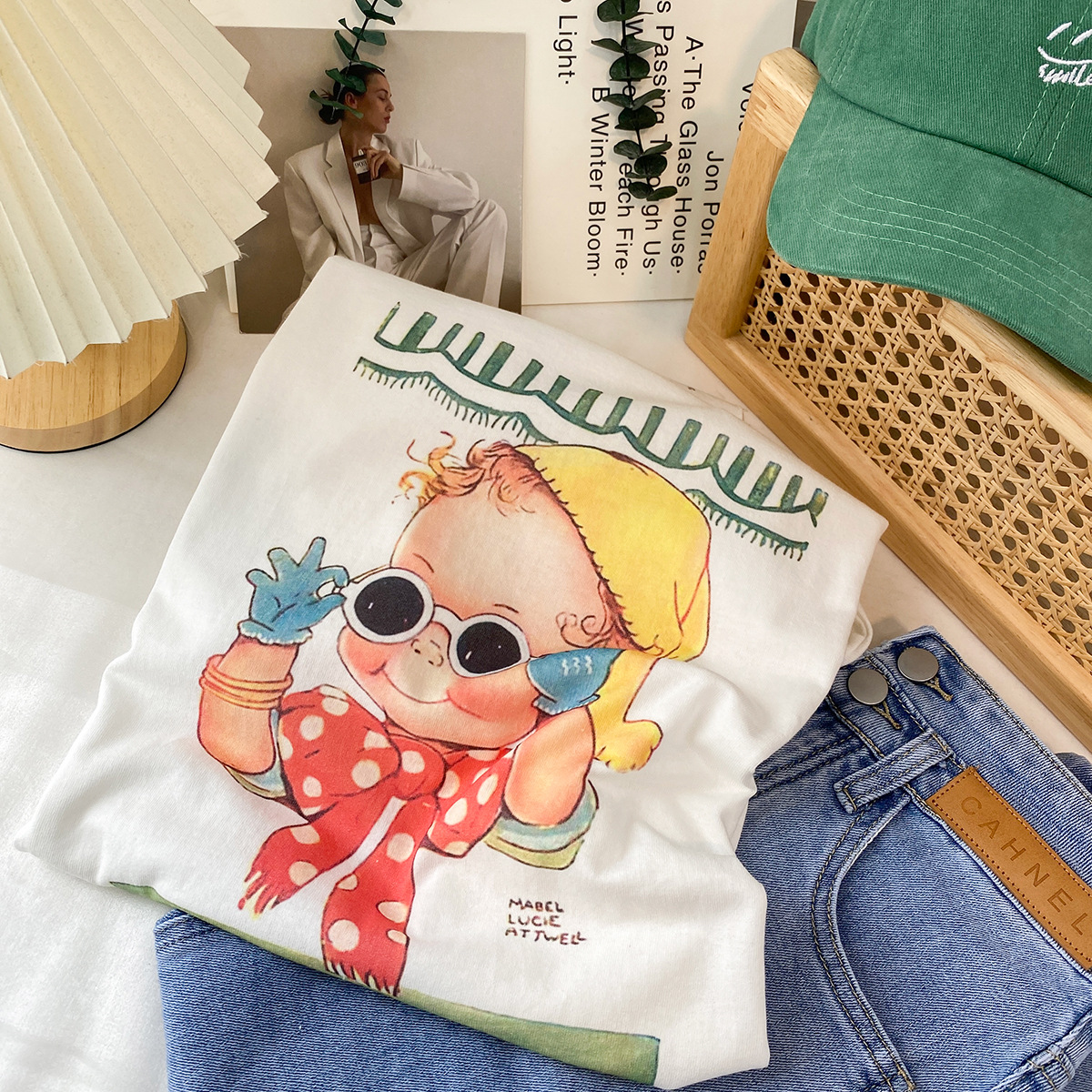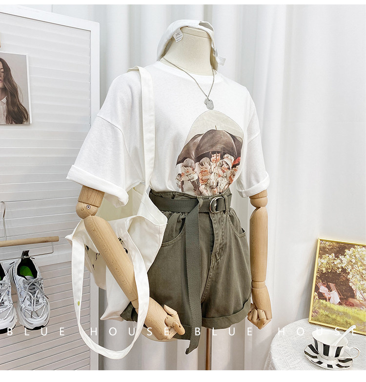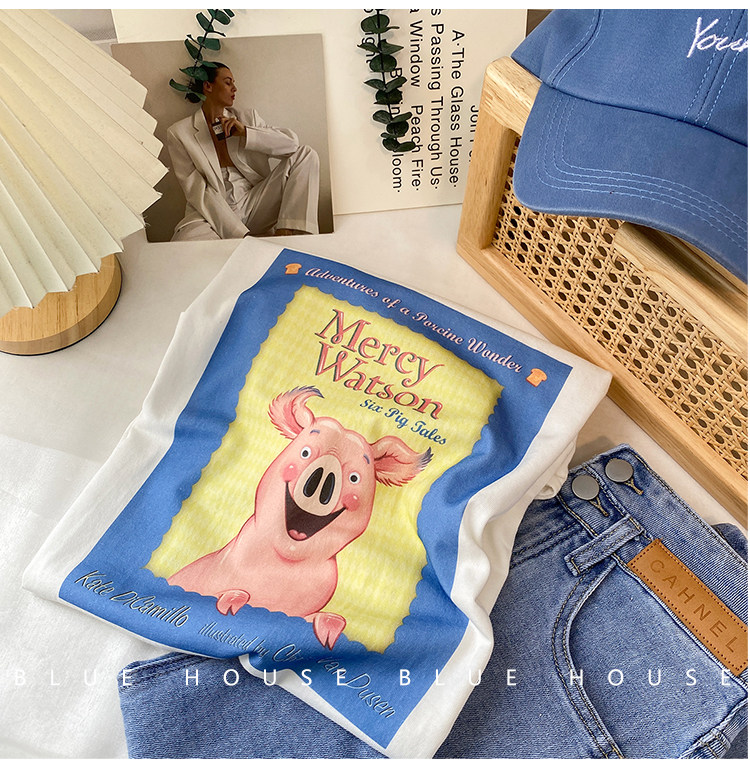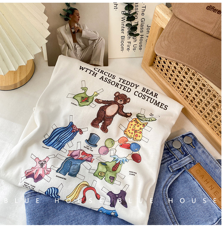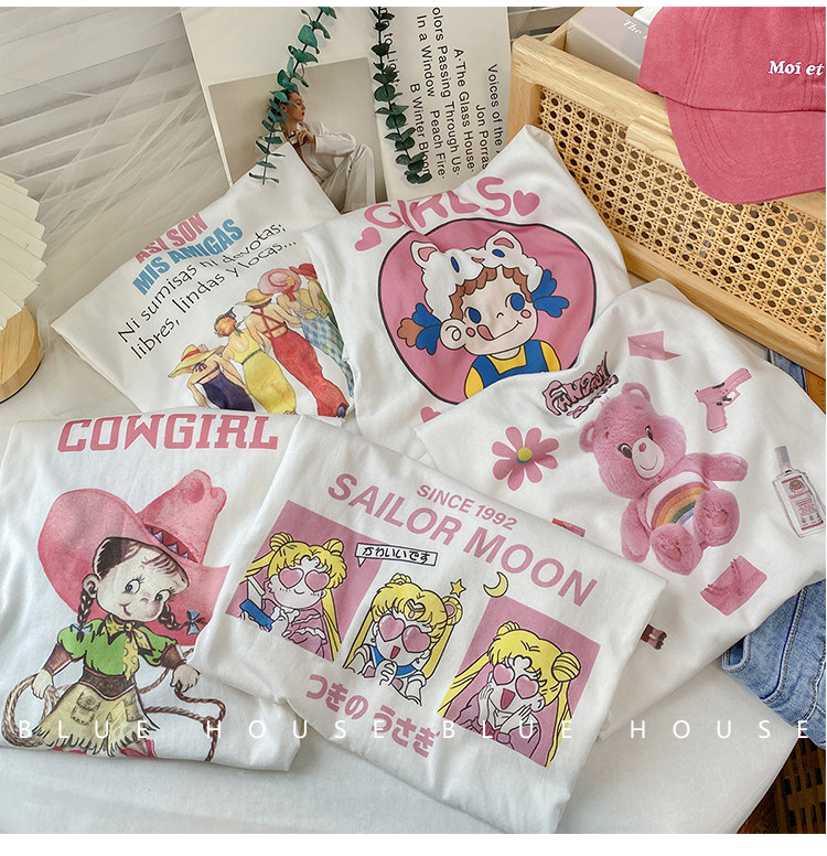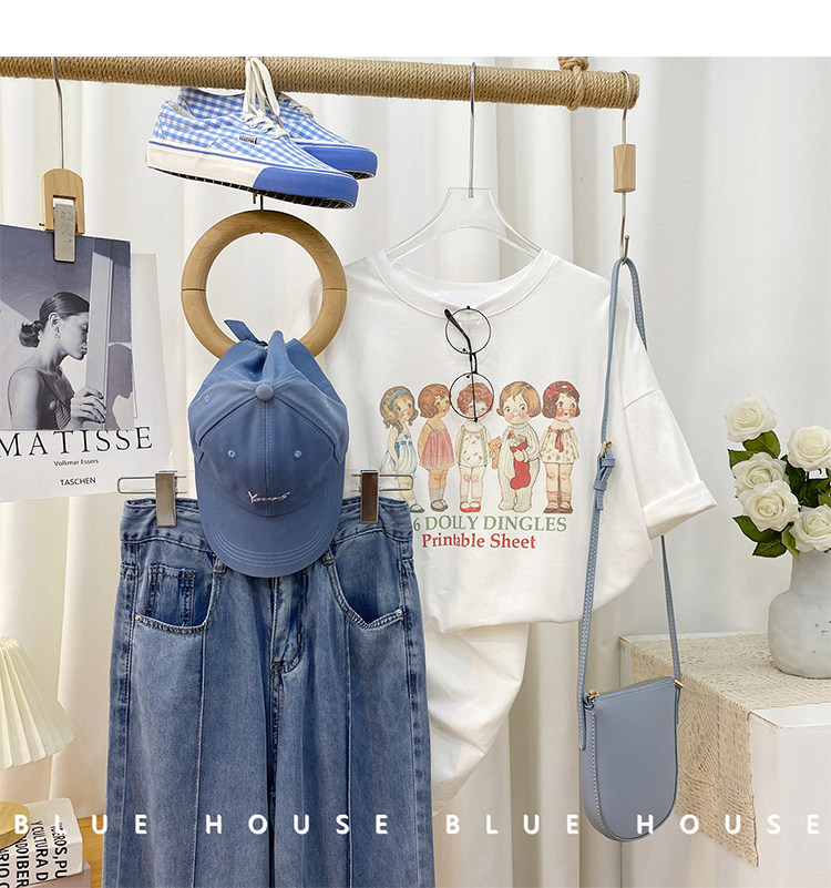 2023新款美式重磅服装印花白色短袖T恤打底衫女夏季宽松大版衣服
