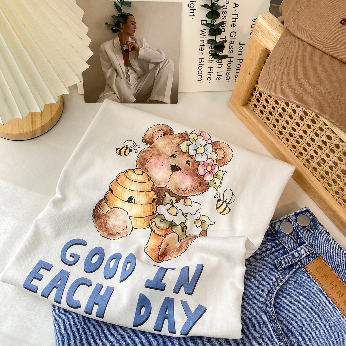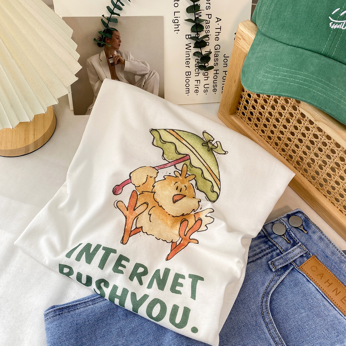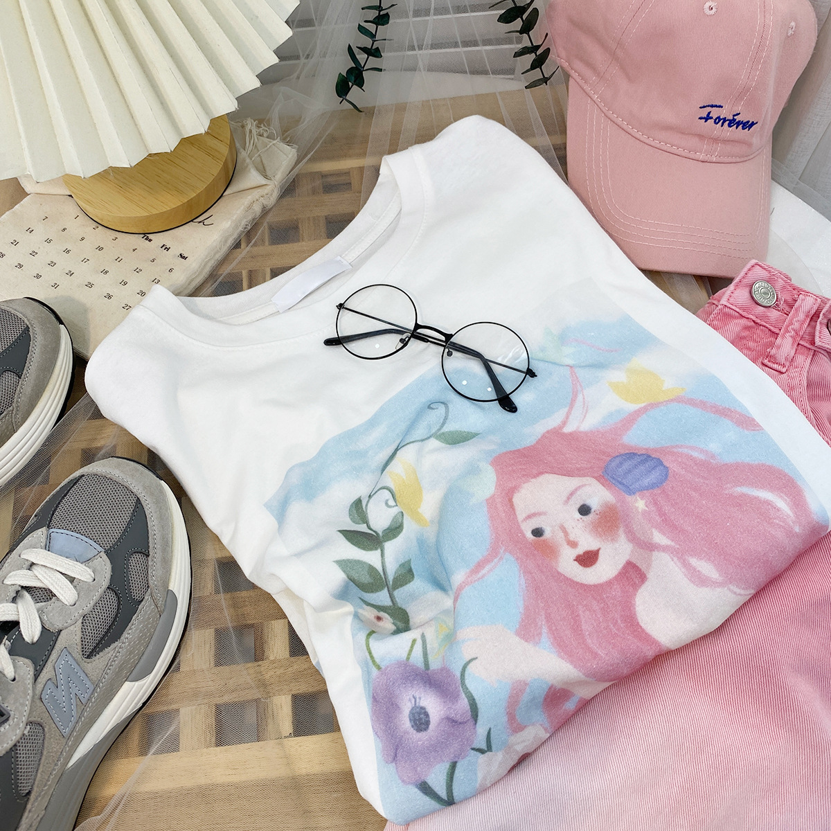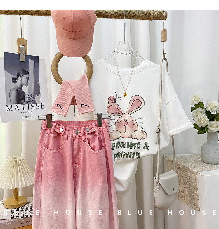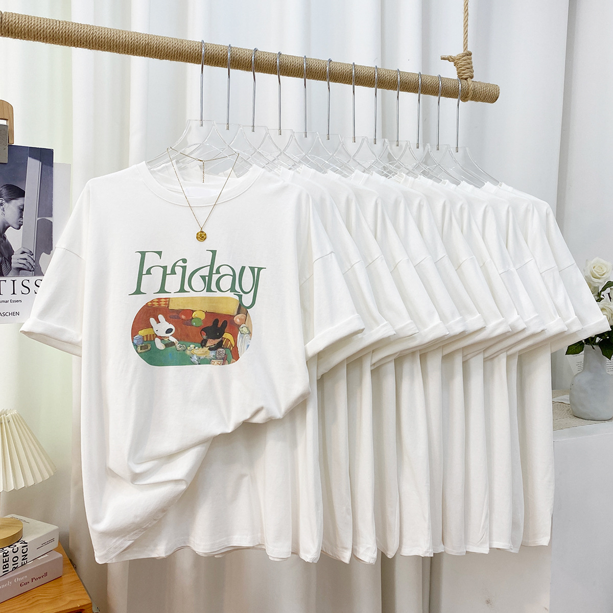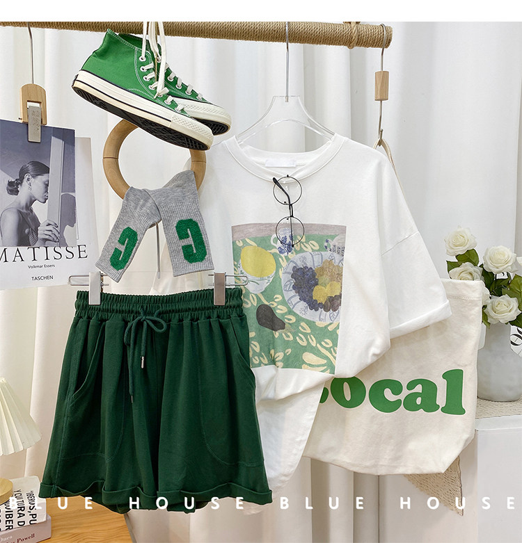 2023新款美式重磅服装印花白色短袖T恤打底衫女夏季宽松大版衣服