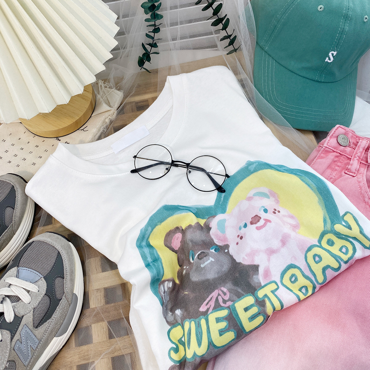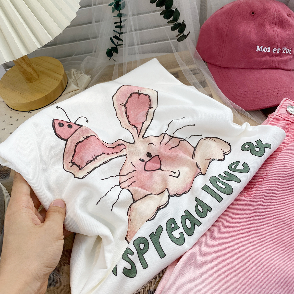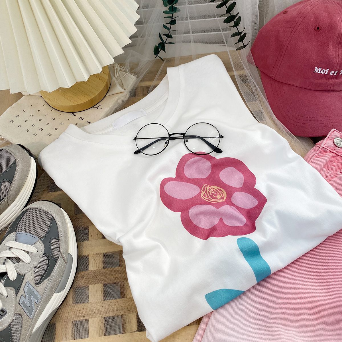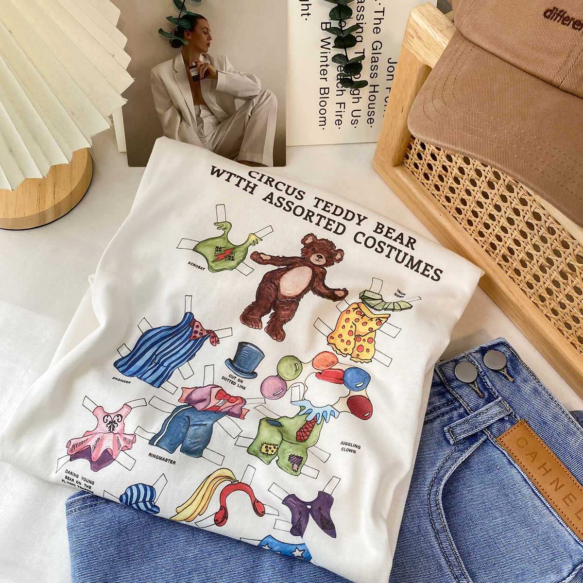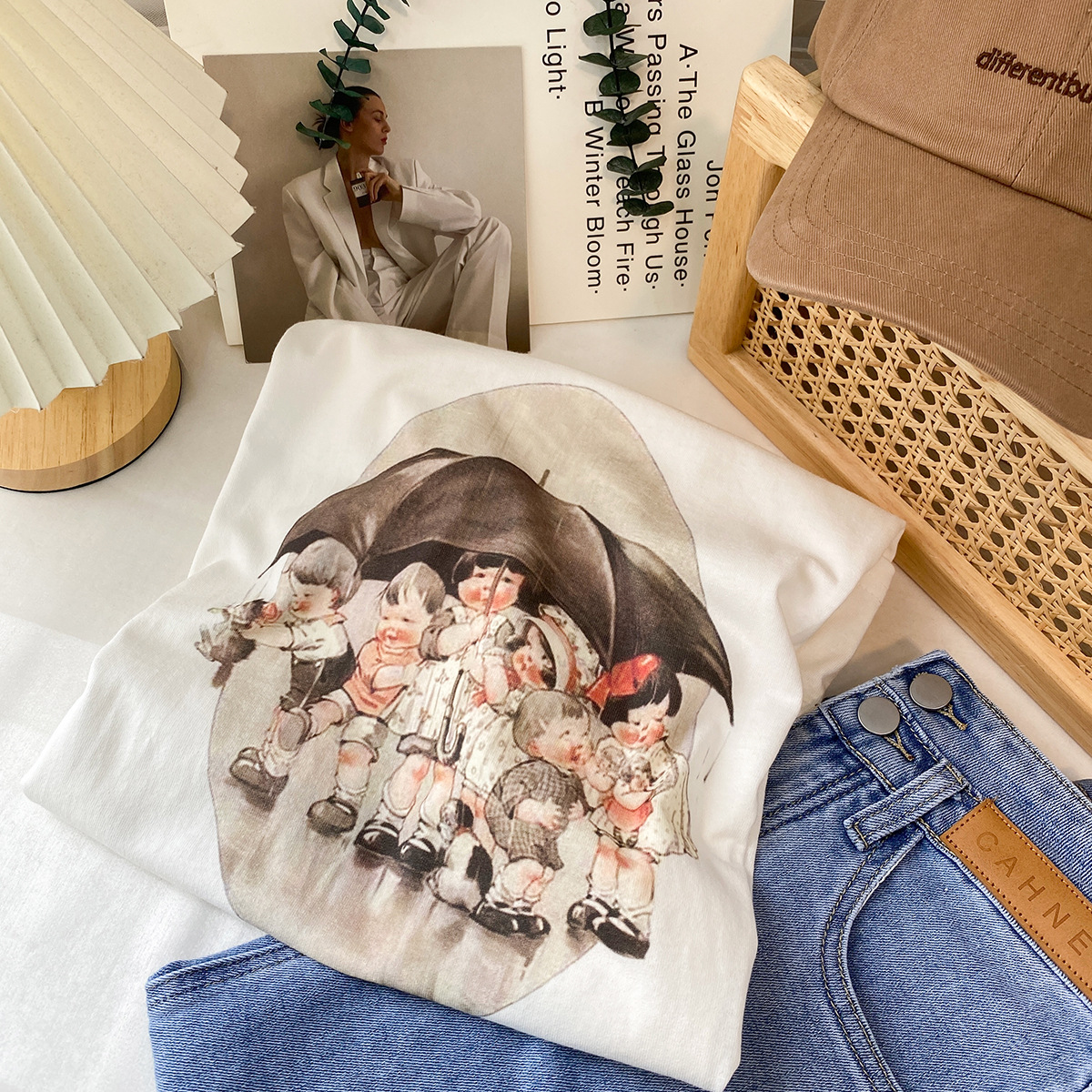 2023新款美式重磅服装印花白色短袖T恤打底衫女夏季宽松大版衣服