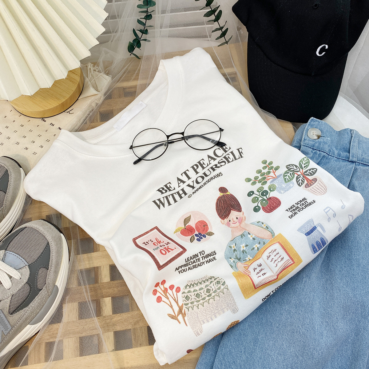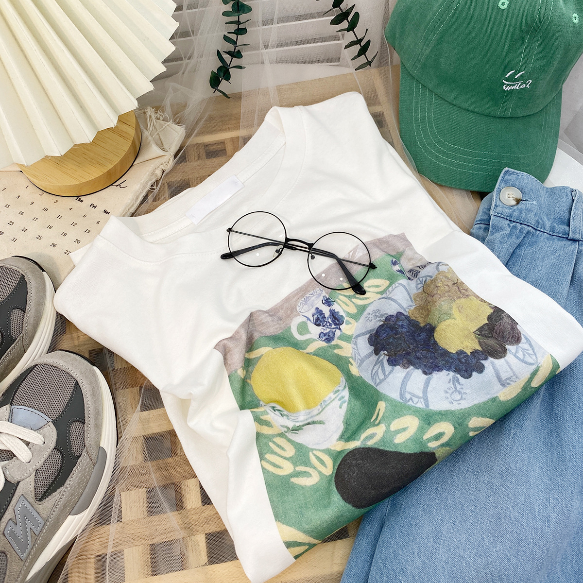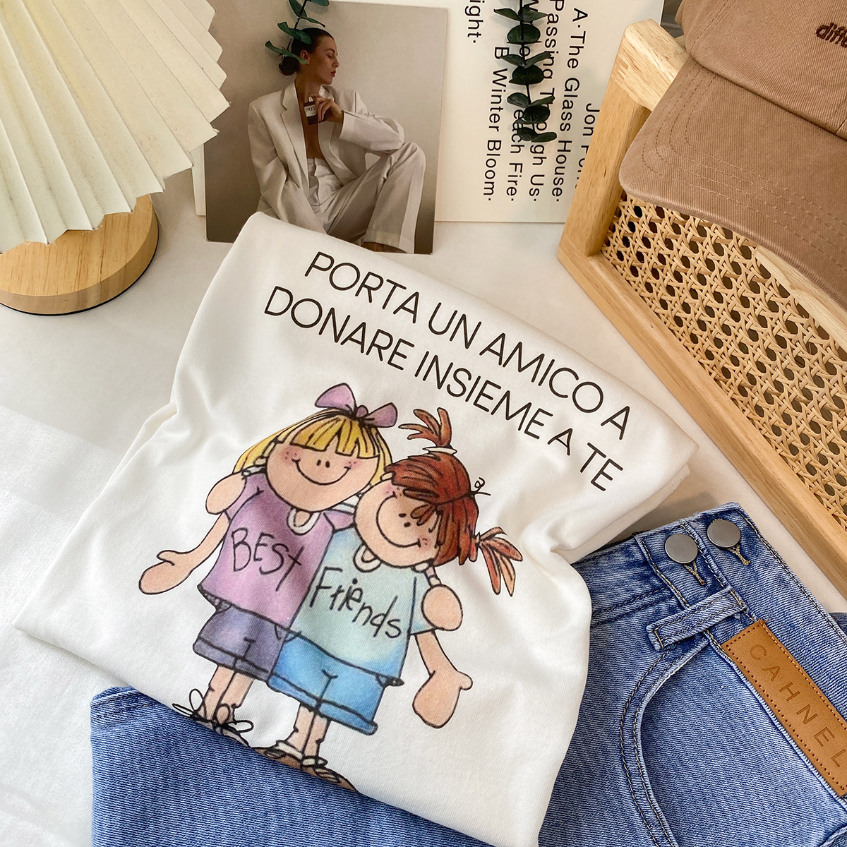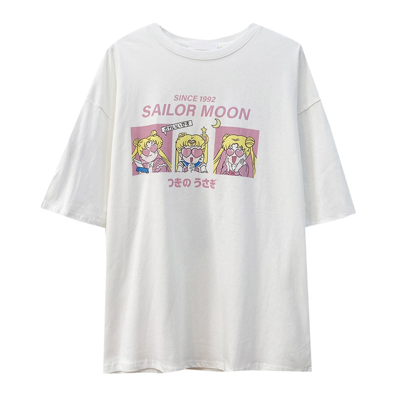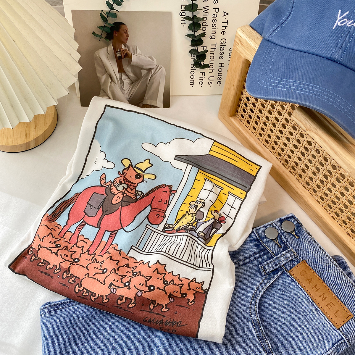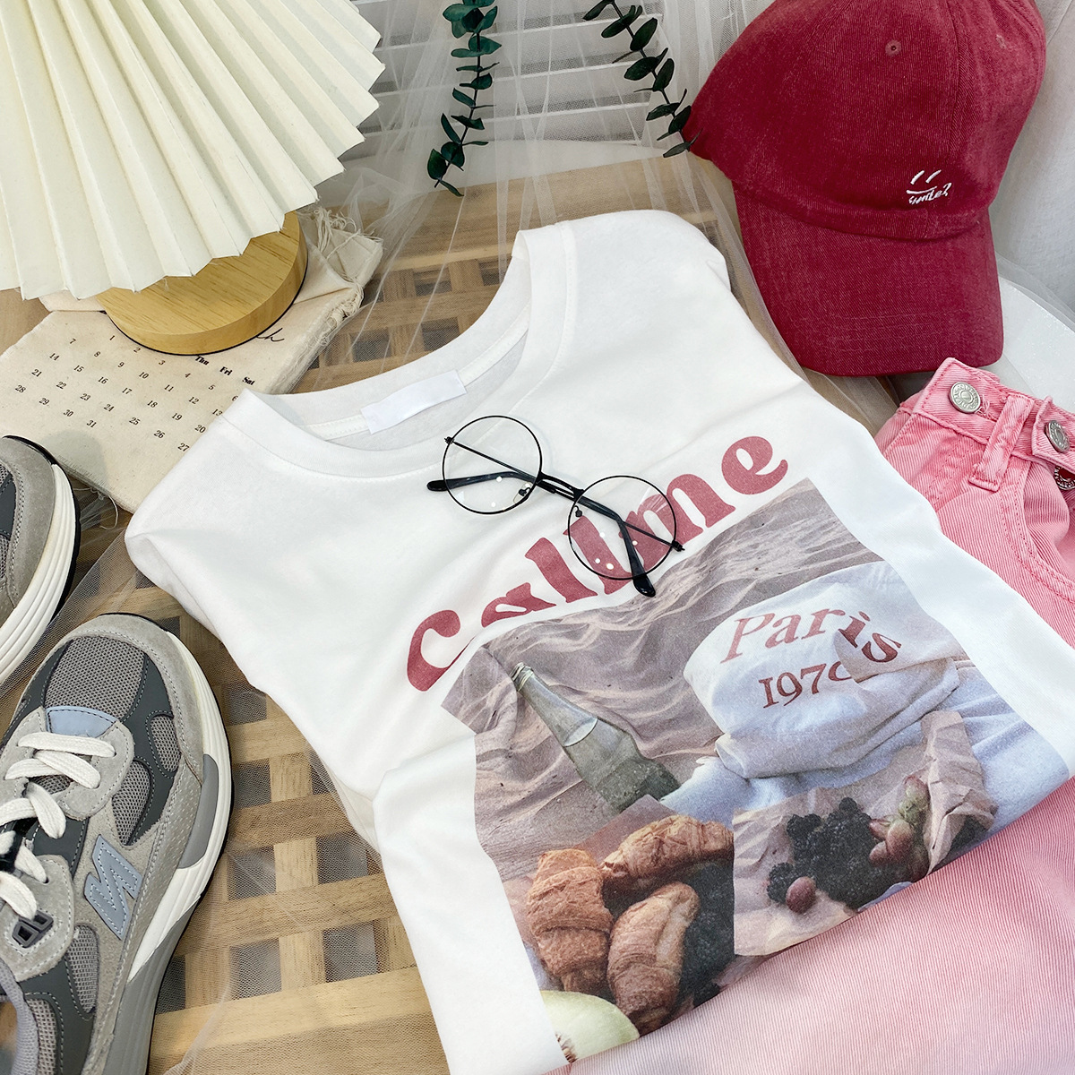 2023新款美式重磅服装印花白色短袖T恤打底衫女夏季宽松大版衣服