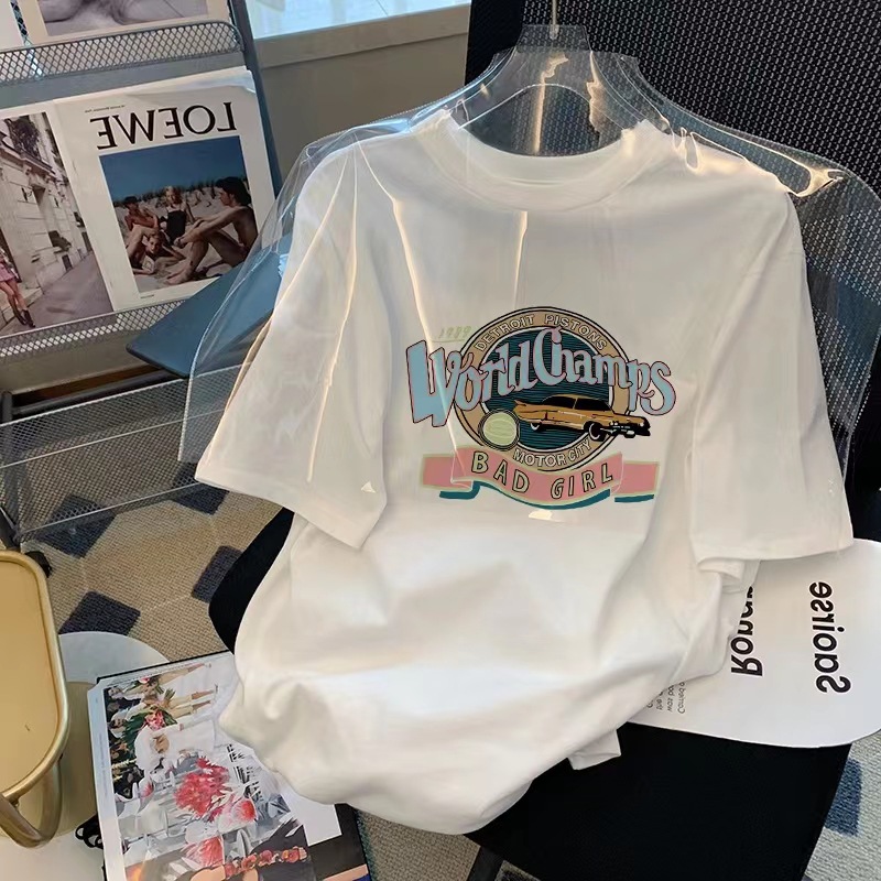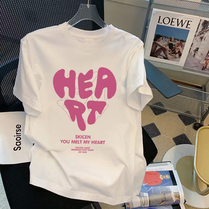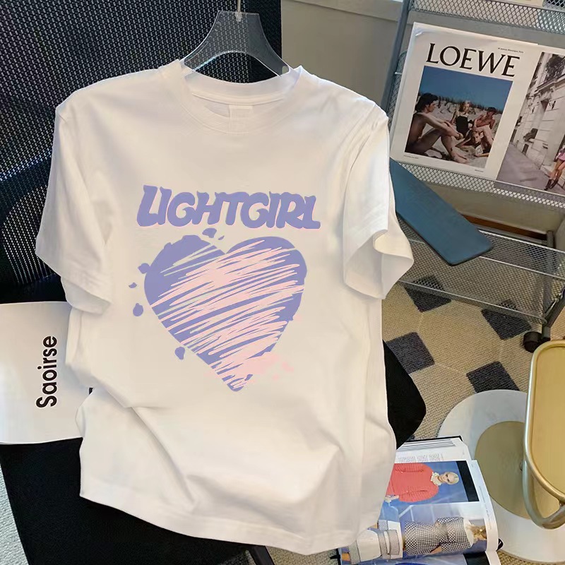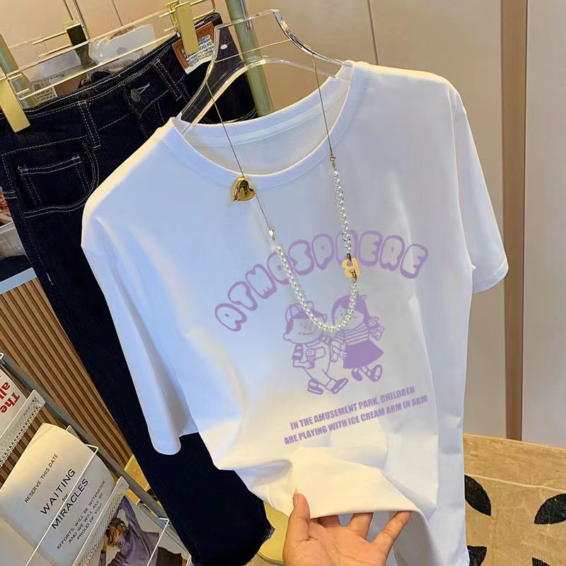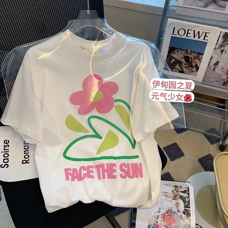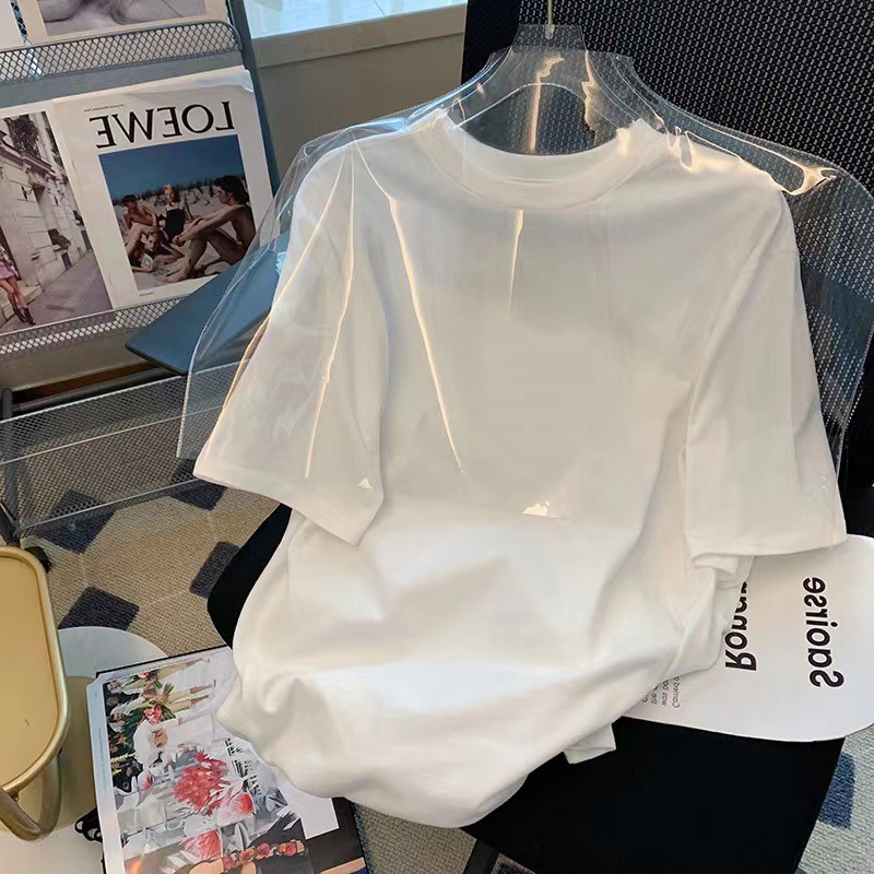 正肩短袖t恤女显瘦夏季纯棉白色宽松体恤氛围感上衣小众百搭ins潮