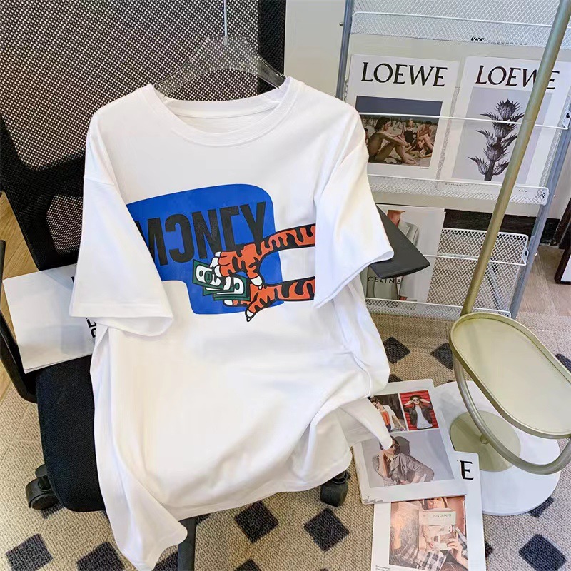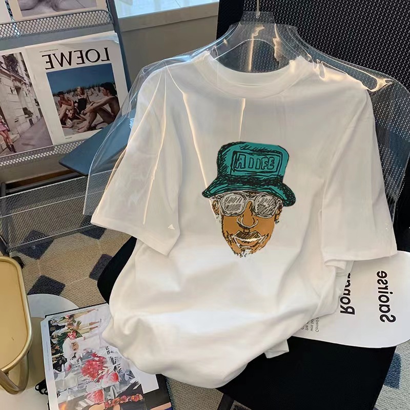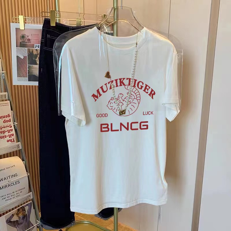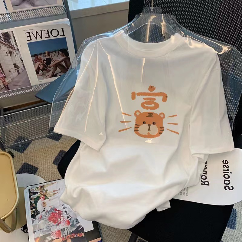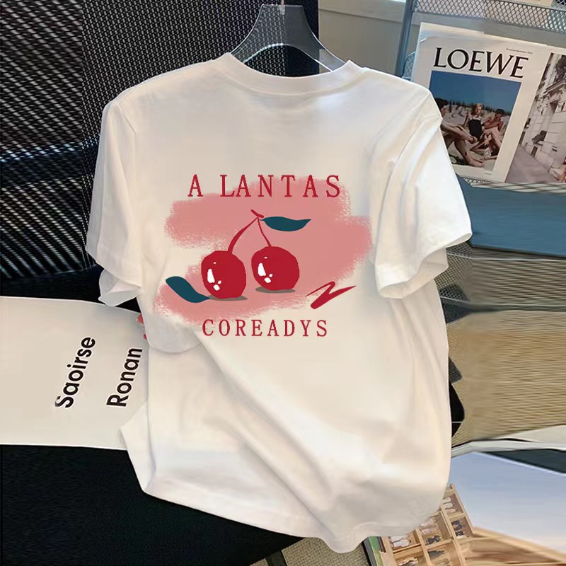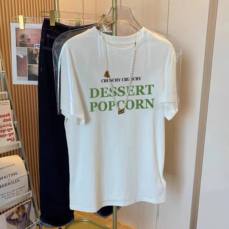 正肩短袖t恤女显瘦夏季纯棉白色宽松体恤氛围感上衣小众百搭ins潮