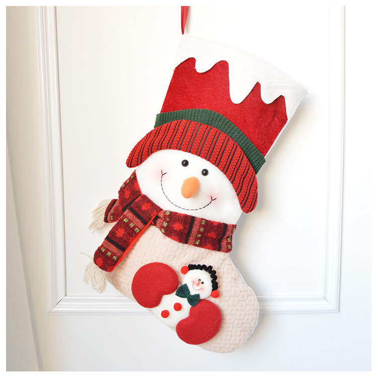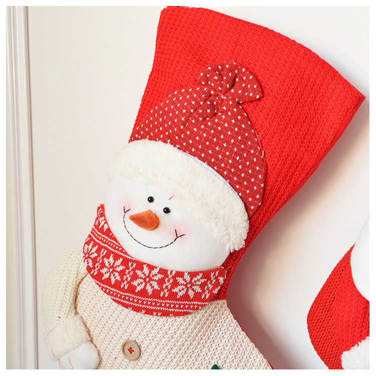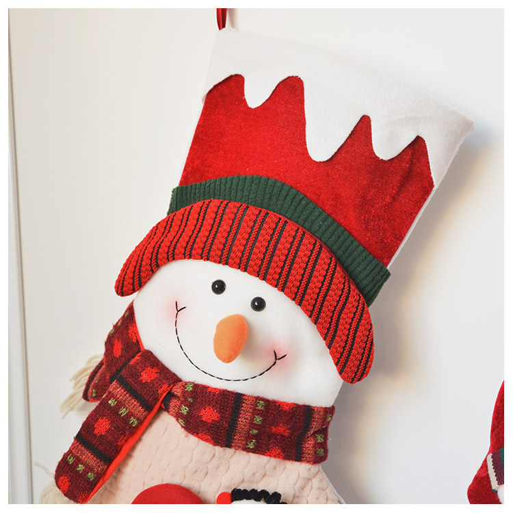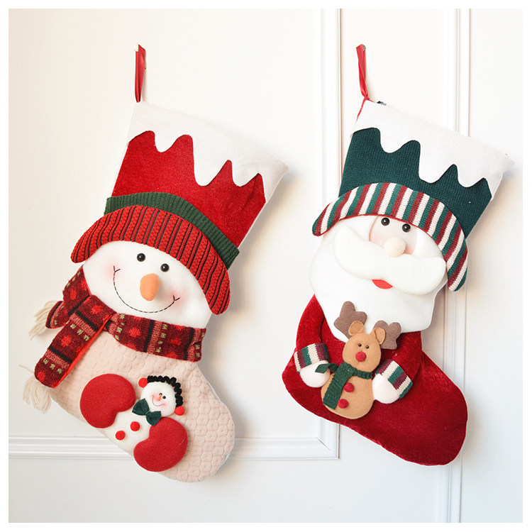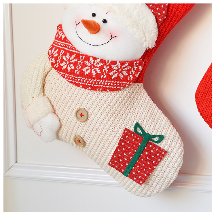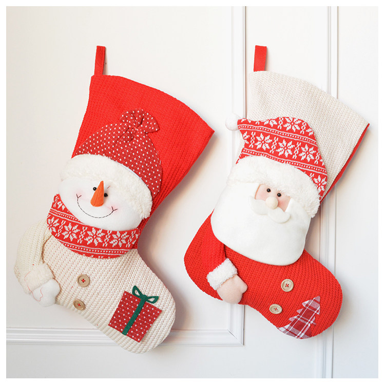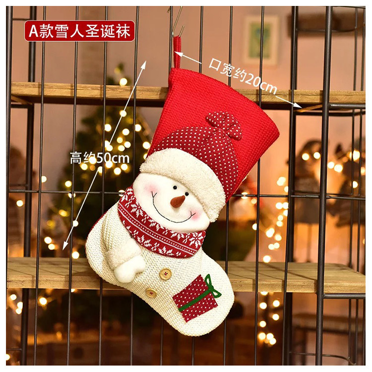 出口韩国立体毛绒雪人圣诞老人针织加厚圣诞礼物包大袜套圣诞挂件