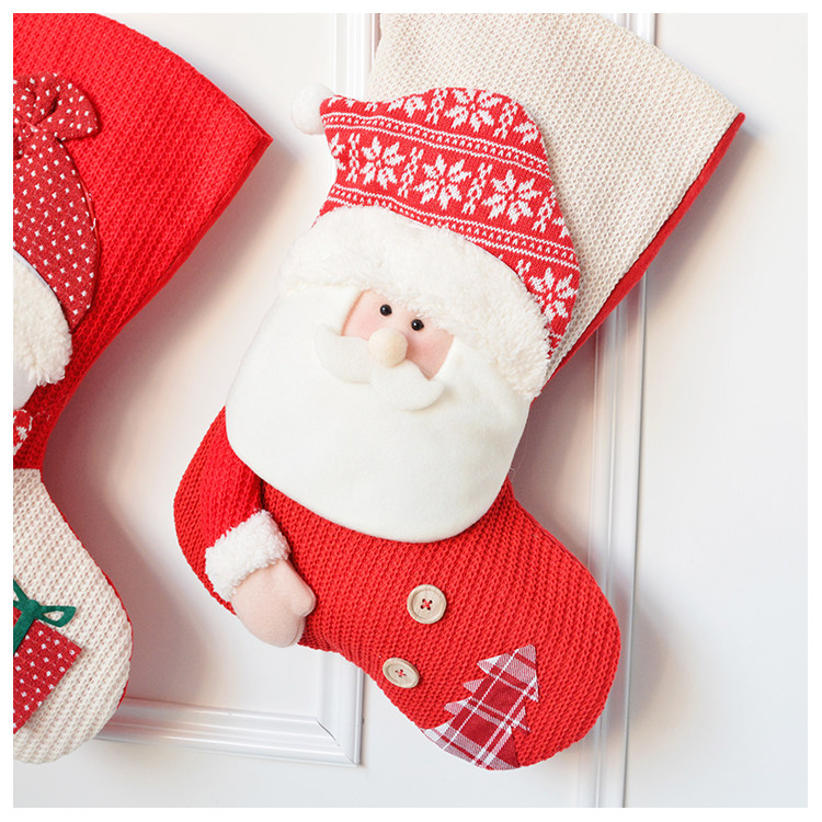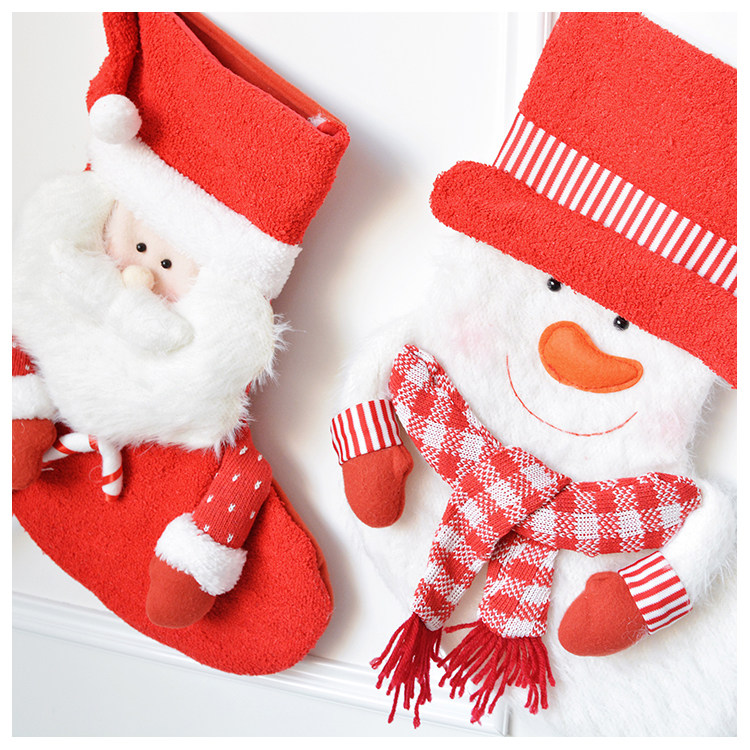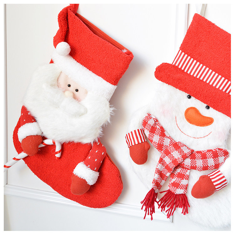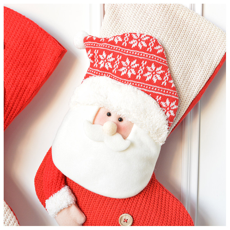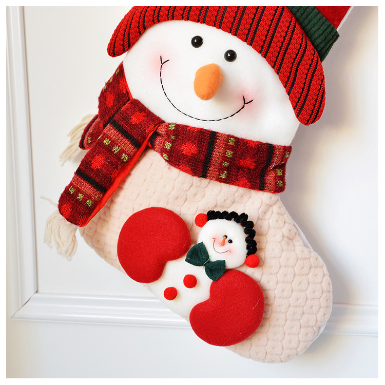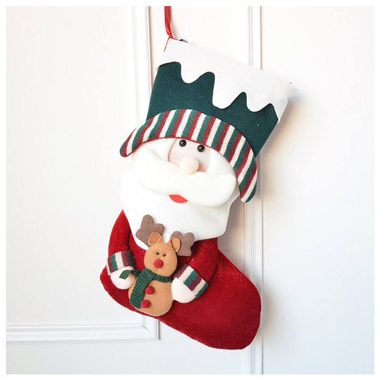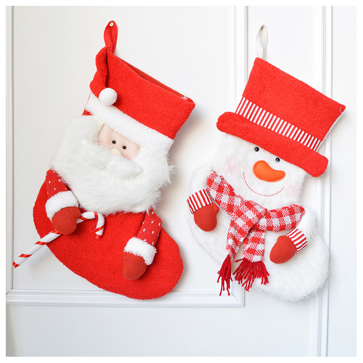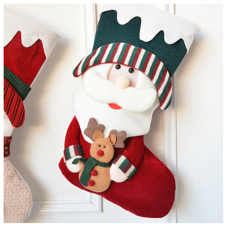 出口韩国立体毛绒雪人圣诞老人针织加厚圣诞礼物包大袜套圣诞挂件