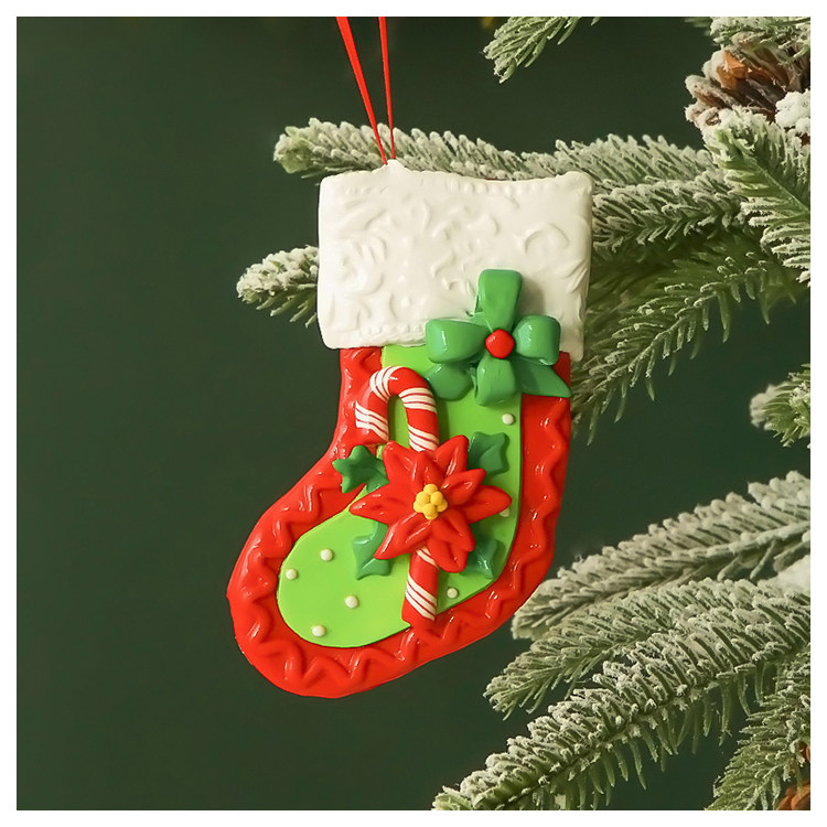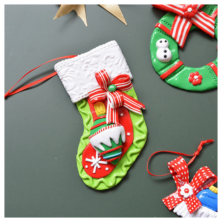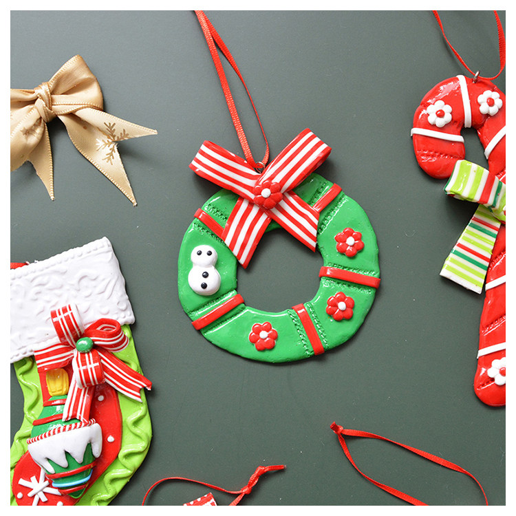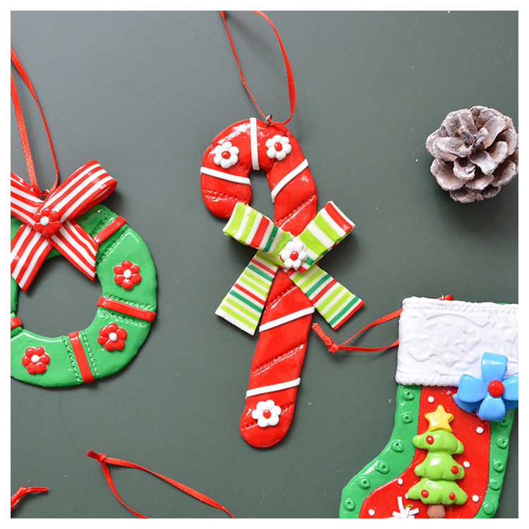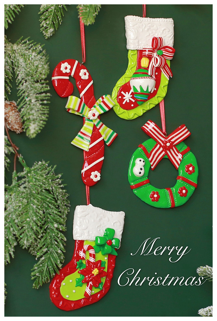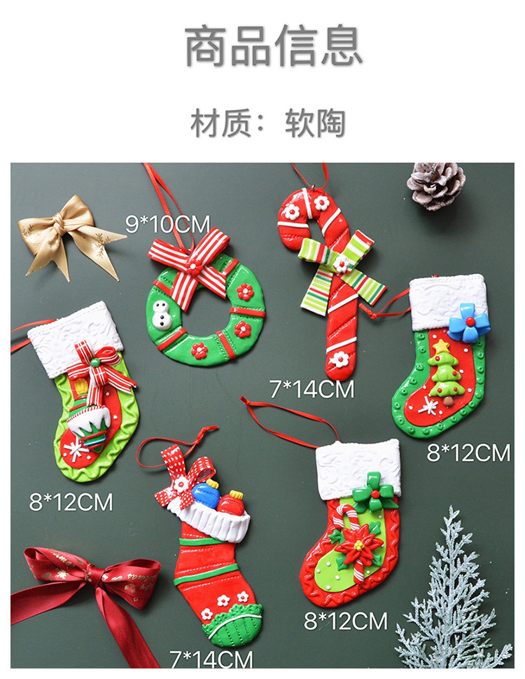立体造型帽子软陶蝴蝶结圣诞袜子花环拐杖圣诞树装饰挂饰挂件
