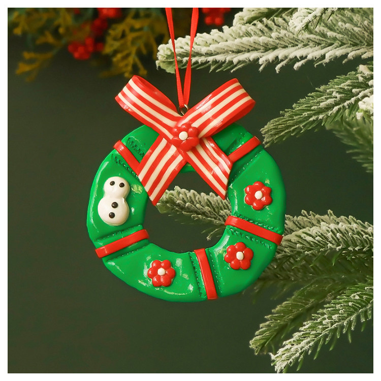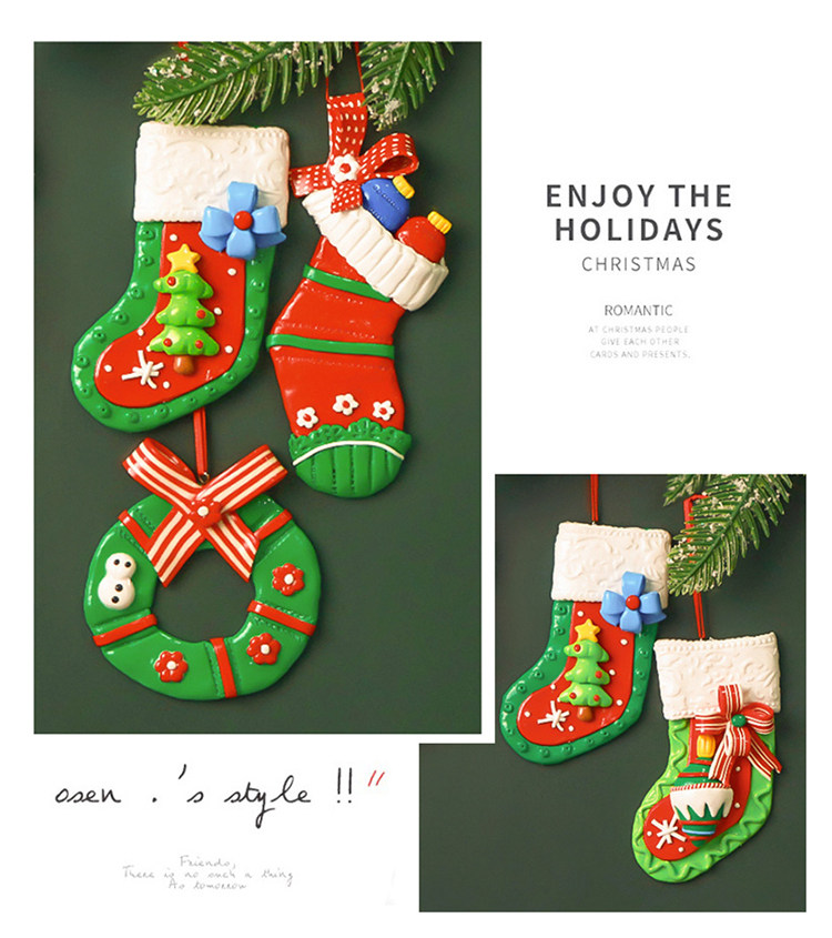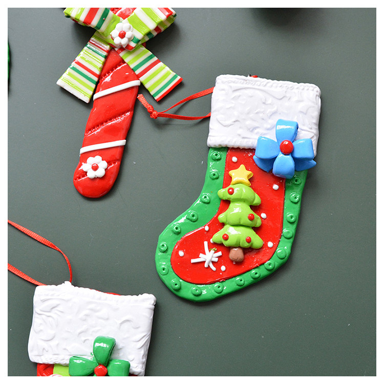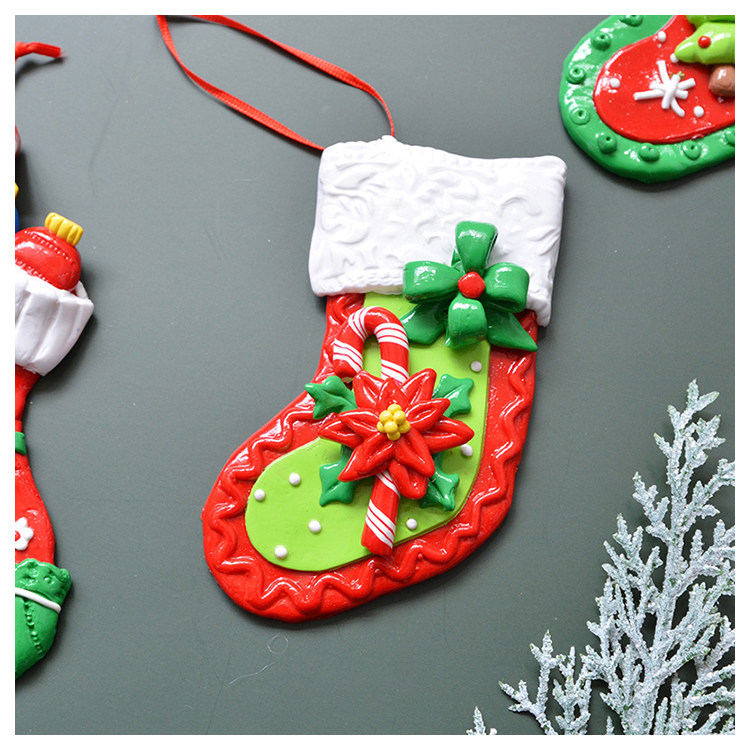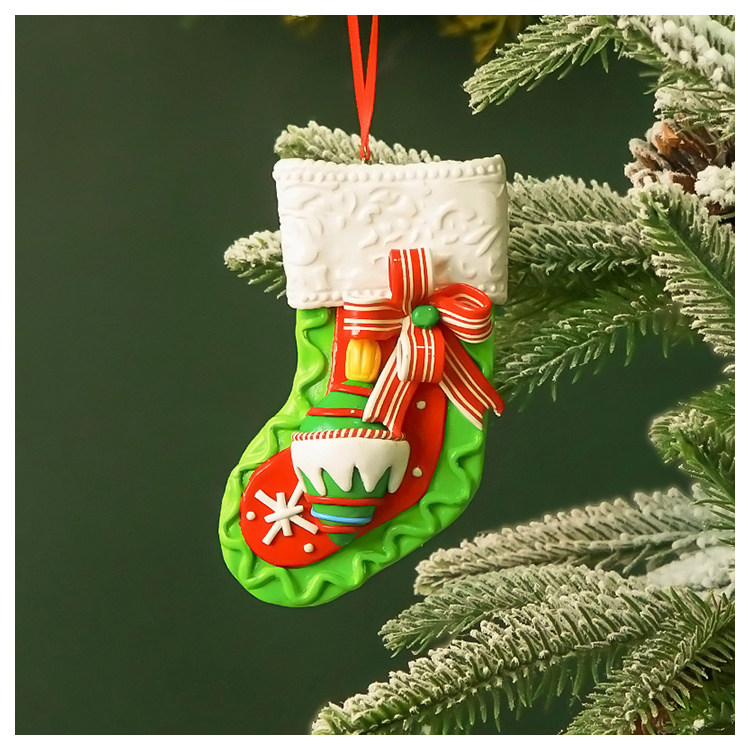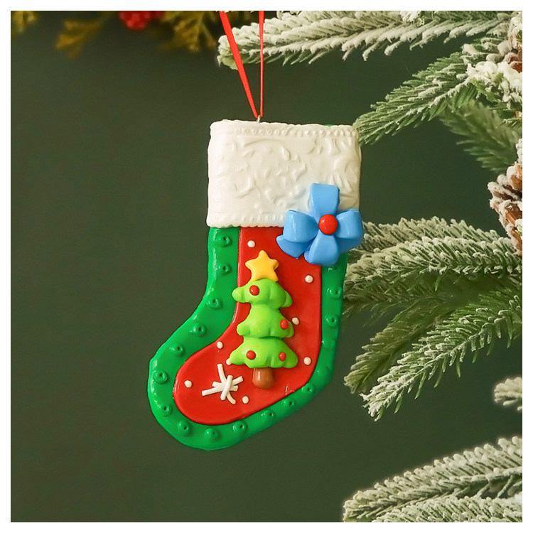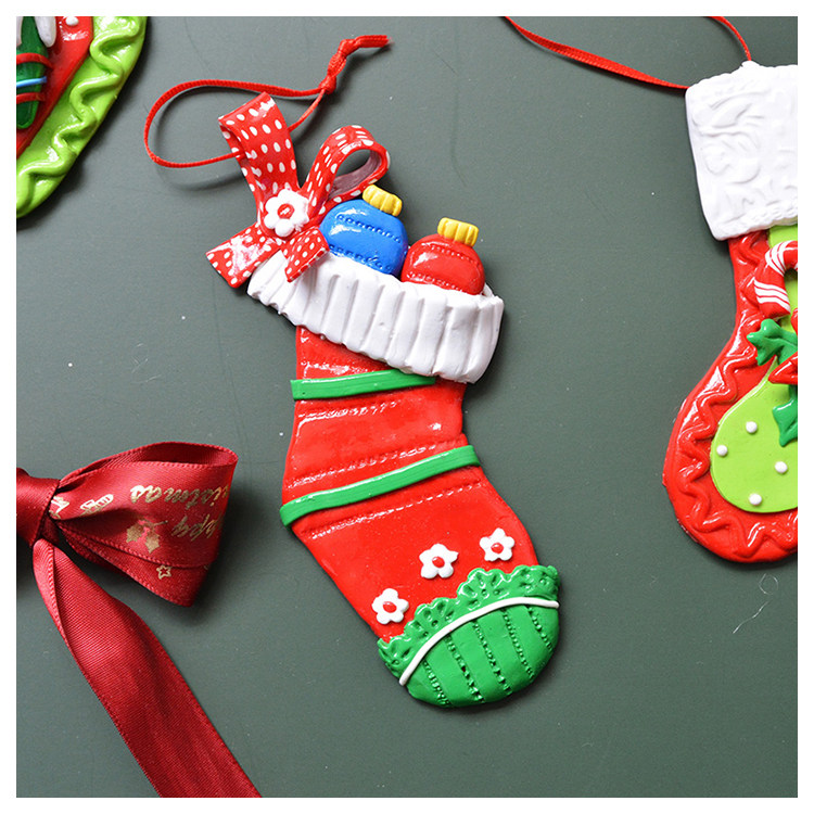 立体造型帽子软陶蝴蝶结圣诞袜子花环拐杖圣诞树装饰挂饰挂件