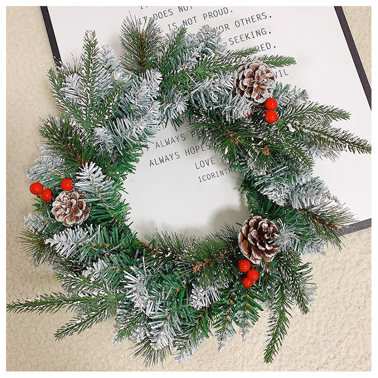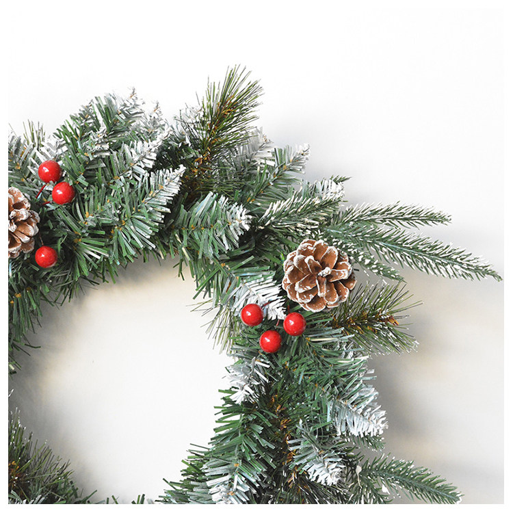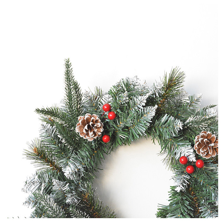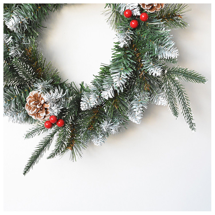 定制款 PE白尖带松果 加密红果微雪效果橱窗圣诞挂饰花环