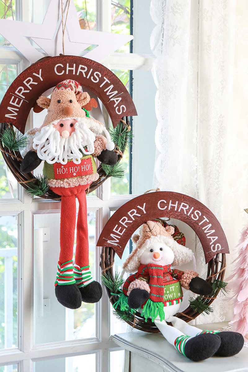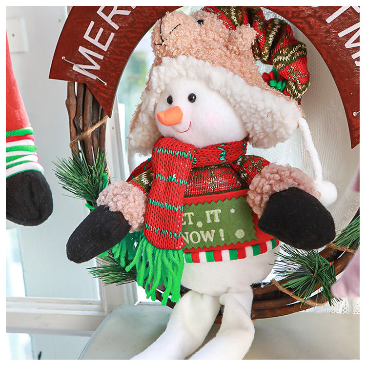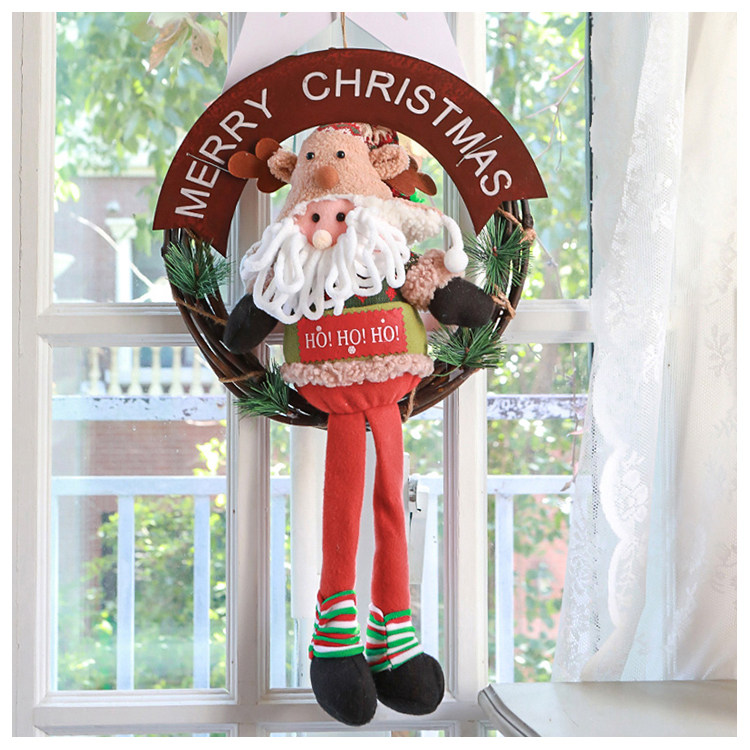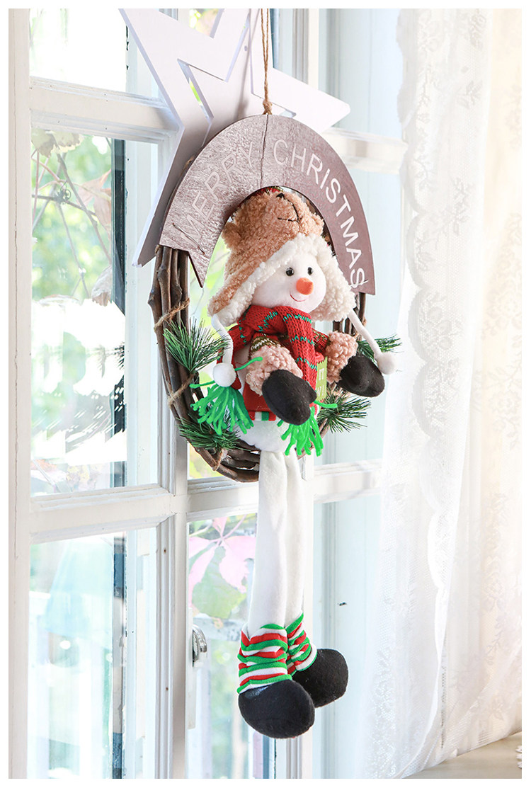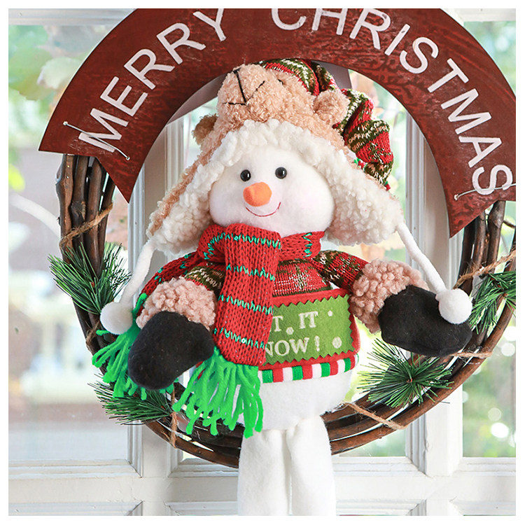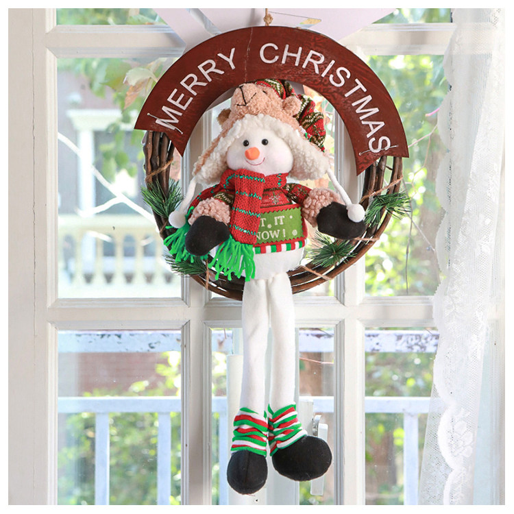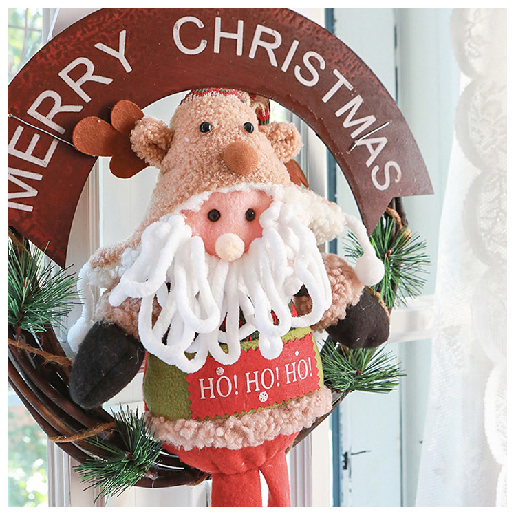 立体针织毛绒圣诞老人雪人大号橱窗门挂藤环藤圈