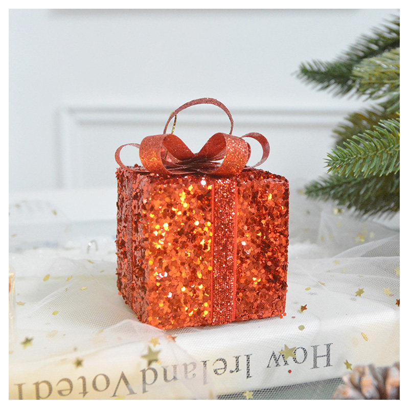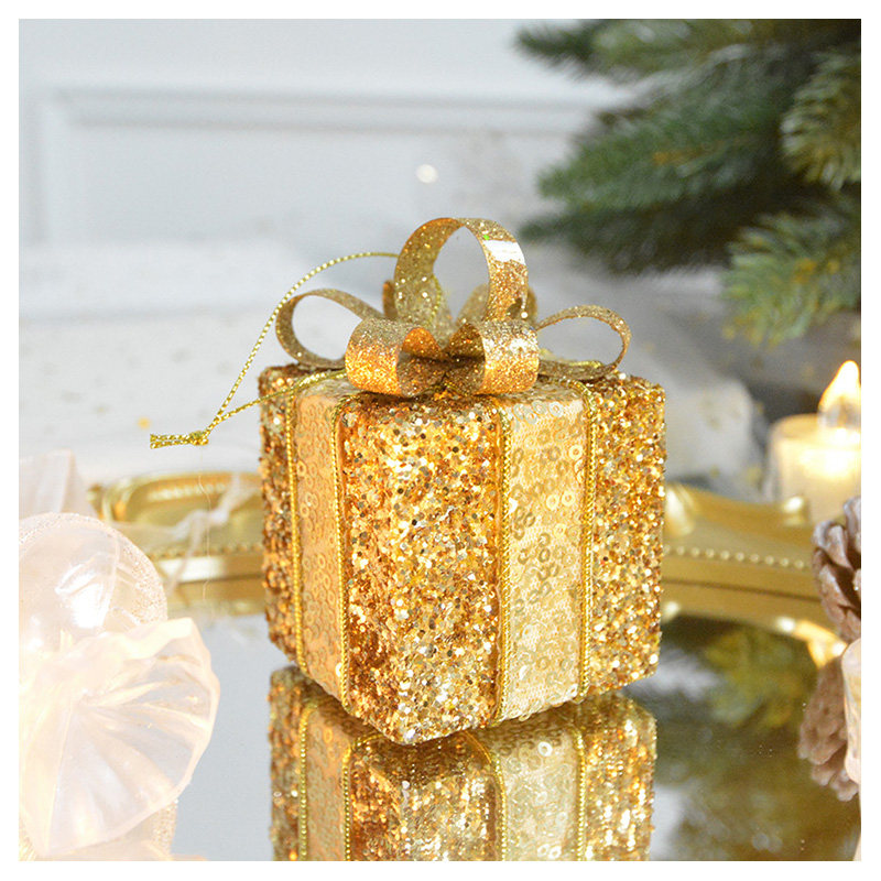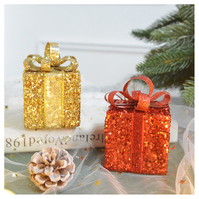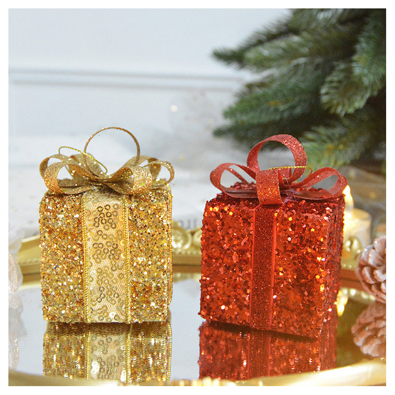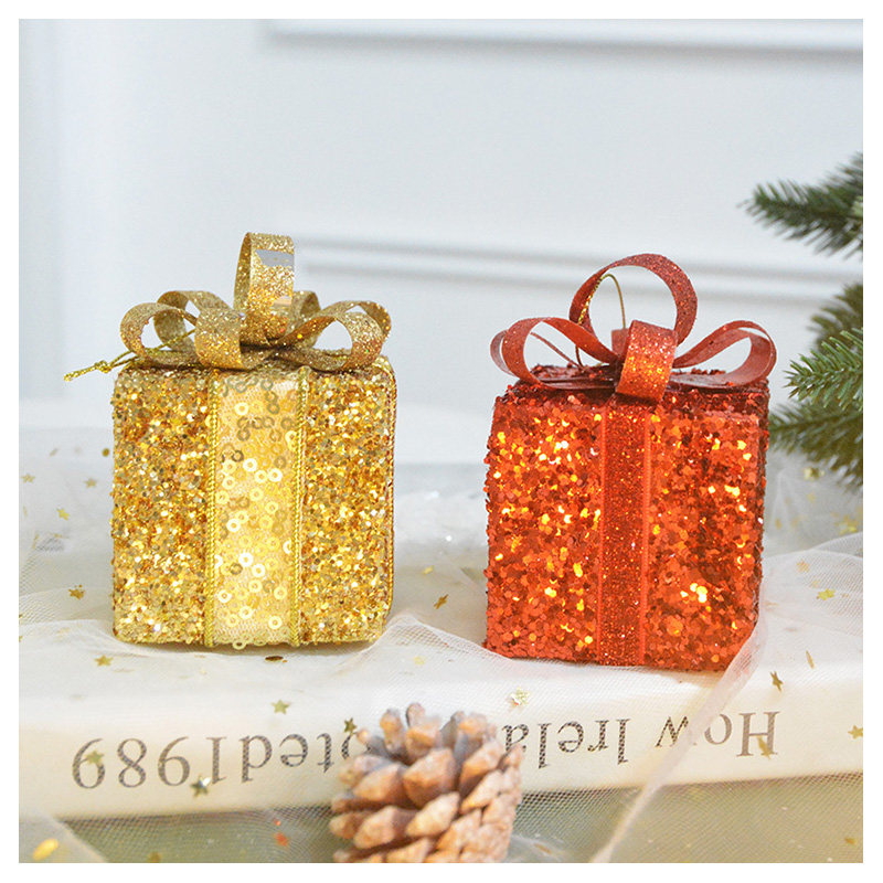 大亮片丝带蝴蝶结闪亮红色金色礼物包摆件圣诞树挂饰挂件