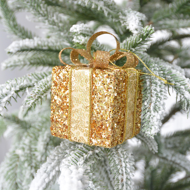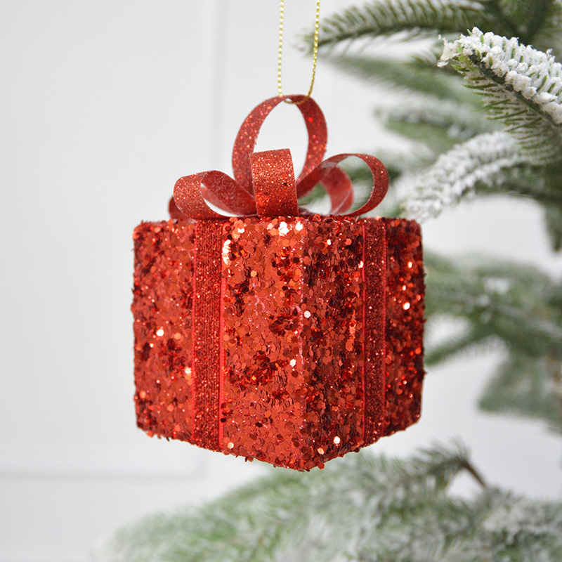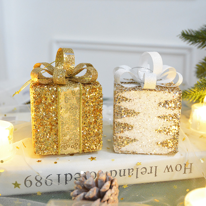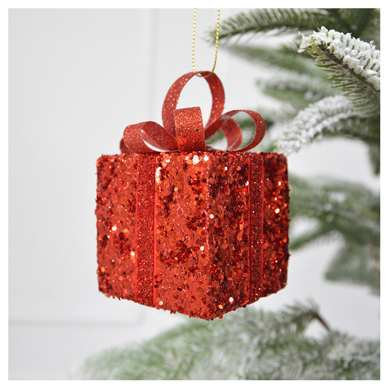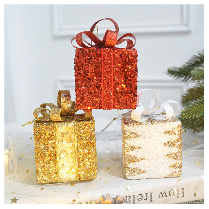 大亮片丝带蝴蝶结闪亮红色金色礼物包摆件圣诞树挂饰挂件