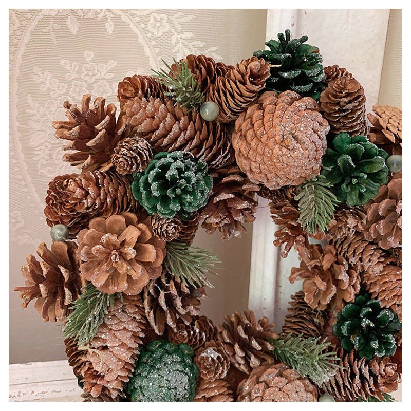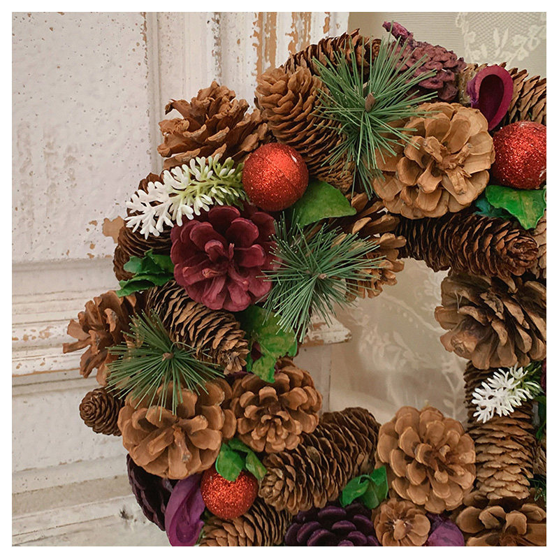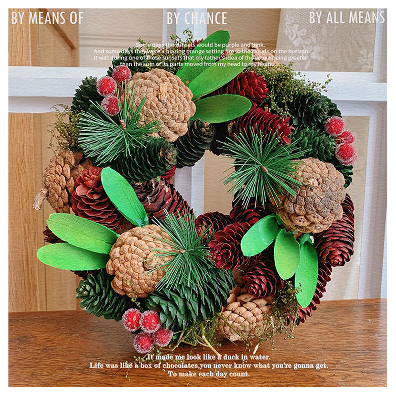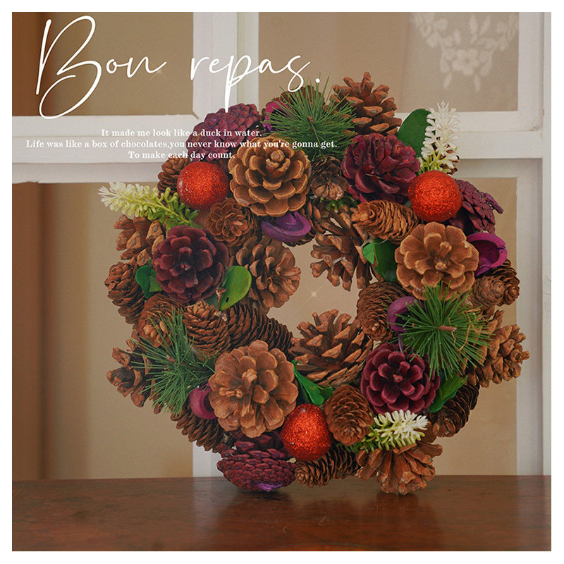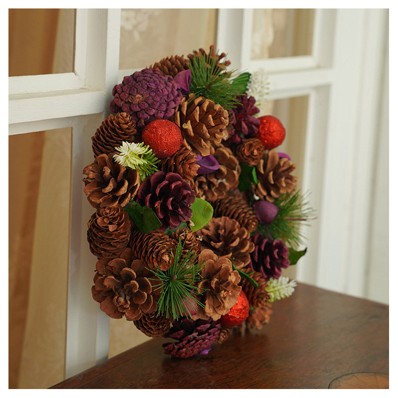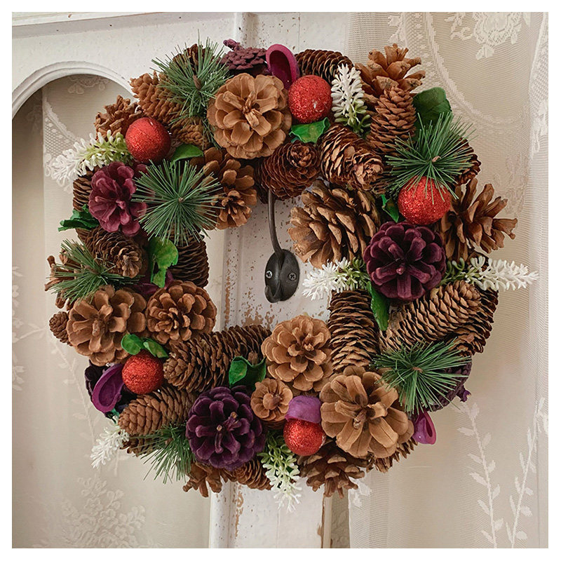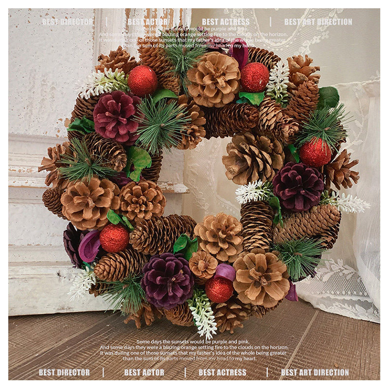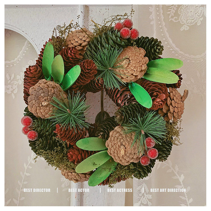 大松果榛果松枝花环红果复古婚礼圣诞节装饰摆件花环礼品