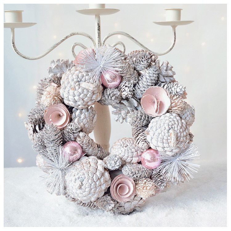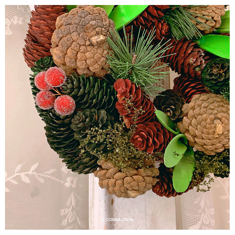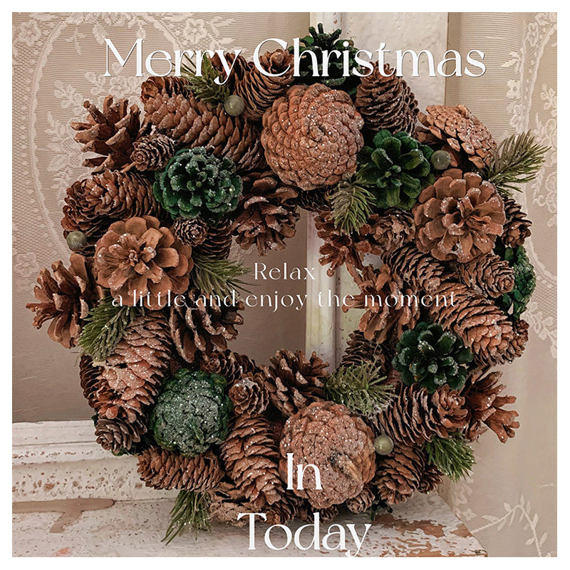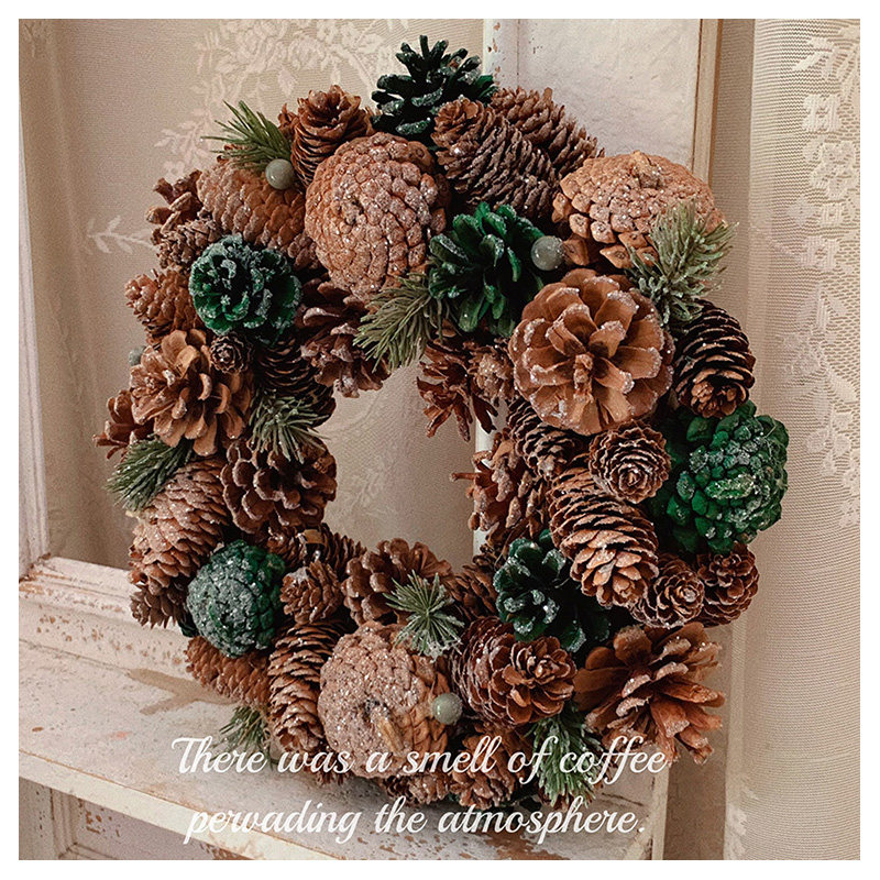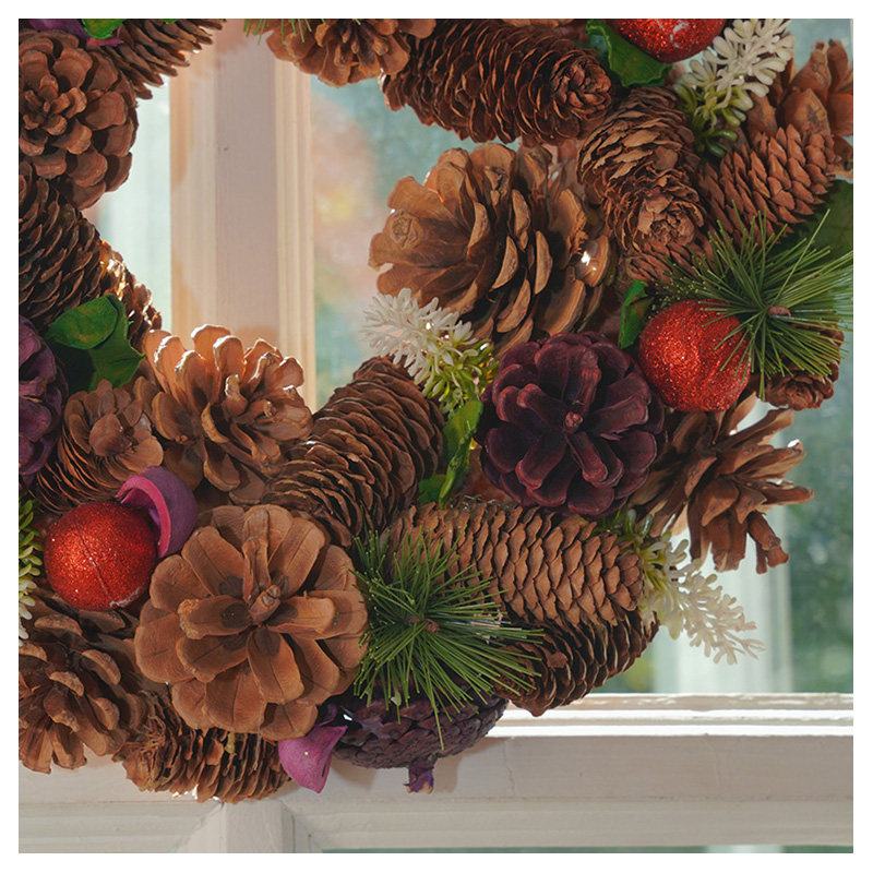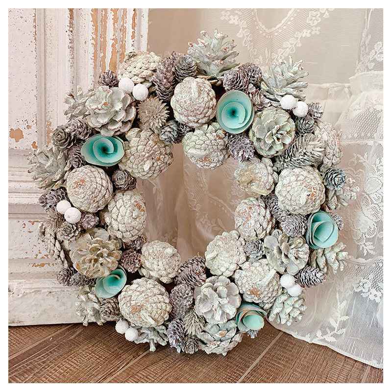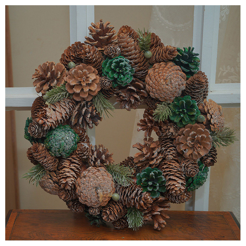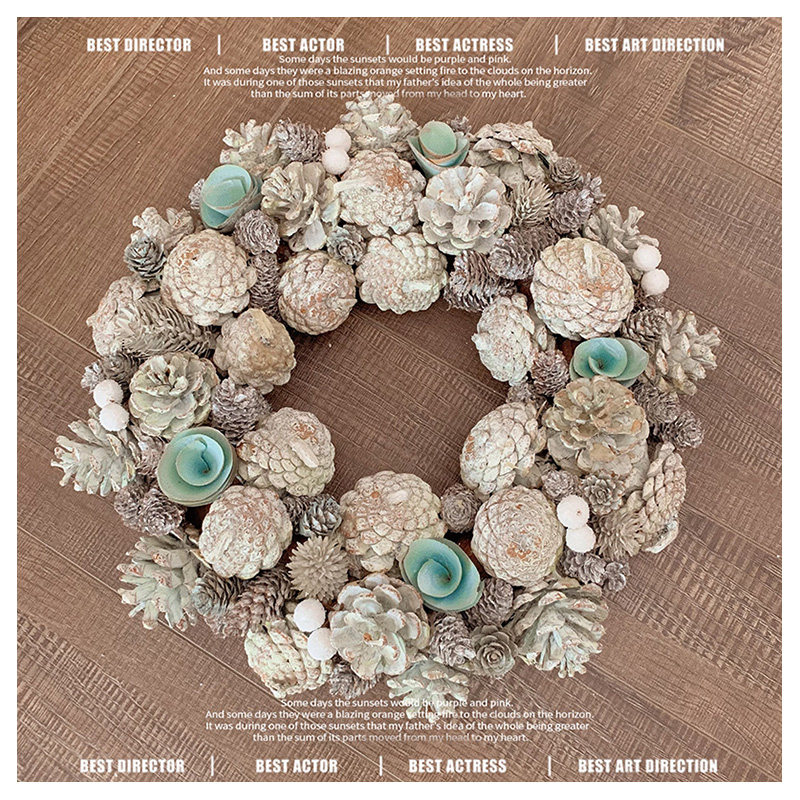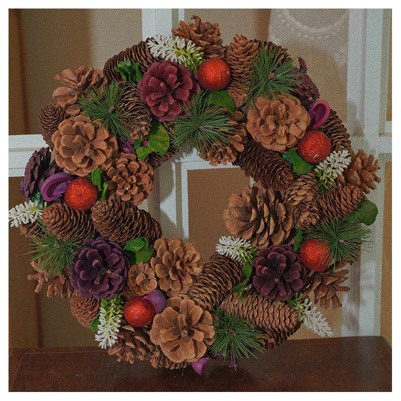 大松果榛果松枝花环红果复古婚礼圣诞节装饰摆件花环礼品