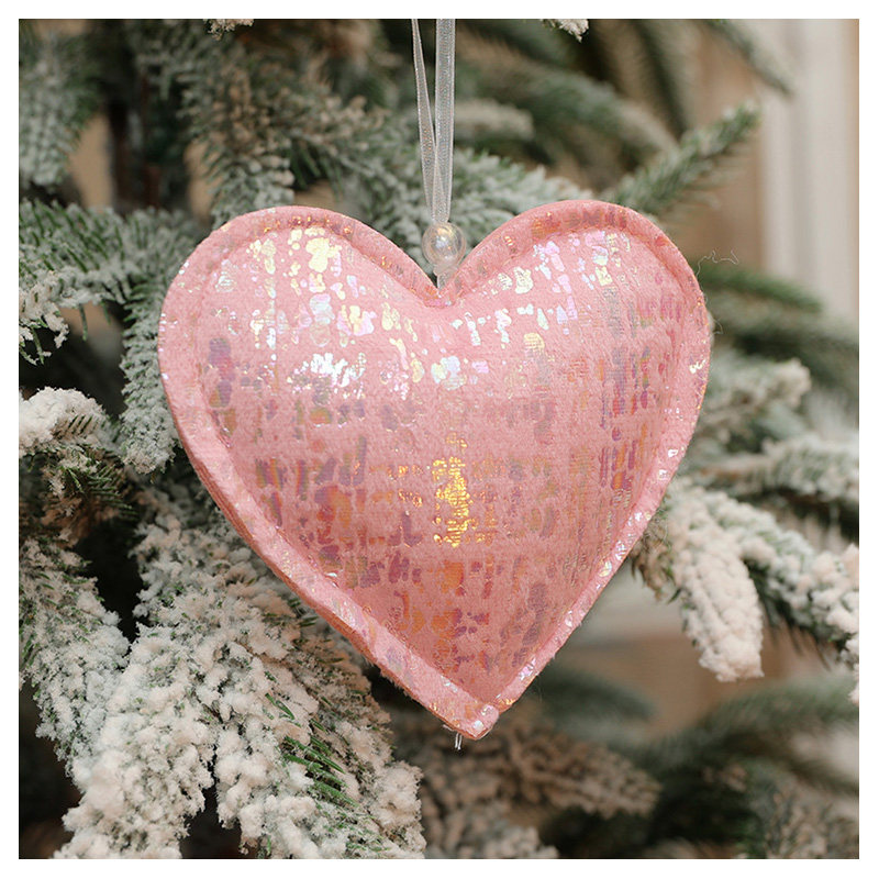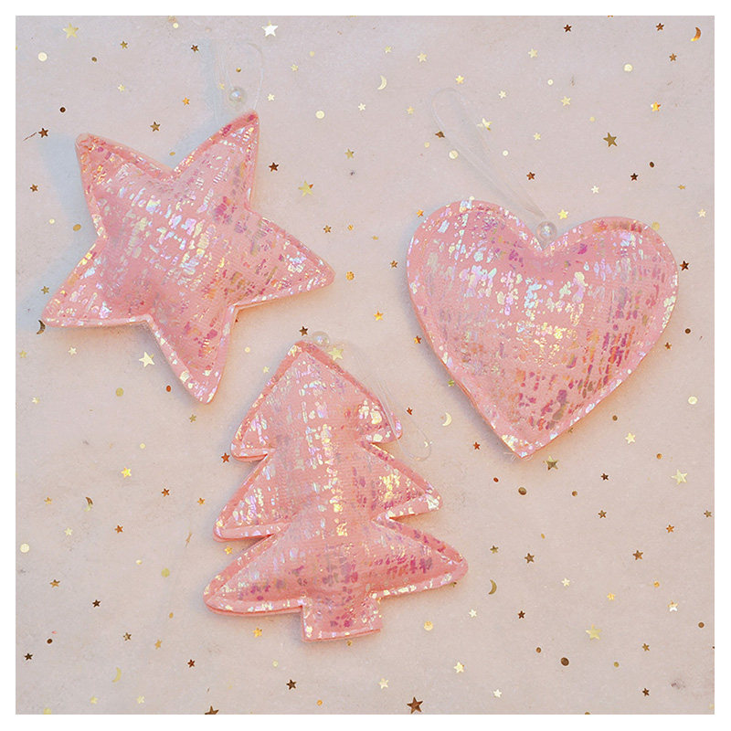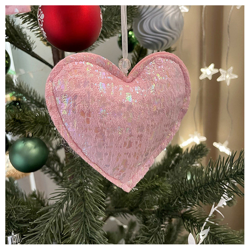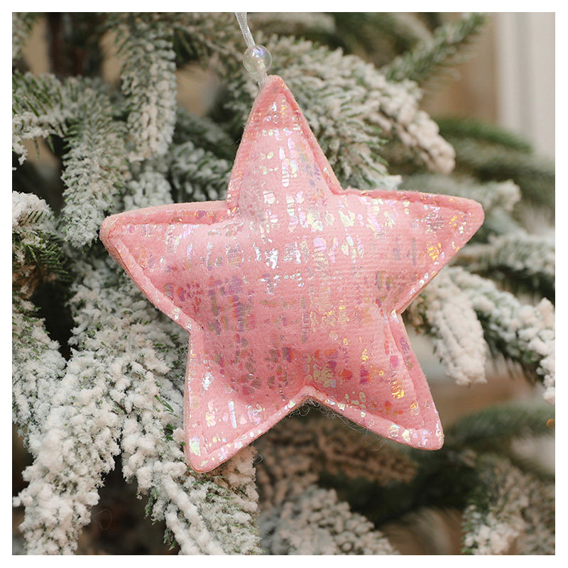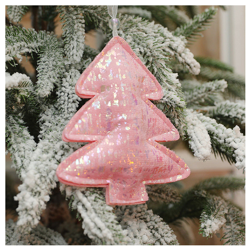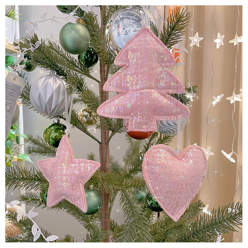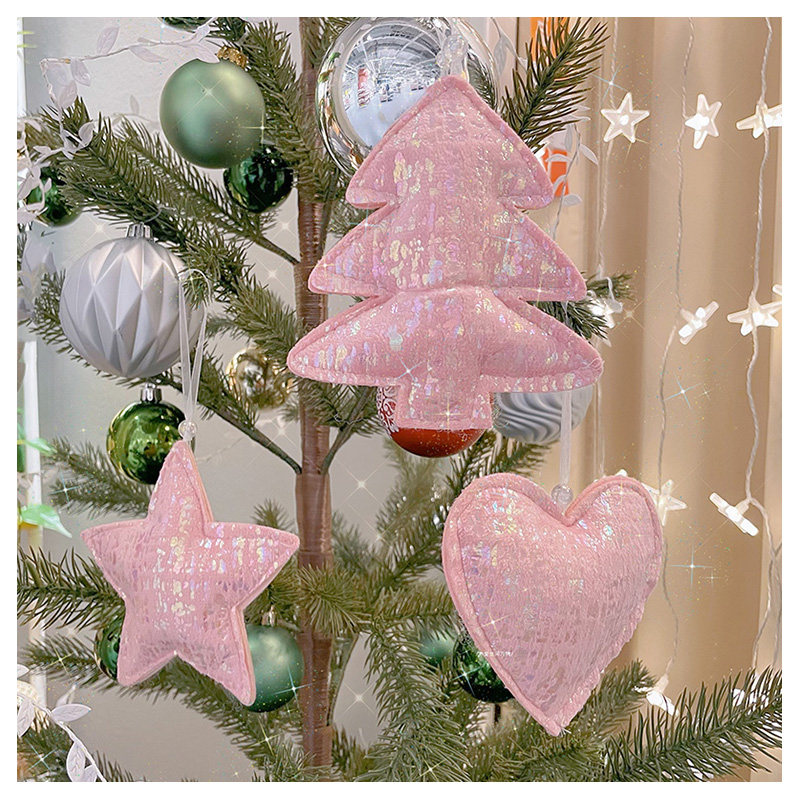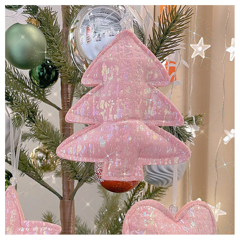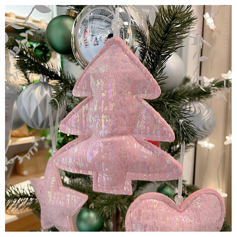 七彩光泽粉色毛绒圣诞树挂饰松树五角星爱心小挂件圣诞节星星装饰