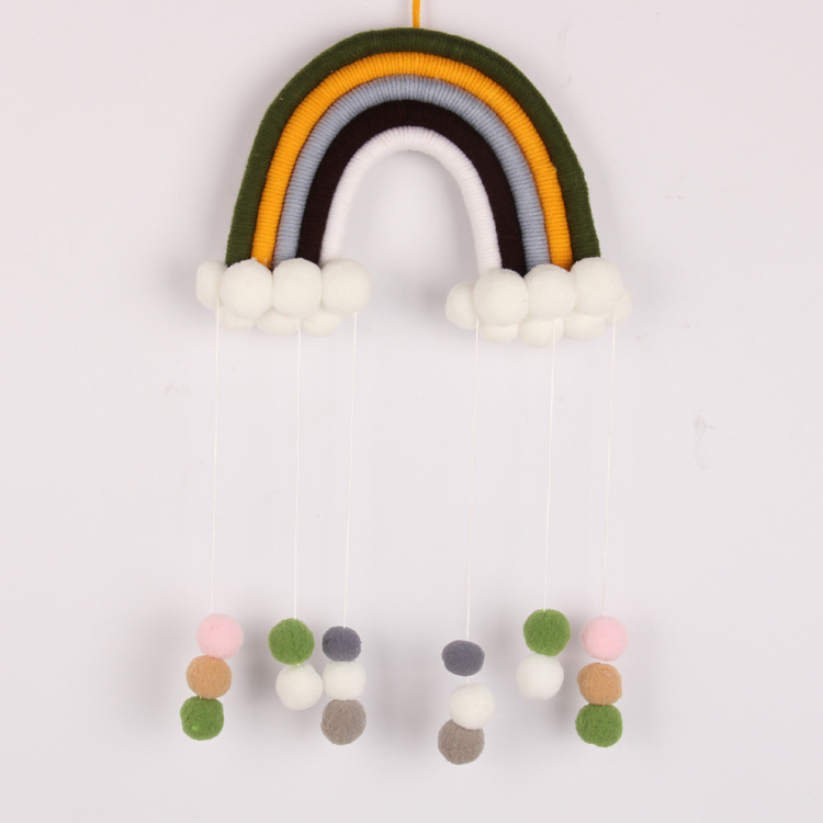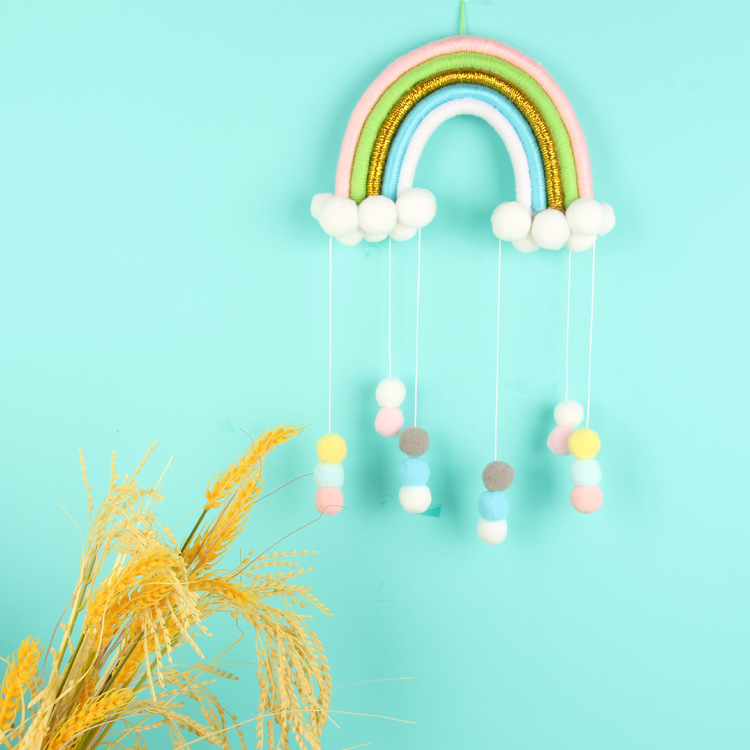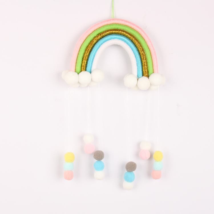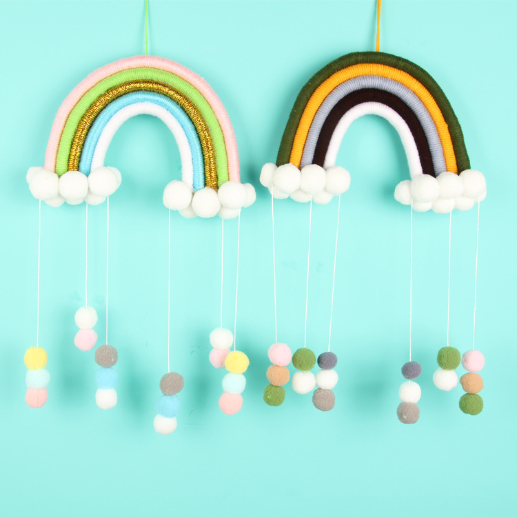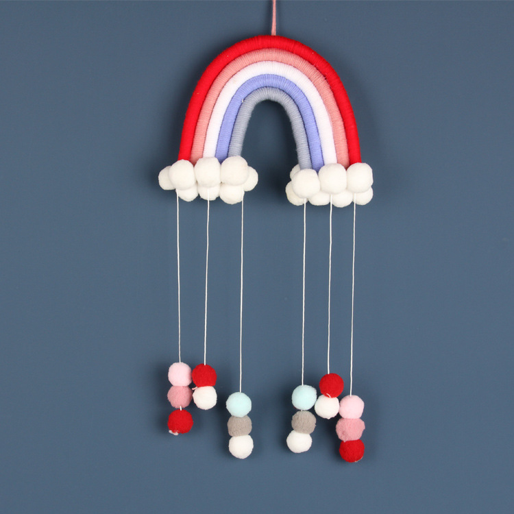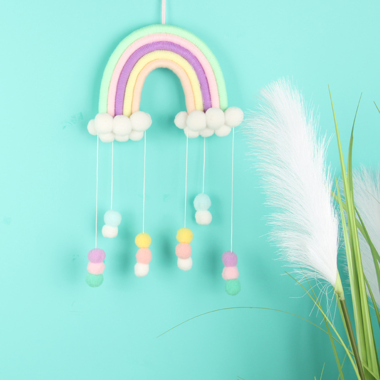 INS北欧风儿童房可爱编织彩虹毛球挂饰手工云朵家居流苏空中吊饰