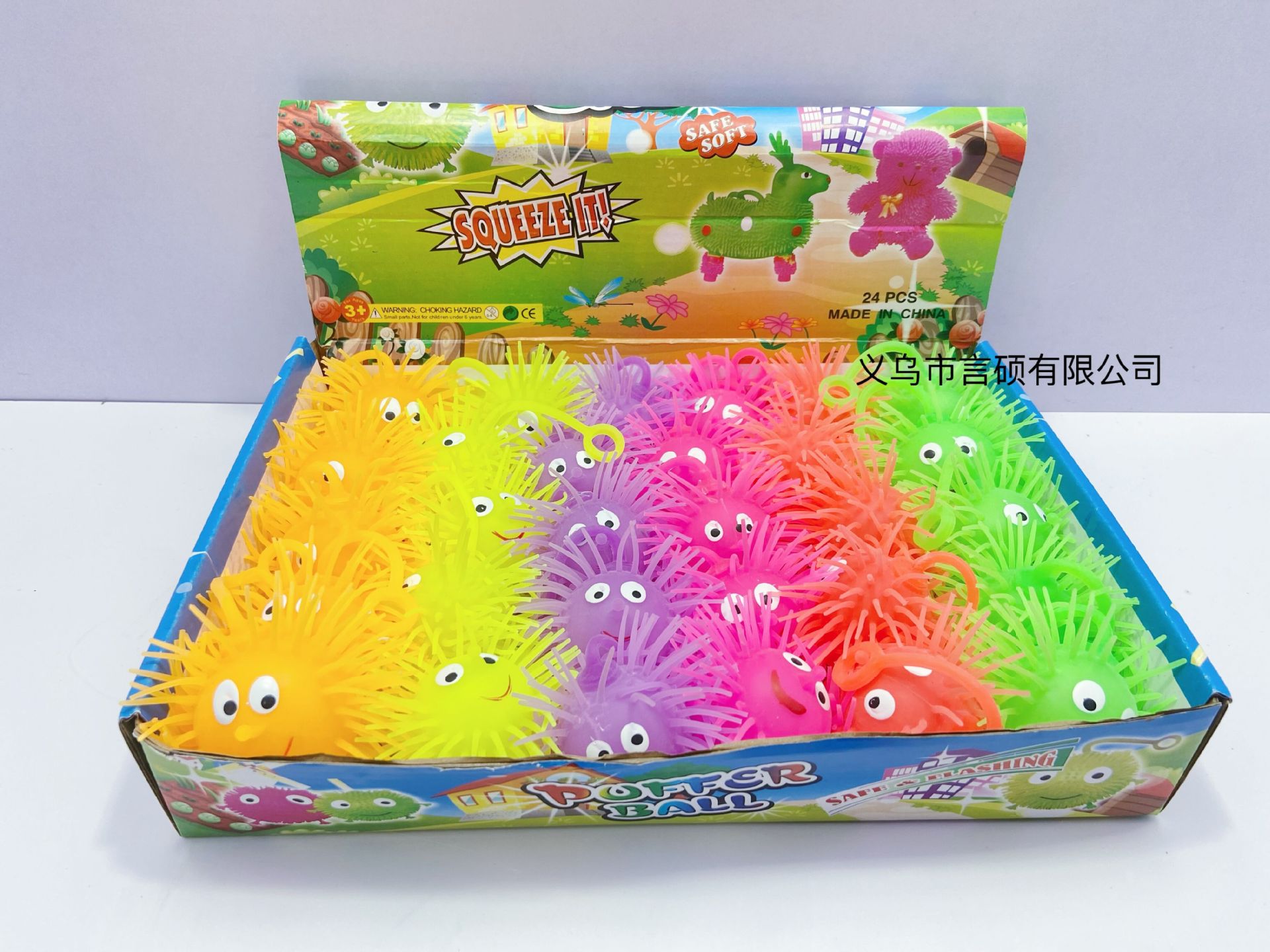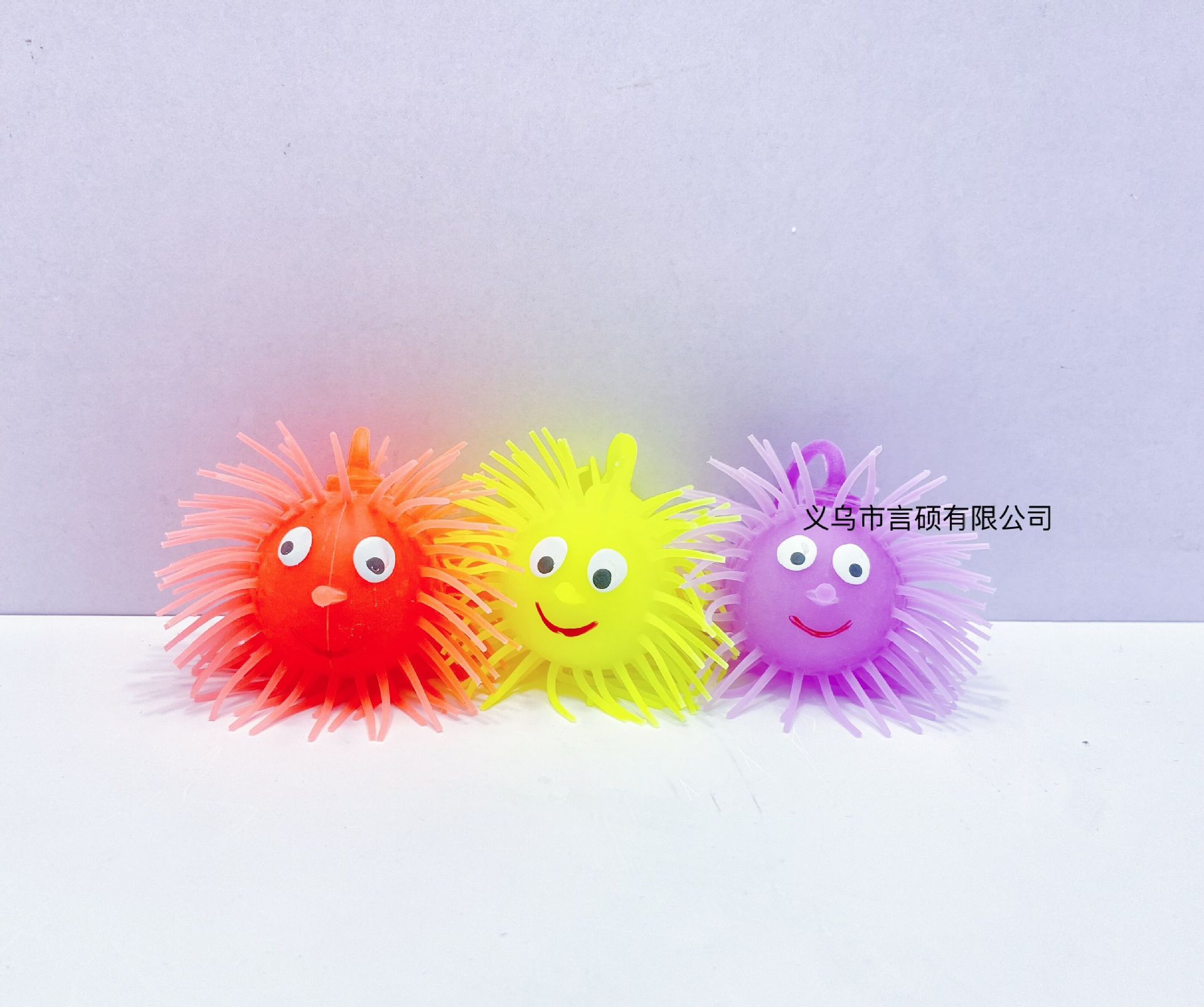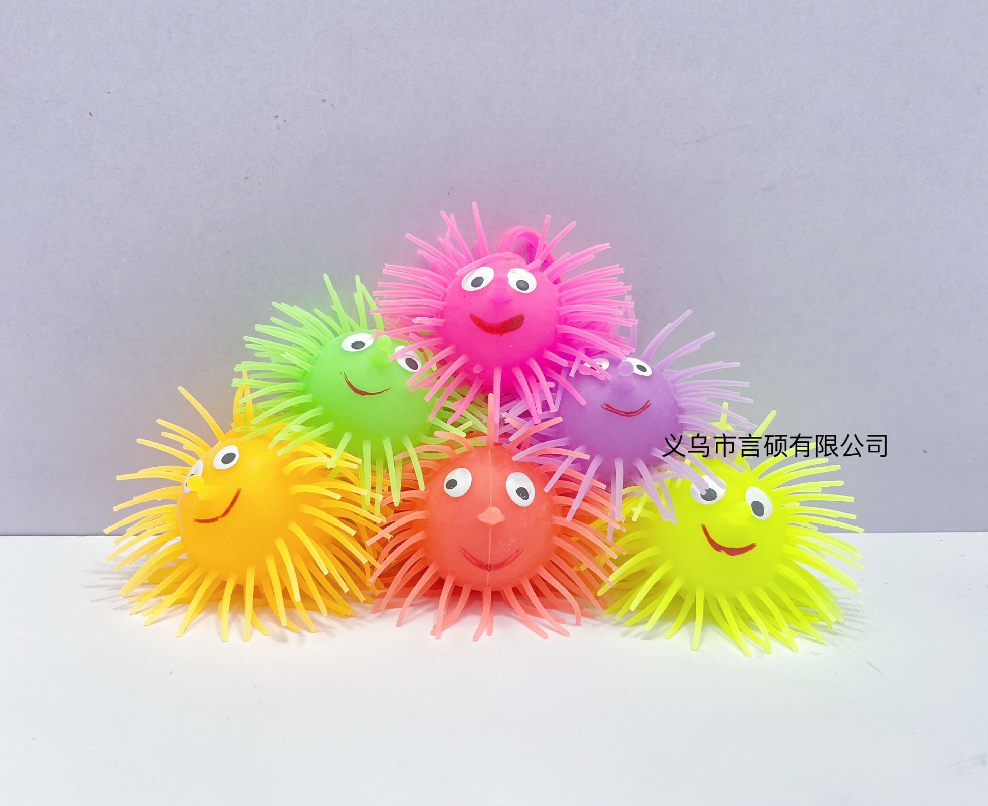 小笑发光脸密毛球 解压毛毛球 七彩发光球 闪光发泄球弹力球儿童